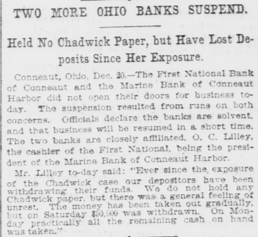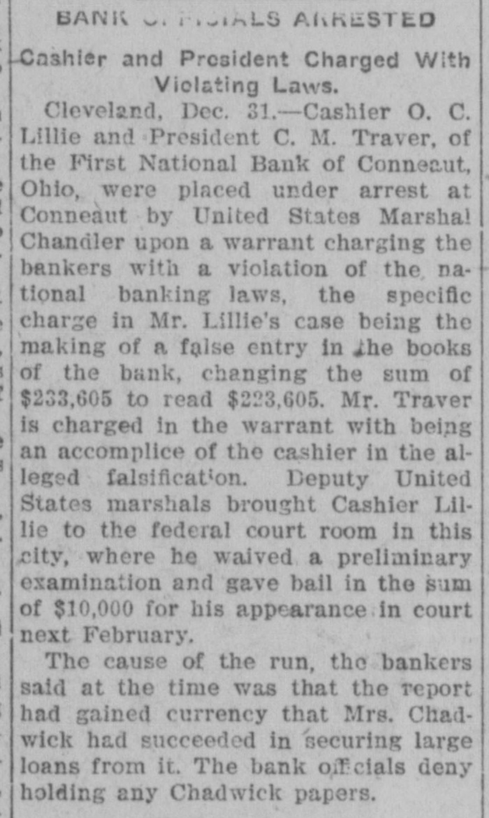 paying $650,000. The Wade Park bank, of Cleveland, O., of which Iri Reynolds is secretary and treasurer, together with two branches, has been taken over by the Cleveland Trust company, which will conduct the business of the three institutions. W. C. Matthews, the negro football and baseball player, has been elected one ficers. of Harvard's senior class day ofJames R. Garfield, commissioner of corporations, in his first annual report, made to President Roosevelt, recommends compulsory regulation of corporations chise. under a federal license or franAdmiral Sir Frasmus Ommanney, the "father of the British navy," died at Portsmouth, England, after a lengthy illness. He was the last survivor of the battle of Navarino, fought in 1827, which resulted in the destruction of the Turkish fleet. George L. Shoup, former United States senator from Idaho, died at his home in Boise, Idaho, in his sixty-eighth year. The Metropolitan clubhouse, the home of the most fashionable club in Washington, was gutted by fire, involv$100,000. ing an estimated loss of from $60,000 to Mrs. William Gladden shot and killed her husband at their home at Requa gulch, south of Cripple Creek, Col. She says that he abused and beat her. The bodies of John C. Kenyon, William Lillyblade and William Emmermon have been taken from the Crocker hotel ruins in Minneapolis, Minn. Receipts of the Britt-Nelson glove contest amounted to $26,900. of which Britt received $8,877 and Nelson $5,918. The postmaster general removed two more mail carriers for interference in politics and legislation. Republican leaders conferred on the proposed railway rate bill and assured President Roosevelt congress will act during the present session. All traffic in London was tied up and Christmas shoppers inconvenienced by a dense fog. The Illinois state board of equalization made a cut of $2,000,000 the in assessed valuation of all property in the state. City Clerk Edward M. Schuengel, of Milwaukee, Wis., aged 47 years, died suddenly. Mr. Schuengel had been suffering from Bright's disease and heart trouble for some time. After a lingering illness of three years, due to infirmities of old age, Rt. Rev. Richard Phelan, bishop of Pittsburg diocese, of the Roman Catholic church, died at Pitisburg, Pa., aged 76 years. The official report shows that during the world's fair at St. Louis the total admissions were 19,694,855, of these 12,804,616 were paid. The free admissions amounted to 6,890,239. Two trainmen were killed and one was badly scalded in a collision between freight trains on the Rochester & Pittsburg road, near West Falls, N. Y. The John Thompson & Son agricultural machine works and gasoline engine factory at Beloit, Wis., was destroyed by fire, causing a loss of $100,000. Seven were killed in the disaster at Minneapolis, Minn., when the wall of the tel. Peck building crushed the Crocker hoSenator Fairbanks has decided to forward his resignation to the governor of Indiana January 9, the date of the meeting of the legislature, to take effect March 4, next, when he will be inaugurated vice president. Four men were killed and their bodies terribly mangled as the result of a boiler explosion at the sawmill of B. F. Redline near Rohrsburg, Pa. James P. Eagle died at Little Rock, Ark., after an illness of three weeks. He 1893. was governor of Arkansas from 1889 to A disastrous storm which suddenly burst on the northern coast of Portugal has caused great loss of life. From reports perished. already received 37 persons have President Roosevelt has accepted an invitation to deliver an address at the Lincoln day dinner to be given by the Republican club, of New York, on the 13th of next February. The Minnesota board of pardons has granted a pardon to Col. Ames, brother of former Mayor Ames, of Minneapolis, and who was Mayor Ames' chief of police He was convicted of graft in connection with the Ames administration. The First national bank, of Conneaut O., and the Marine bank, of Conneaut Harbor, have suspended. The suspen sion resulted from runs on both con cerns owing to the panic caused by the Chadwick affair. e The protestants in the Smoot inquiry rested their case. The hearing was post d poned until January 10, when the de fense will present evidence. e Many Europeans flocking to America now are paupers and unfit for citizen