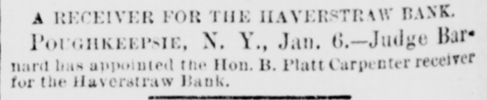 Judge Barnard has appointed the Hon. B. Platt Carpenter receiver for the Haverstraw Bank.