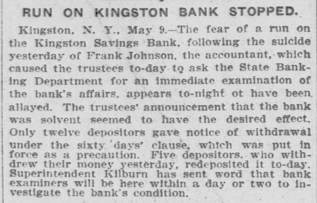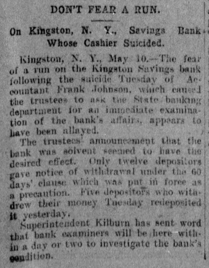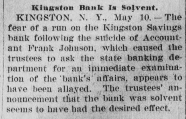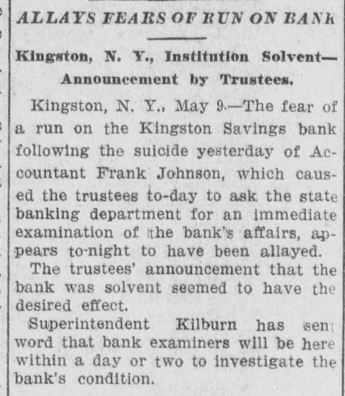 CONDENSED DISPATCHES. Mohammedans of high rank residing Lamore, Punjab. British India, have at been notified that the Amir of Afghanistan, Habibullah Khon, will visit India next winter. In view of the political importance of the Amir's journey steps are already being taken to give him a fitting welcome. The Columbia Savings & Trust Co. of Pittsburg, Pa., closed its doors Wednesday by order of the commissioner of banking. William J. Diehl, former mayor of Pittsburg, and J. M. Volan, secretary and treasurer. The capital is $145,000: deposits $200,000; loans, $290,000: and surplus $6000. The New York state board of railroad commissioners have reported that the total number of cash fares collected on the surface. elevated and subway lines of Greater New York for the first three as months of 1906 was 297.339.165. against 260,277,915 for the corresponding quarter of 1905, an increase of 37,061,250. Investigation shows that the authorities of San Domingo were mistaken in believing that they discovered a plot May 6 to assassinate Pres. Caceres as he was leaving the theatre. The persons arrested in connection with the alleged conspiracy have been released. Quiet reigns in the city and its vicinity and business is improving. The soft coal and wood yards of A. L. Thomas, Beach street and Columbus by fire Wednesday. The flames also damaged a dozen small dwellings and the Cramer Iron Works. Two men who were sleeping in the stable of the coal yard are missing. Thirty-three horses were burned to death. The origin of the fire is unknown. The monetary loss is about $15,000. The signal corps of the United States army is photographing San Francisco ruins from balloons. A series of pictures is being taken to be kept on file by the war department in Washington. Several hundred pictures have already been taken of the different buildings and an order sent for three balloons so that a complete panoramic picture of the city can be had. The pillars supporting the second floor and roof of the rear part of a large new cigarette factory at Havana, belonging to Joseph Cener. collapsed Tuesday and of the 40 men and women working in that part of the factory half were caught in the falling debris. Six persons were taken out dead and a dozen more were injured. The dead and injured include cigarette makers and men who were at work in the building. Fears that a run on the Kingston Savings Bank of Kingston. N. Y., will follow the suicide Tuesday of Accountant Frank Johnson, caused the trustees Wednesday to decide to ask the state banking department for an immediate examination of the bank's affairs. They decided meanwhile to enforce the rule requiring 60 days notice in writing of intention to withdraw deposits. No reason for Johnson's suicide colid be assigned by his family or friends Tuesday. The bank officials issued a statement immediately afterward that his accounts were all right and that it was impossible for him to have used the bank's moneys. Supreme Court Justice Jaines A. Betts is president of the Kingston Savings Bank.