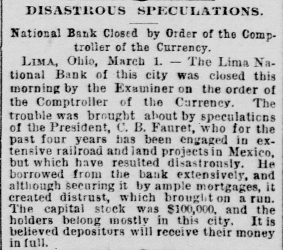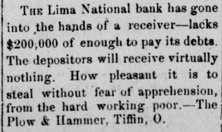 The receiver's report on the Lima, O., National bank shows that the creditors will realize about 70 cents on the dollar.