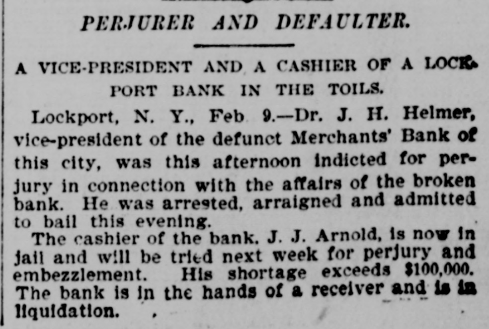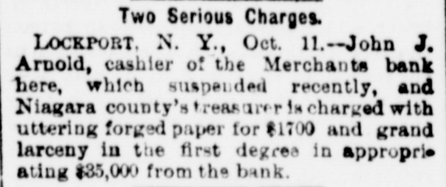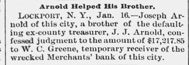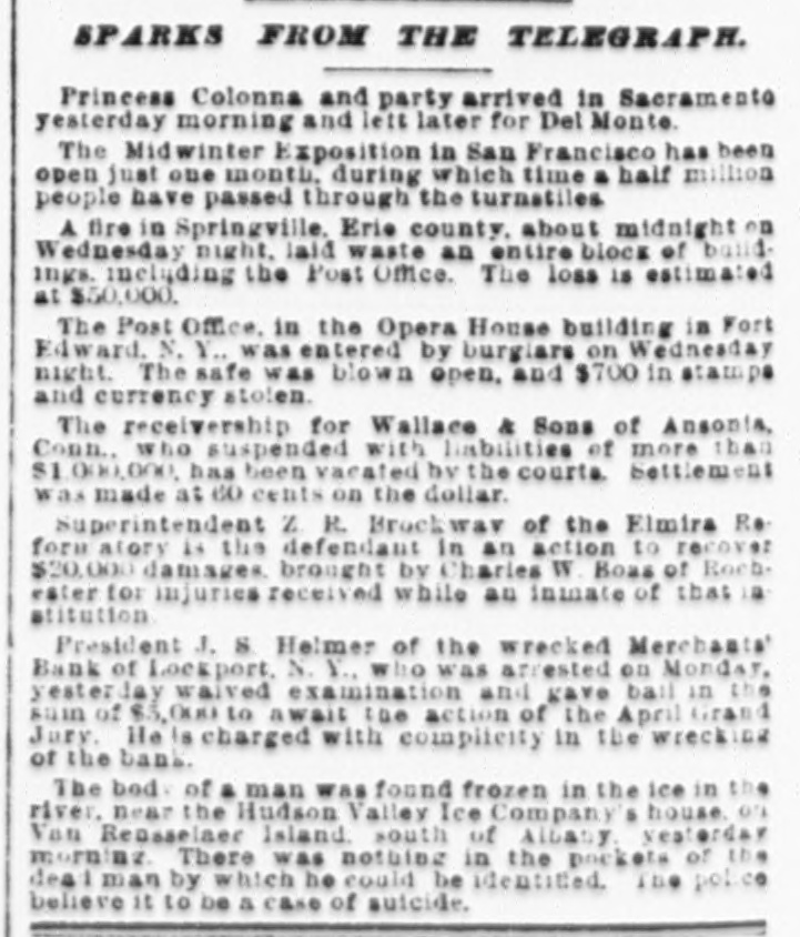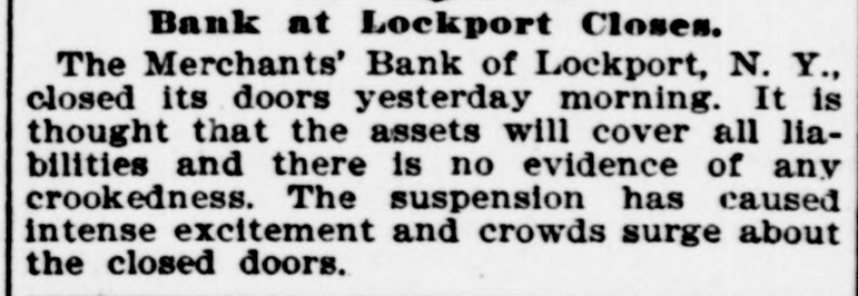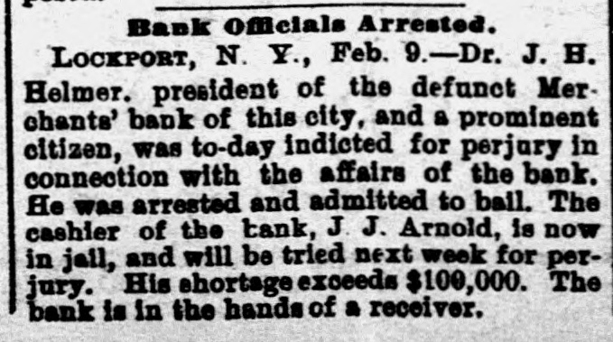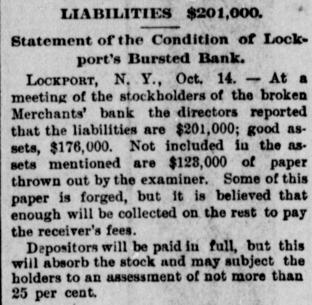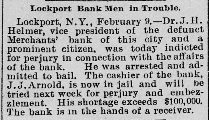 Penn at Hyndman, Pa Bank at Albany. Mo Oliver Iron & Steel company of Pittsburgh, Pa.; $700,000 Standard Wagon company at Cincinnati: $700,000. Aug 25-Ford county and First national banks at Paxton, III. Aug. 22-Samuel W. Clark, lumber dealer of Zanesville, O.: $1,500,000. Aug. 24-Navarro Mill company in San Francisco, $1,000,000 Dillon national bank at Helena, Mont Aug. 28-First national bank of York, Neb George C. Cribb, dealer in agricultural implements in Milwaukee; $600,000. Aug. 30-Nicaragua Canal Construction company of New York. Sep 1-Equitable Mortgage Ca of Missouri, at New York: $19,000,000 Denver (Col.) savings bank; $670,000. Sep. 18-Crippen. Lawrence & Co., Denver loan concern: $1,000,000. Sep. 19-Mast. Bufford & Burwell Carriage company at St. Paul: $1,200,000. Oct. 6-Merchants' bank of Lockport, N. Y. Oct. 18-National bank at Hutchinson, Kan., $135,000. Nov. 1-James C. Savery. proprietor of the largest hotel in Iowa, assigned at New York; $1,000,000. Nov. 22-American Casualty company in New York; $1,700,000. Dec. 11-Receivers appointed for agricultural implement establishment of C. Aultman & Co. at Canton, O.: $1,000,000. Dec. 15-Crane Iron company of Philadelphia; $700,000. Dec. 21-St Nicholas bank in New York. Dec. 23-Bank of Greensburg, Kan Other banking houses that succumbed to the financial troubles of the year were as follows: Capital national. Lincoln, Neh: State bank, Wahoo. Neb.: U. S. Banking company, Gervais, Ore: Bank of commerce. Nashville, Tenn.: Northwestern state bank. Sibley, la Central savings bank, Lansing, Mich.; Bank of Milbank, S. D.: First national bank, Ponce, Neb.; Ingham county savings bank, Lansing, Mich.: Second national bank, Columbia, Tenn.: Bank of Salem, S. D.; Kissamee (Fla) city bank: Bank of the Carolinas, Florence, S. C.: First national bank, Cedar Falls. Ia: Citizens bank, Minneapolis, Minn.: Bank of Zumbrota. Minn.: Evanston (III.) National bank: Oglethorpe national bank and Brunswick national bank, Brunswick, Ga.: Farmers' state bank, Brooklyn, Mich.; Brunswick (Ga.) state bank: Bank of Puyallup, Wash: National bank of North Dakota, Fargo: White county bank. Beebe, Ark.: Potter's bank. Paulding, O.; Merchants' national bank. Fort Worth, Tex.: Savings bank. Sandusky, 0.; State bank, Cortland, Neb.: Bedford (Ind.) bank: City bank, Carbondale, Ill.: Deflance (O.) savings bank: State bank, Manitowoc. Wis: Bank of Two Rivers, Wis.: New Albany (Ind.) Banking Co.; Shell Lake savings bank, Washburn, Wis.: banks at Mascoutah. Ill. Hudson, Wis., Ellenburg, Wash., Missoula, Mont. Gillespie, III: Park City bank at Salt Lake City; McCague savings bank at Omaha. Neb.: bank at Everett, Wash.: Riverside (Cal) Banking company; banks at Lebanon and Albany in Oregon, and Hanover. N. C: bank a: Ridgeway, Me Columbia bank at New Whatcom. Wash: Cataract bank at Niagara Falls, N. Y.; Sabina(O bank: First national bank of Provo. U.T.: Chaffee county bank at Salida. Col.; First national at Phillipsburg, Mont: First national bank of Cisco, Tex.: Jefferson county bank at Bolden, Col: Everett (Wash.) national bank; Arkansas state bank of Stuttgart; Arkansas Farmers' and Traders' bank at Dewitt: Somerset county bank at Trenton, N. J.; State bank at Shubert, Neb: Holt county bank at O'Neil, Neb.; First national bank of Cedartown. Ga.: Bank of Sterling and Bank of Loveland, Col.: Hutchinson (Kan.) national bank; Bank of Parker, Kan.: Woodson bank of Yates Center, Kan.: First national bank of Harrisonville, Mo.; First national bank of Anthony, Kan.: Bank of Belleville, Kan: First national bank. at Cheyenne, Wyo.: First national bank at Canyon City, Col: Union bank at Greeley, Col.; Bank of Crested Butte, Col.: Traders' bank at Tacoma, Wash.: Plainview (Neb.) state bank: First national at Orlando, Fla: Tacoma (Wash.) national bank; National bank of the Commonwealth and Bank of New England at Manchester, N. H.; Commercial national. Ainsworth national and Portland savings banks at Portland. Ore.: Ex-