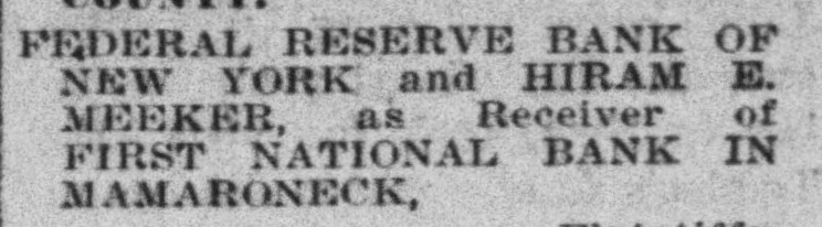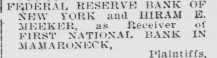 FEDERAL RESERVE BANK OF NEW YORK and HIRAM E. MEEKER, as Receiver of FIRST NATIONAL BANK IN MAMARONECK, Plaintiffs,
