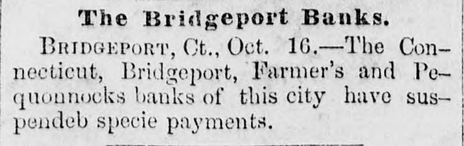 The Connecticut, Bridgeport, Farmer's, and Pequonmock banks of this city have suspended specie payments.