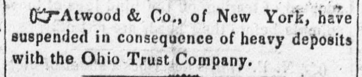 or Atwood & Co., of New York, have suspended in consequence of heavy deposits with the Ohio Trust Company.