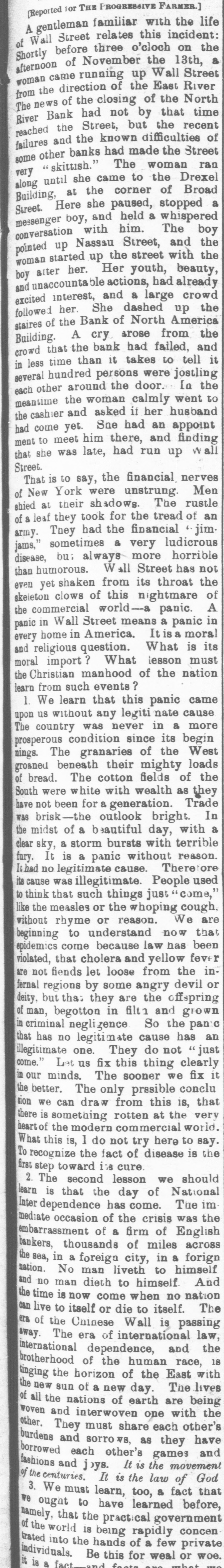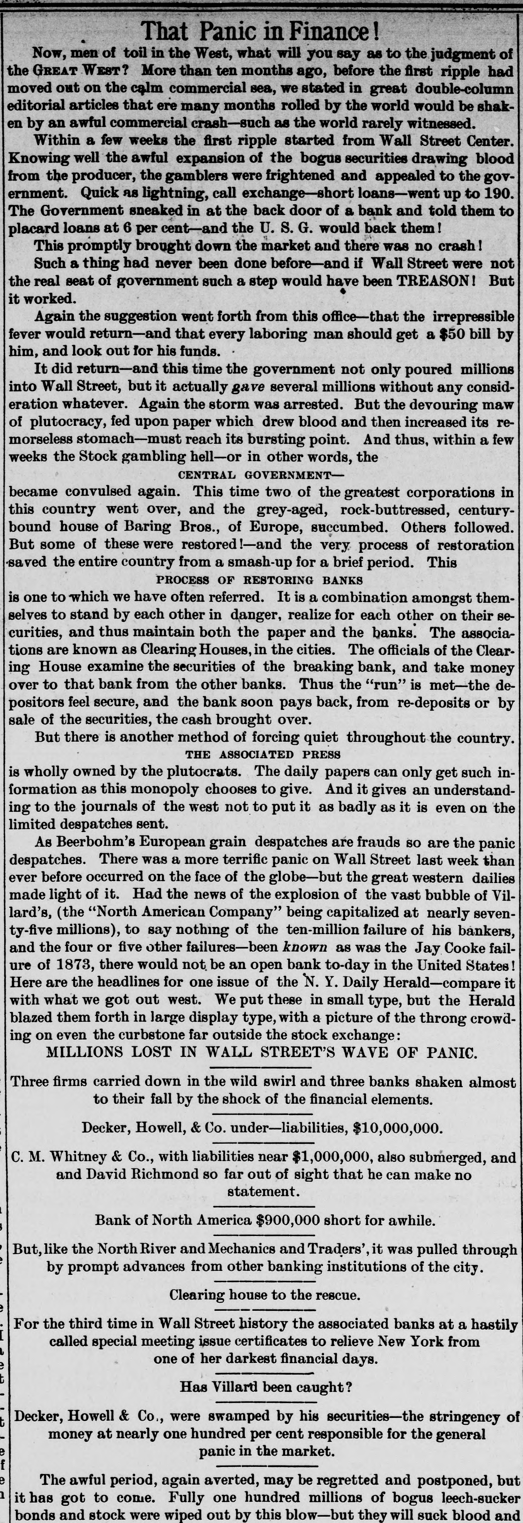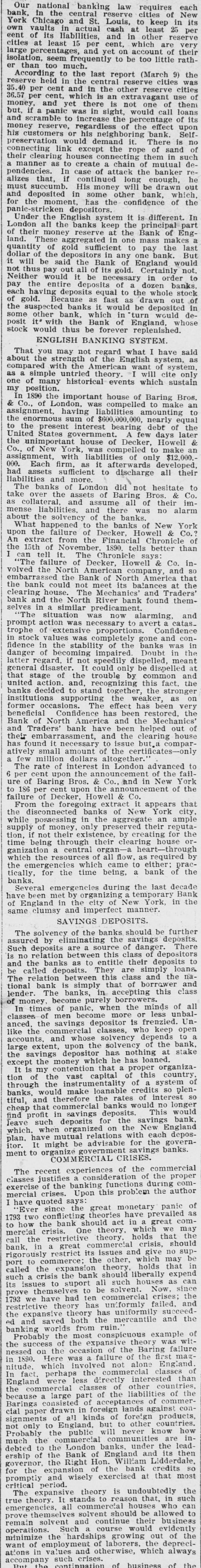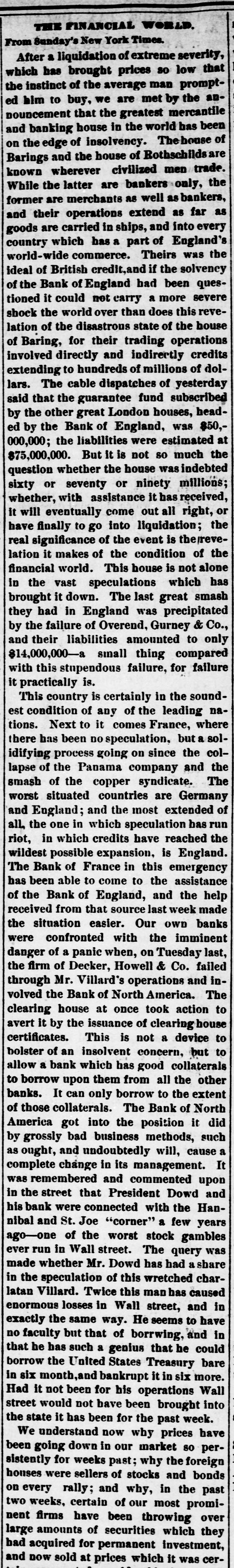 CLOSING PRICES OF CALIFORNIA STOCKS. San Francisco, Nov. 11, 1890. Yesterday To-day. Yesterday To-day. .30 .30 Navajo 1.25 1.35 Alta 8.95 3.95 35 Ophir Bulwer 1.00 6.75 Potosi 2.85 2.85 Best & Belcher 2.50 2.70 1.30 Savage 1.60 Bodie Con. 2.65 2.65 3.55 Sjerra Nevada 3.30 Chollar 2.45 2.50 Union Con 4.00 8.90 Con Cal & Va .90 90 Utah 2.45 2.40 Crown Point 2.65 2.00 Yellow Jacket 3.60 Eureka Con 2.80 2.50 2.10 Common wealth 2.10 Gould & Curry .90 1.05 2.20 2.20 Nevada Queen Hale & None 1.25 2.65 2.55 North Belle Isle Mexican .95 .90 Belle Isle .70 .75 Mono THE STOCK MARKET. Tuesday, Nov. 11-p. m. The deluge arrived to-day, and probably with the forced suspension of Decker, Howell & Co., simply because their collaterals having been discredited they were unable to borrow money on them, also came the end of the forced liquidations at the Stock Exchange. The action of the Clearing House, late this afternoon, in deciding, after examinations of the conditions of the Bank of North America, the Mechanics' and Traders' and the North River, to issue an unlimited amount of Clearing House certificates and for an indefinite period, is a virtual suspension of specie payments at the Clearing House and makes the entire amount of the associated banks' loans— nearly $400,000,000-available for settlements of differences at the Clearing House. If the banks ever were to recognize a situation that has been forced by a manipulation, their action is a little tardy. It would have been better to forestall the manipulators by action two months ago, when the special locking up of money began. To-day's action frustrates all further efforts to manipulate the money market, as the Clearing House can issue certificates, on the pledge of bills receivable and securities faster and to a greater extent than any clique of stock gamblers have the power to withdraw money. But to-day's action, after the manipulators have carried nine out of ten of their points, is much like locking the barn door after the daily disappearance of a horse or cow for sixty days, when there is nothing left to steal but a small pig. Tardy as the act is, it is of first importance to the general interest of the country. It checks the operations of men who for personal gains or for other personal motives have shown their ability and will to jeopardize the whole business of the country to attain their own special ends. Under the circumstances and the foroed conditions there was wisdom in leaving the amount of the issues of certificates unlimited, and the period of redemption indefinite. We understand that this provision was carried only after a hard struggle in the Clearing House meeting. But it was a necessary provision, because the conditions against which it is aimed are fletitious fabrics, woven from illegitimacy and the fears of honest people. The stock market this morning opened in good form at higher figures than last evening's closing, influenced by materially higher quotations from London, and favorable reports of the progress of the half-monthly settlements in Americans. But it was quickly apparent that a screw was loose somewhere by the sharp declines that followed in Villards; North American down from 27 1-2 to 22, Northern Pacific from 23 1-2 to 21 7-8, and the preferred stock from 67 1-2 to 64. Following this first break there was a substantial recovery for all stocks, and at noon prices generally were ruling at about the best figures of the day. Then came a renewed selling of the Villards which was not explained till later. Decker, Howell & Co. had not been able to take up their over certification of about $900,000 yesterday at the Bank of North America, against which they last evening deposited securities, and the Bank of North Ameriça was unable to pay in cash its indebtedness to the Clearing House. The securities had to be sold. Under these forced sales North Americans declined to 17 1-2 against 27 1-2 at the opening, Northern Pacific to 163-4 against 28, and the preferred stock to 55 against B7 1-2. Edison General Electrical Light (8 per cent stock) sold early at 89, but 400 shares were sold under the rule at 80a65. The Northern Pacifics and North Americans furnished 196,400 shares out of the total sales in the general market of 653,447 shares. The failure of C. M. Whitney & Co. was announced early in the day, and for their account there were sales under the rule" of Toledo, Ann Arbor and North Michigan stock at from 26 down to 12, with a final closing at 16 3-4; the stock has been ruling at about 32. The general market. of course, responded to the forced sales referred to, but yet in tone it was strong. While closing lower than the opening figures, it generally was higher than last evening's final figures. If today's action of the Clearing House had been made yesterday, the Bank of North America could have made its clearances to-day in certificates, and the heavy liquidation in the Northern Pacifies would not have been forced. This illustrates the meaning of to-day's action. A want of immediate cash does not necessarily imply insolvency. The financial, commercial and mercantile situations are sound at the core, but they have been disturbéd by the creation of artificial methods and the double hoarding of money first, by a lockup to produce just such results as to-day has revealed, and second, by a greater leck-up of money lenders and capitalists who have been frightened by a situation which they could not comprehend. THE BOND MARKETS. The only sale of Government bonds was $5,000 for
