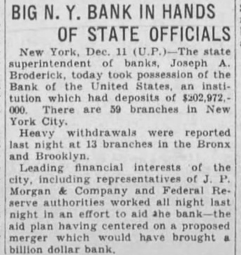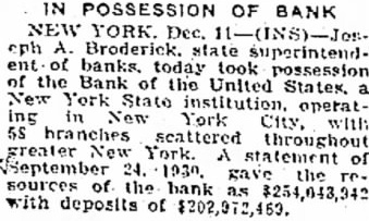 State superintendent of banks (Joseph Broderick) and the New York banking department took possession of the institution, effectively closing/suspending it.