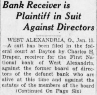 Solution of Chicago's Greatest Gang Massacre Announced by Attorney Alexandria Banker Suicides; Examiner Called WEST March community was horribly shocked today when learned that Sherman Mills. 55, cashier of the first national bank here, shot and killed himself in garage in the of the bank late last night. Mills fired four shots into his body. according to police. thru his mouth and two just low the heart. The supposed suicide followed for federal bank examiner issued yesterday by the board trustees. Johnson, president of the bank, said no statement will made until after the examiner arrives today. Despite disquieting rumors, no run on the bank is believed probable. Mills was life long resident of this city. He former Sunday school superintendent, well known and well respected. His widow and one daughter, Mrs. Edna Mills Brower, of mond, Ind., survive. This town located about 18 miles west of Dayton. WEST ALEXANDRIA Mar. First National bank here its doors today. This was the second shock administered to this community during the last hours. The cashier. Sherman Mills, committed suicide last night by ing four bullets into his body. Ward, Cincinnati, federal bank examiner, today ordered that the bank be closed. Mills had been cashier of the bank since had been founded, years tomorrow. The bank has liabilities of $413,and is capitalized at $40,000. Ward and bank officials refused discuss case so not known whether shortage exists. Staff Correspondent CHICAGO, March Chicago's greatest gangland sacre of seven members of George "Bugs" Moran's gang, long hinted. long predicted and investigated by every body here, an attache the state's attorney's office. Into this blood-red tale of horror woven all the complexities modern gang warfare, coupling the massacre to the iron rule of Capone, the murder of Arnold Rothstein, New York gambler and alleged head of narcotic ring, to the slaying of the New York Frankie racketeer. Uale, to the internecine gang operations in Chicago, the fight for stills, beer running and territory-and to the long list of unsolved gang murders in Chicago. The arrest of three men in troit, who are believed to be John Burke, Gus Winkler and Milford Jones. and their identification here the men wanted, the last connecting link the police need, announced. Burke believed to be Joseph of St. bank robber fugitive from Louisville, Ky., with record kidnaper and suspected of several Jones is thot be James Ray, of St. Louis, and Winkler said to be Claude Maddox, the man who imported Burke and Ray for $20,000 each to handle the execution of the north gangsters.