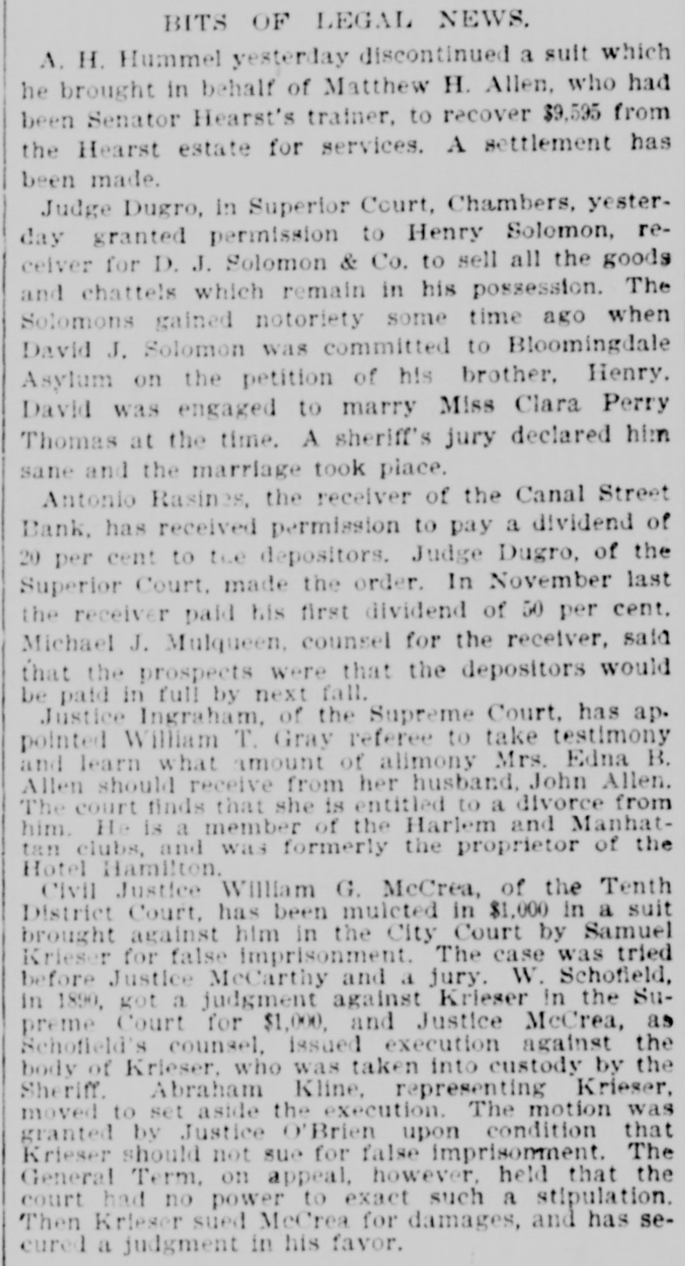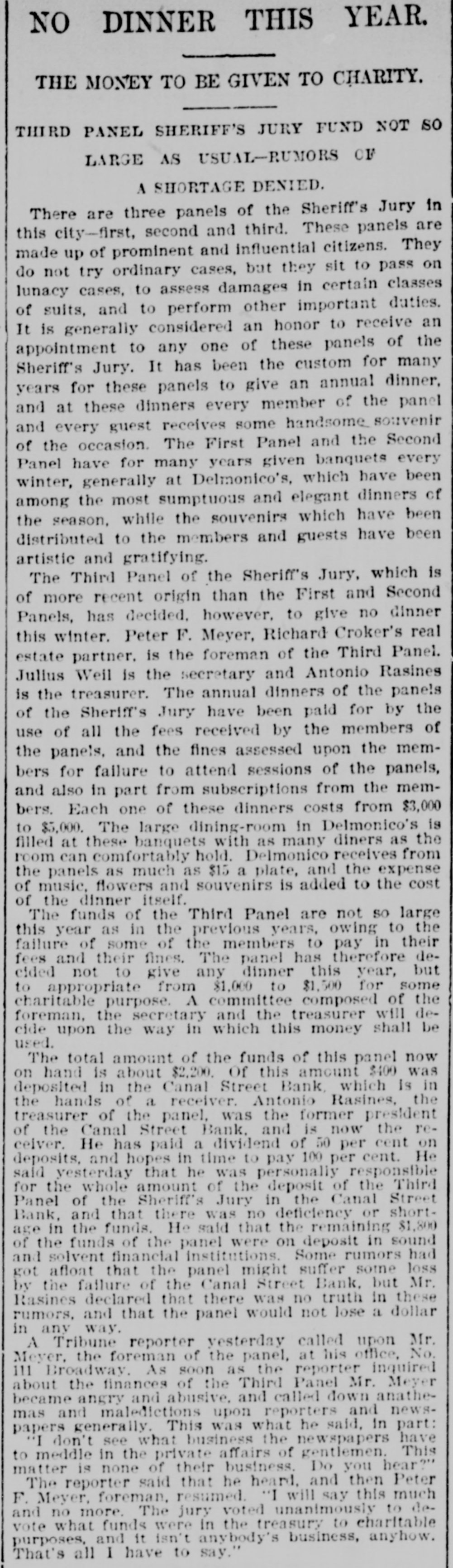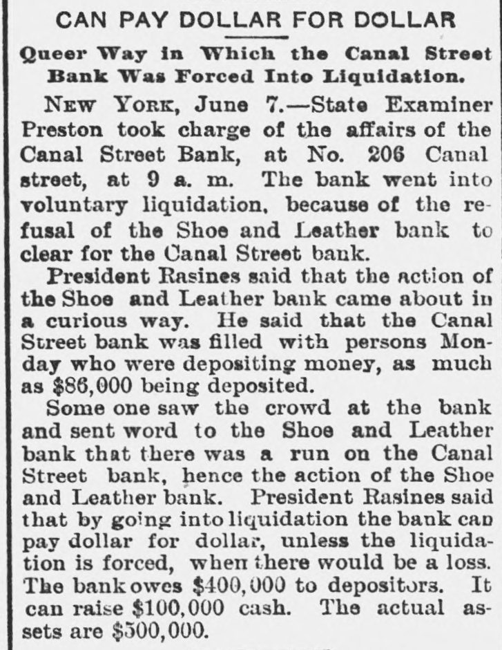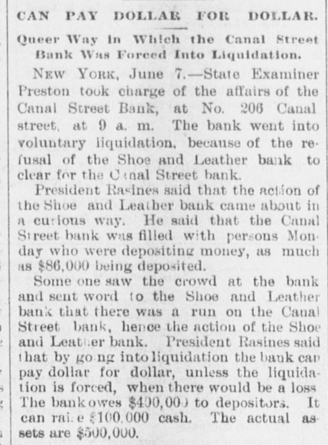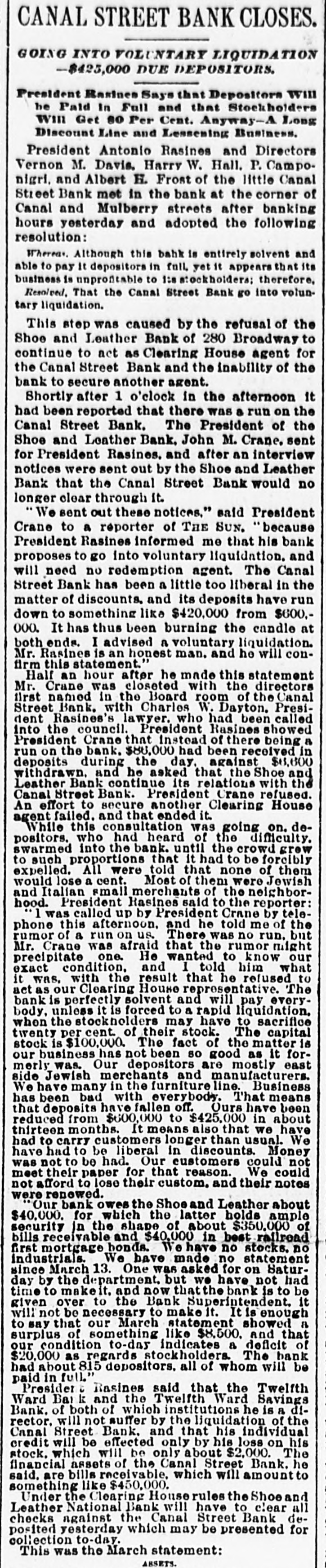 AUDUBON, AUDUBON CO., IOWA, THURSDAY. JUNE 8, 1893 NEW YORK BANK FAILURE. GRAND JURY AFTER BANKERS WILL CALL CONGRESS Plankinton Failure of Milwaukee to be The Canal Street Bank Forced to Ge Investigated. Into Liquldation-Other Failures. SPECIAL SESSION TO BE HELD ERAL NEWS MILWAUKEE, Wis., June 7.-The NEW YORK, June -The Snoe® and IN SEPTEMBER. Grand Jury called to investigat the Leather National Bank gave notice that it would not clear for the Canal causes leading to the many big fires was convened and with it came a senStreet Bank. It was not the regular President Cleveland Sets All Doubts at sation. In deliverir his charge to notice, but merely a warning to other Rest by Announcing that He will the jury Judge Waller read the statbanks not to take any checks on the Summon Congress to Meet Not Later Canal Street Bank. The Canal Street utes referring to the obtaining of than Sept. 15. credit by false pretenses and to the Bank has been hard up for money for acceptance of deposits by banks when some days. The president of the the officials know that the bank is not Canal Street Bank is Antonio Rasires. Booth, the greatest tradegian WASHINGTON, June ?,-The Presiin a sound condition. He told a reporter that the bank was e, died on the morning of the dent said to-day, in reply to a direct The first clause refers to Frank A. solvent, but if it could not get temquestion by a representative of the apartments at the Players' Lappen and the second to the officials porary assistance it would have to go Associated press, that he intended to of the Plankinton Bank. It is said into liquidation. New York, which lie had call an extra session of Congress not The Sheriff received two attachthat Lappen many strange tales The actor's illness had been earlier than Sept. 1 nor later than to obtain money. and directors of the ments against Schaffner & Becker, erable duration, as for weeks Sept. 15, unless unexpected contingenPlankinton Bank knew the bank was brokers and bankers of Chicago, III. cies should necessitatean earlier meeteen on the verge of the grave, shaky several days before it was who assigned on Friday last in favor ing. The President further said: closed. of the following creditors: Benjamin hope of recovery. 'While there has been no mystery Levy & Co., $12,000: Lewis Ettinger, It is said the grand jury will take lure of Hermann Schaffner & for secrecy in regard to my intention up the matter at once and let the fire$1,573. A deputy sheriff served copies in this matter, I think it not amiss k, which occurred recently at of the attachment on the American business go for a later investigation. that our people should be informed bore fruit on the 5th in well Exchange National Bank, where the It is very probable that indictments authoritatively that the time is at will be returned, too, and Fred T. defendants are supposed to have an uns which were precipitated hand when their representatives in account. Day and Lappen will be placed under t, if not every one, of the savCongress will be called upon to deal surveilance. TROY, N. Y. June -The failure of with a financial condition which is the ks of Chicago. All were able The news of the judge's charge the Fort Ann Woolen Company of Fort only menace to the country's welfare rough, though some took adspread rapidly and was greeted with Ann, Washington County. was anand prosperity. It is well for the of rules requiring notice of great favor, it being frequently renounced. The property of the compeople to take up the subject for themval of deposits. On the 5th pany was attached and the mills shut marked that Lappen and the people selves and arrive at their own concluassociated with him had been treated down by the sheriff. s failures occurred throughout sions as to the merits of a financial altogether too leniently. MONTREAL June The publishers ed States. policy which obliges us to purchase of L'Etendard, the French clerical oridle silver bullion with gold taken fire in Omaha a wall fell, RACINE DEPOSITORS SAFE. this city, have assigned, with from our reserve. One does not need liabilities of some $70,000. The assets a number of firemen and citiBank Directors Pledge Their Personal the eye of a financier to see that this are estimated at about $33,000. he ruins. One person was ingold thus subtracted from the GovernFortunes to Secure Them. NEW YORK, B-Morris Schwerin, killed and five others fatally ment's stock is eagerly seized by other RACINE, Wis., June 7.-The direccarrying on business under the name nations for the purpose of strengthentors of the Manufacturers' National of Edward Simon & Bros., trunk, valise ing their credit at our expense. Bank, the Union National Bank and and bag manufacturer, at Newark and result of a conference between "It does not need the art of statesthe Commercial and Savings Bank, 667 Broadway allowed judgment to ller Eckles and the officials of manship to detect the danger that mindful of the uneasy feeling occabe entered against him for The 1 Capital National Bank of Inawaits upon the continuance of this sioned by the recent failures at Milsheriff has taken possession of operation. Already the timidity of is, the comptroller announces waukee and Chicago, held meetings Schwerin's stock. M. Warley Platzke, capital is painfully apparent and none and issued the following guaranty: k will probably resume in attorney for a number of creditors of us can fail to see that fear and ap o weeks. As an assurance to the public and holding claims aggrerating $60,000, prehension in monetary circles will our depositors of the full stability and said to a reporter that the liabilities ternational billiard match teultimately bring suffering to every safety of the banks of Racine and for were about $350,000; actual assets humble home in our land. rank Ives, American champia valuable consideration by us re$200,000. Schwerin confessed judgthink that between now and the ceived, we the undersigned, the direeJohn Roberts, English chamment in Newark