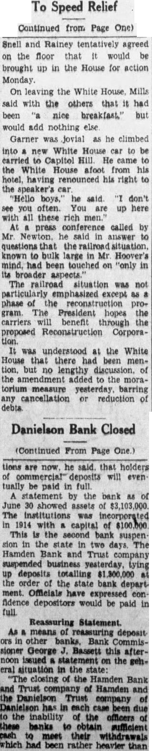 (Continued From One.) tions are now. he said. that holders deposits will even tually be paid in statement the bank as showed assets $3,103,000 The 1914 with capital This second suspen the in two The Hamden and Trust company suspended yesterday, deposits totalling order the bank department. Officials confidence depositors would be paid full