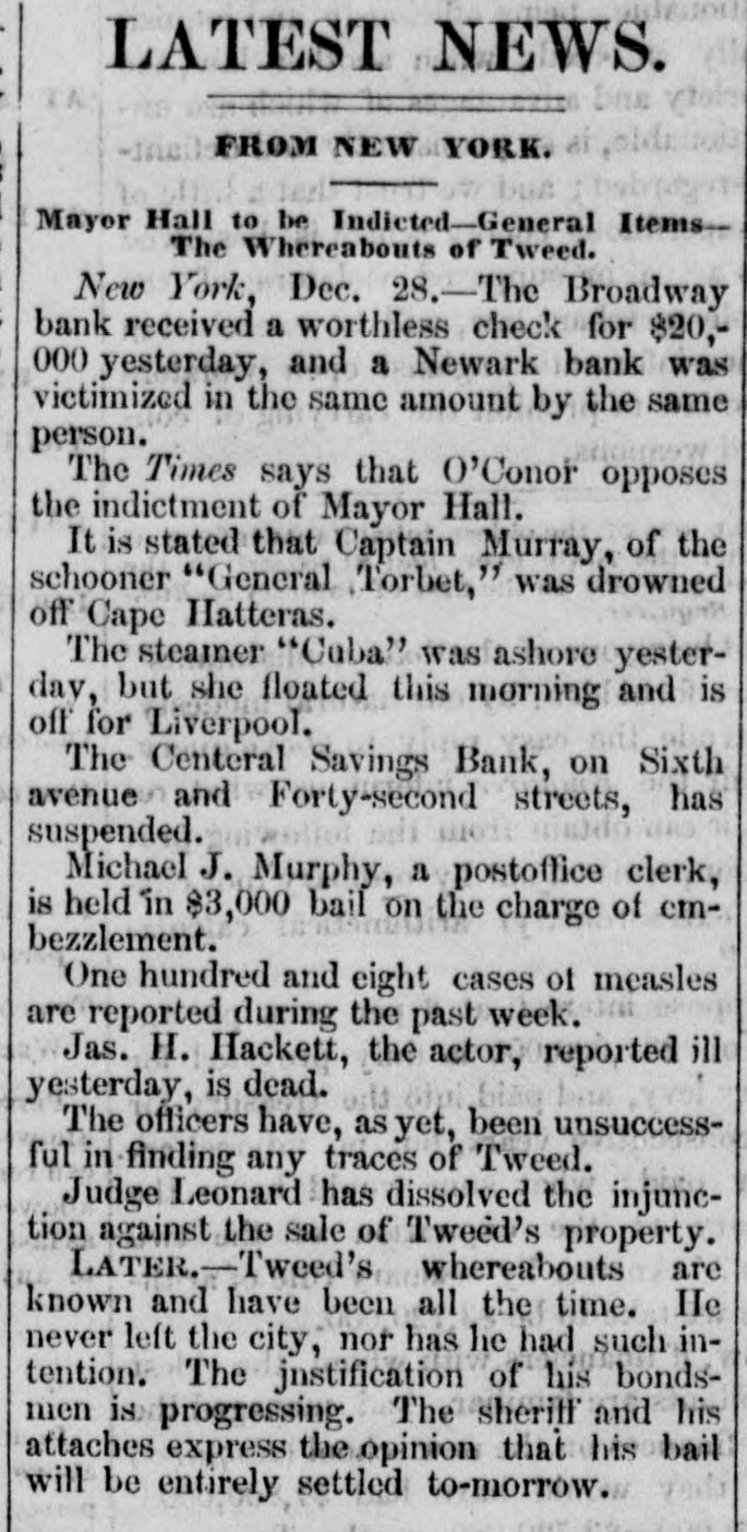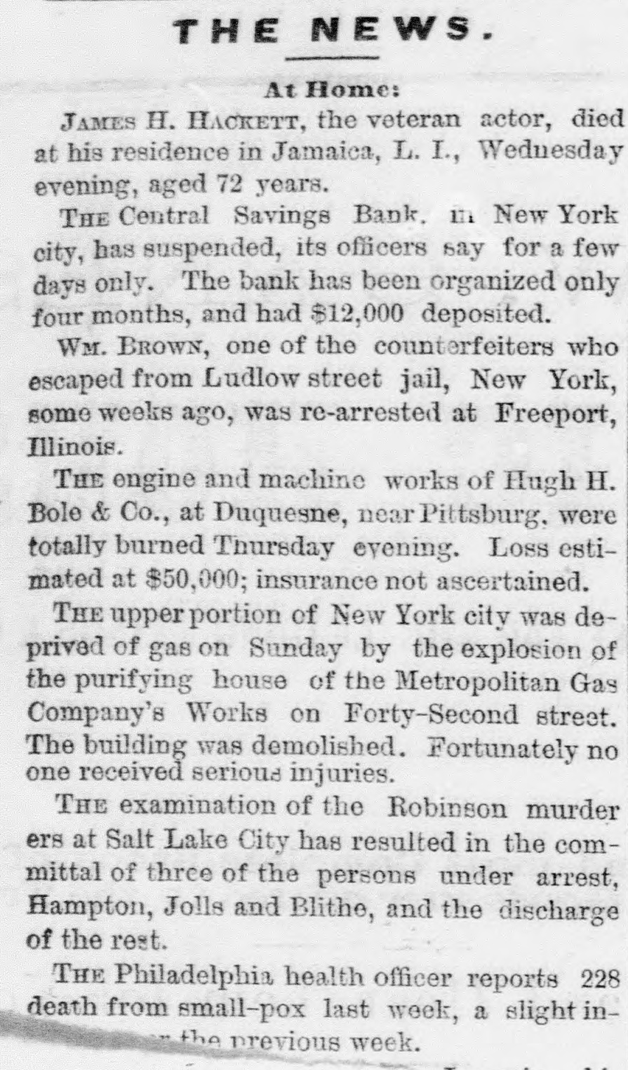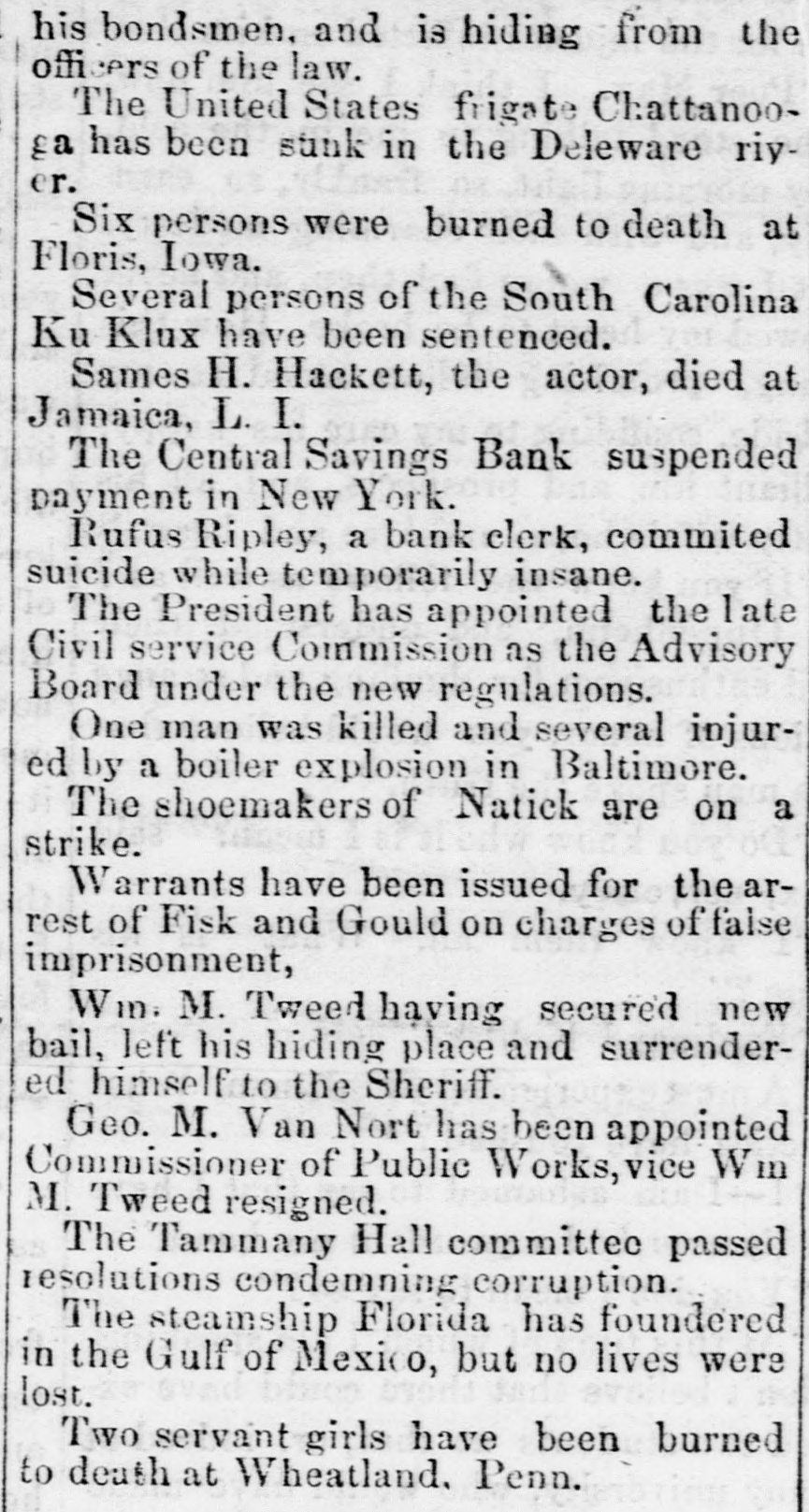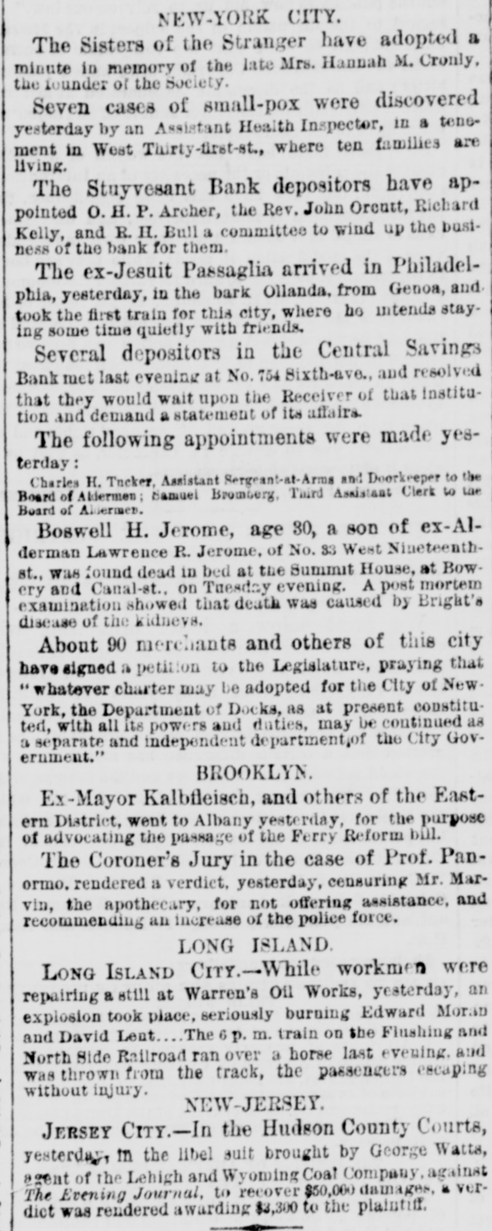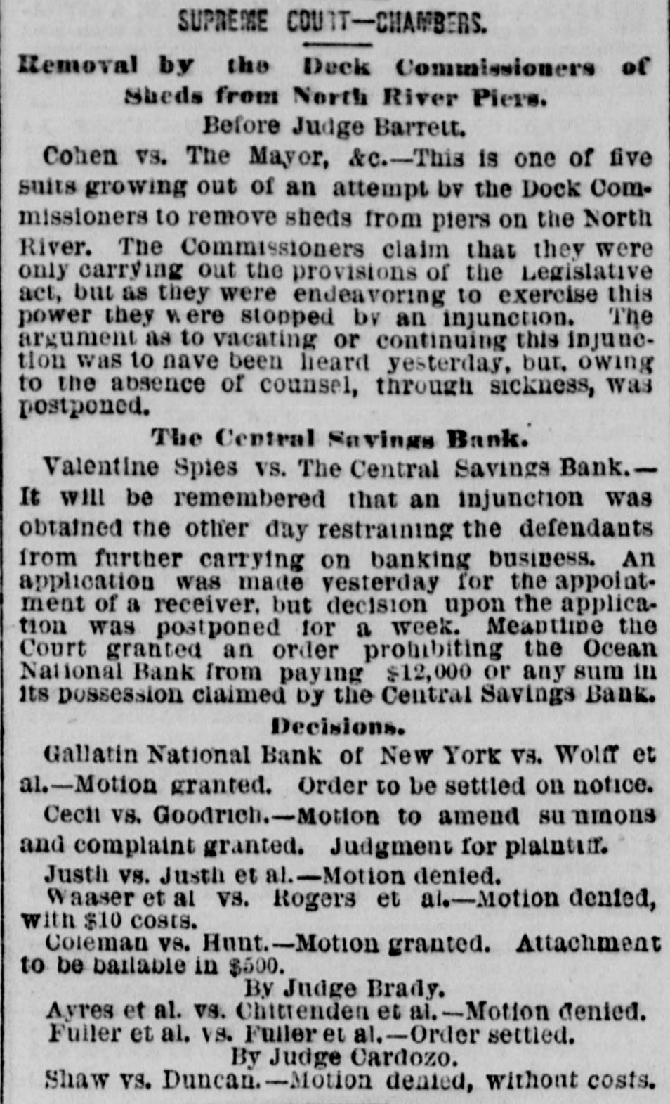 BANK AFFAIRS. INVESTIGATION BY THE CONGRESS COMMITTEETHE CENTRAL SAVINGS BANK. The sub-Committee of the Committee on Banking and Currency. consisting of Representatives Worthington C. Smith, Merriam, and Randall, appointed to investigate the bank suspensions in this city, met at the Clearing-House in Wall-st. yesterday morning, to confer with Messrs. Leverich and Tappen, representing the Clearing-House Committee, on the best means of preventing such disasters as have befallen the Ocean, Eighth, and Union Square National banks. Messrs. Leverich and Tappen were of the opinion that the failure of the banks named was attributable to bad banking. They recommended that a proper compensation should be attached to the office of Bank Examiner, and that it should only be filled by men of approved ability and integrity. They further recommend that Bank Examiners should be moved from one center of finance to another. and not allowed to remain in one place, as in the case of Callender. It is understood that the Committee will urge the passage of an act making it a misdemeanor for a Bank Examiner to borrow money. directly or indirectly. from any bank examined by him, and making it a similar offense for any bank officer to lend a Bank Examiner any money even upon the most approved securities. The Committee have investigated the affairs of the Ocean and Union Square National Banks, but will not report until Congress reassembles. Mr. Merriam informed 8 TRIBUNE reporter last evening that nothing had been discovered calculated to throw discredit on the National Banking system. Mr. Smith has been suddenly called away from the city, and the investigations will be conducted by Mr. Merriam. The Central Savings Bank. at Sixthave. and Fortysecond-st., was organized four months ago, and having had $12,000 on deposit in the Ocean National Bank at the time of its suspension, has been unable to meet all the demands which its depositors have made upon it. Several days have elapsed before checks made by depositors have been honored, and considerable Anxiety prevails among them. officers of the bank have stated that the institution has not paid expenses. The rest of the building which the Bank occupies*is a large one, and although the number of depositors IN considerable, yet the aggregate amount of money intrusted to its care is comparatively small. A TRIBUNE reporter was informed yester day by Mr. Davis, Receiver of the Ocean National Bank, that the amount due the Savings Institution will ulti. mately be paid in full. and there is no doubt from the statement of Mr. Peek, President of the Central Bank, that the bank will be able to pay all its depositors.