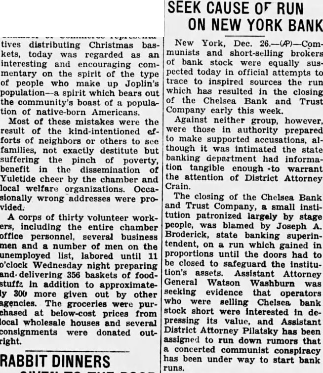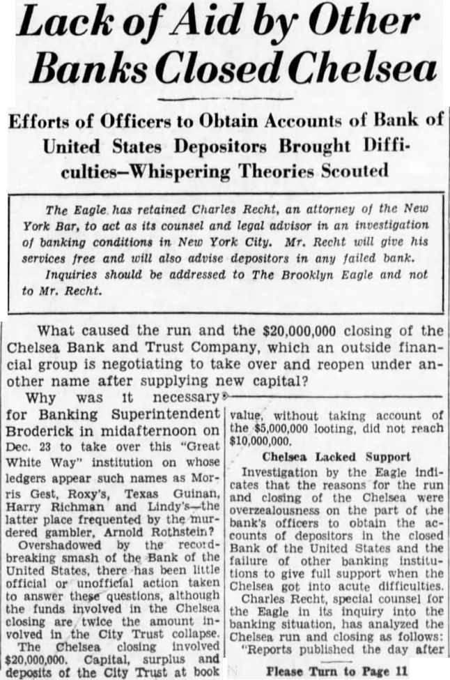 Jurists' Loans The jurists' loans are given follows: Magistrate Brodsky County Judge George Martin, of Brooklyn, also appears rower on unsecured note $10,000. declared. did Register McQuade, that he ranging to pay the loan when matures. Sheriff Aaron Jacoby, Brooklyn, listed as having two loans totaling $5,120. Isidor Kresel, director and counsel the bank, said today that has been paid since the bank closed. Samuel Koenig, Republican leader of Manhattan, listed owing the bank unsecured, on the day closing. He issued that obligations have been paid off his since the bank closed. Edward Flynn, Secretary State Bronx Democratic leader. listed having secured loan: Joseph Tumulty. secretary the late President down having discounted and Dr. Wilnote liam Greeff, Hoshaving an $800 unsecured pitals, as note. $20,000 unsecured note of the Holding Company bears the "indorsed by Arnold Rothstein."