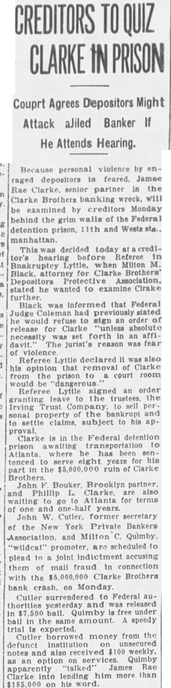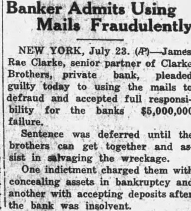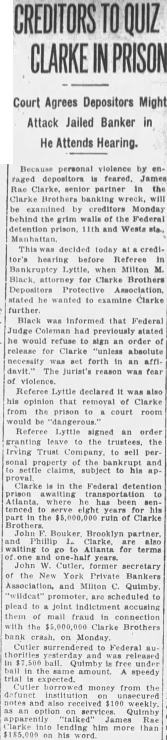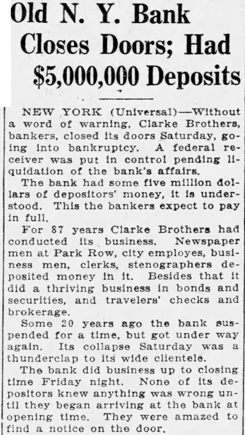 Couldn't Find Creditors NEW than 40 of per cent dividend checks mailed few days ago to depositors and creditors of Clarke Brothers, private New York bank, which failed for about $5,000,000, returned to bank's because post office authorities could not locate addresses.