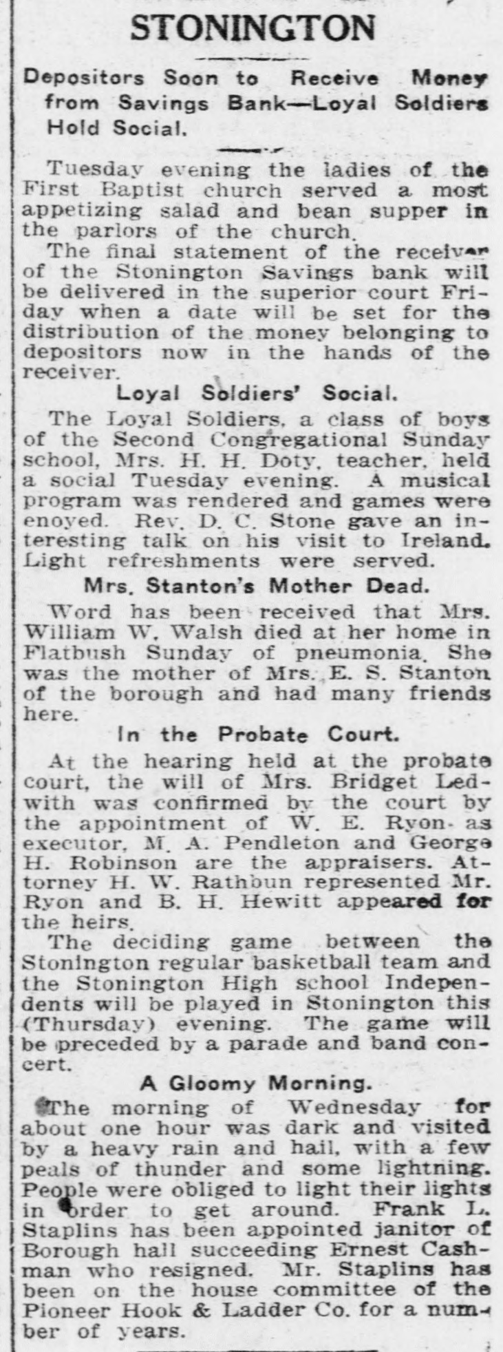 SHORT CALENDAR MATTERS IN SUPERIOR COURT. Two Motions to Set Aside Verdicts Were Argued. Of the 20 matters on the short calendar list in the superior court Friday, besides the uncontested divorces, all but five were heard, as follows: The motion of the city of New London to set aside the verdict of $2,750 recently returned by a jury in the superior court against the city and in favor of Miss Eunice H. Allen, was argued, and the judge took the papers. A like motion in the case of Wellington Allen vs. the Connecticut Co., in which the Connecticut Co. asks that the verdict of $3,000, recently awarded Allen by a jury, and the judge took the papers. It is interesting to note that in the last three cases tried the jury has found for the plaintiff, and motions to set aside have followed. In the case of Pendleton et ux. VS. Stonington Savings bank, an order for a hearing on appointment of permanent receiver was granted. In the case of Hanson et al. vs. the West Mystic Boat Co., Nathan Belcher of New London was confirmed as permanent receiver, and four months as a time limit for presenting claims was fixed. Permission to employ counsel was granted. Pleadings were filed by stipulation in the case of Walker VSA Walker. The motion for default for failure to plead was argued in Margaret Kenure vs. Brainerd & Armstrong Co., and Judge Wheeler took the papers. An allowance of $35 in ten days to defend was made in the divorce suit of Miner vs. Miner. An answer in ten days was ordered in Charlotte H. Trail vs. Mark D. Stiles. An answer in ten days was ordered in W. H. Trail VS. Mark D. Stiles. An answer in two weeks was ordered in Ida K. Billings, executrix, and others, vs. Alexander F. Shaw. Pleadings in two weeks were ordered in Rebecca Cowles vs. city of New London. In Charles II. Champlin vs. city of New London pleadings were ordered in two weeks. Judgment of non-suit was opened in the divorce suit of Ginevra R. Karoli vs. Henry P. Karoli. A special bail of $2,000 was ordered in two weeks in Angelene Leonetta ys. Joseph Marano. This to be filed before the pleadings. Cases Assigned. The following jury cases were assigned for hearing at Norwich: Tuesday-John Garlington vs. Blissville Mills Co., Inc. (now on trial); Joseph Musial and wife vs. Daniel Kudlik. Wednesday-Henry A. Rogers VS. The Soltz Co., New England Hebrew Farmers' society VS. Louis Schwarth, Emma J. Raughitan VS. Norwich Nickel and Brass Co. Thursday-Willard B. Sunderland vs. Groton and Stonington Street Railway Co., Amede Chetty vs. town of Montville, Georgianna Chetty vs. town of Montville. Dec. 26 (special)-Angello Covell, administrator, vs, Connecticut Co. PAGE 11