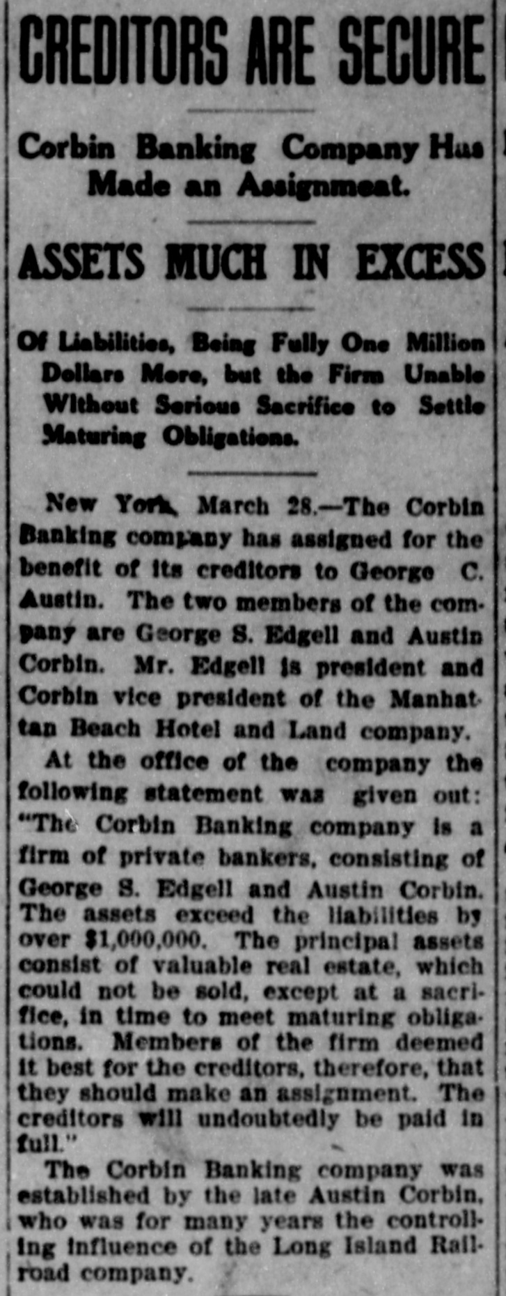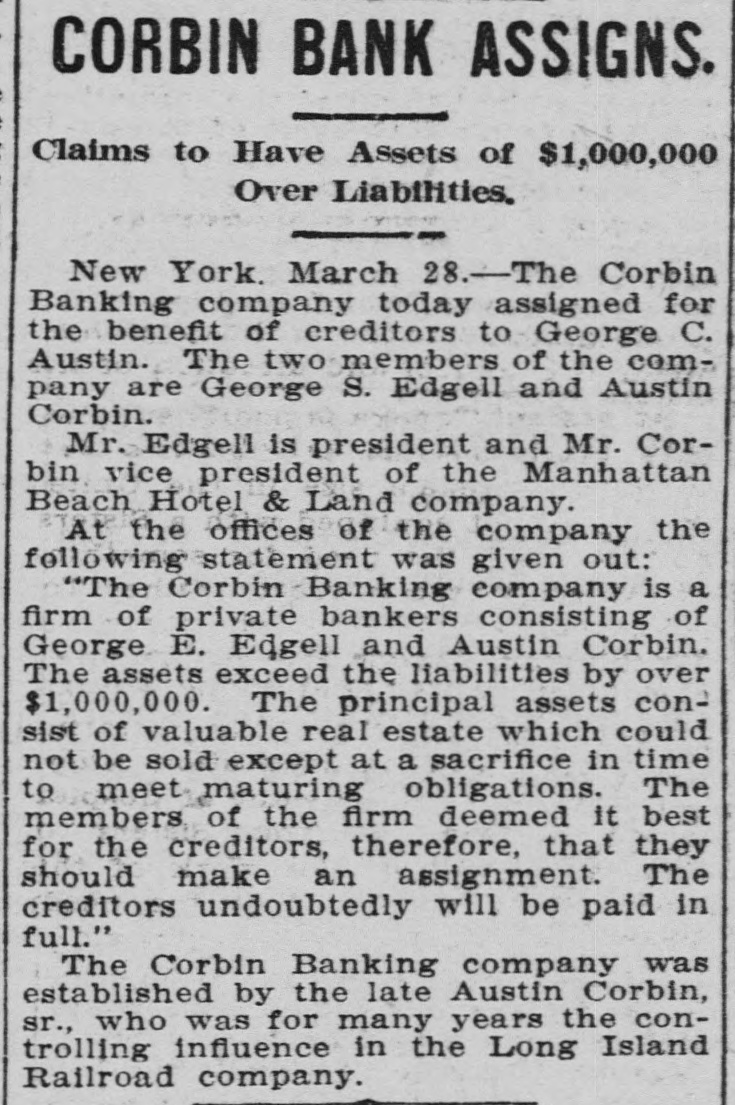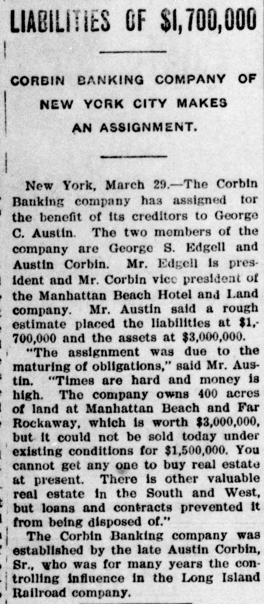 FINANCIAL Jan. 21-Merchants' and Farmers' bank of Fairmont, Minn., suspended. Feb. 2-F. D. Gilman, former president suspended Home bank of Goodland, Ind., found guiltv of embezzlement. 4-First National bank of Scotland, S. D., close by bank examiner. 8-F. D. Gilman, Indiana banker, sentenced to term of one to three years in state prison. 25-Disappearance of $173,000 from subtreasury at Chicago made public. Mar. 14-Virtual panic in Wall street; Secretary Cortelyou relieved the situation. 19-Citizens' State bank of Firth, Neb., closed by state. 28-Corbin Banking company of New York, assigned; assets, $3,000,000; liabilities, $1,700,000. Apr. 2-Maj. H. W. Salmon of Warsaw, Mo., convicted of illegal banking, sentenced three years in penitentiary. 11-Bank of Conception, at Clyde, Mo., ordered closed. 19-Ex-Judge Smith of Chicago, found guilty of conspiring to defraud stockholders and depositors of Bank of America, of which he was president; penalty, imprisonment and $1,000 fine. Jul. 1-Citizens' bank of Eureka Springs, Ark., suspended. 2-First National bank of Hicksville, O., closed by comptroller of currency 5-Fort Dallas National bank of Miami, Fla., closed. 20-Farmers' National bank of Boyertown, Pa., ordered closed. Aug. 3-People's State bank of Brownstown, Ind., closed by state authorities. 14-Receivers appointed for Pope Mfg. Co., of Hartford, Conn.; failure ascribed to stringency of money market. Sep. 5-Watson & Co., members of New York stock and produce exchanges and of Chicago board of trade, failed. Oct. 9-Union bank of Richland, and Bowman bank of Kalamazoo, Mich., both private institutions, closed doors. 10-H. D. Reynolds' bank of Valdez, Alaska, closed doors. 15-First National bank of Dresden, O., failed. 16-Collapse of Heinze corner in copper caused violent slump in stocks in New York; firm of Otto Heinze & Co., suspended from stock exchange. 19-New York clearing house committee declared that the Heinze, Morse and Thomas interests had been eliminated from banking organizations of New York. 22-Knickerbocker Trust Co., New York's second largest financial institution, forced to suspend; great slump in securities; call money at 70 per cent. 23-Secretary of treasury ordered deposit of $25,000,000 of government funds in New York banks Four Westinghouse companies at Pittsburg and one trust company forced into hands of receivers because of financial stringency State Bank and Trust Co., of Carson, Nevada, failed. 24-Three minor banks in New York forced to close Southern Steel Co., of Birmingham, Ala., filed involuntary petition in bankruptcy. 25-Six more minor banking institutions in New York closed doors Union Trust Co., of Providence, R. 1., suspended. 26-Banks in New York and Chicago, and many other cities adopted clearing house loan certificate system to prevent draining of supplies of currency and made withdrawal of savings deposits subject to legal notice. 20-California Safe Deposit & Trust Co. bank, at San Francisco, closed. Financial conditions in New York practically normal again. Nov. 4-Three small banks in Kansas closed. United States Steel corporation secured controlling interest in Tennessee Coal & Iron Co. 6-Receiver appointed for Arnold Print works of North Adams, Mass., one of largest textile concerns in country. 12-Merchants' National bank of Portland, Ore., California bank of Oakland, Cal., and Farmers' & Merchants' bank of Sapulpa, I. T., suspended. 18--Secretary of Treasury Cortelyou ordered issue of $50,000,000 of Panama bonds and $100,000,000 certificates of indebtedness as means of relieving financial situation City National bank of Frederick, Okla., failed. 27-American Silk Co. capital stock, $11,000,000, which operated mills in several cities, placed in hands of receiver Dec. 2-Chelsea Savings abnk of Chelsea. Mich., owned by State Treasurer Glazier, closed. 5-National Bank of Commerce, one of largest financial institutions of Kansas City, suspended. 6-Fort Pitt National bank of Pittsburg, closed. 17-Jewelers' National bank at North Attleboro. Mass. in hands of receiver