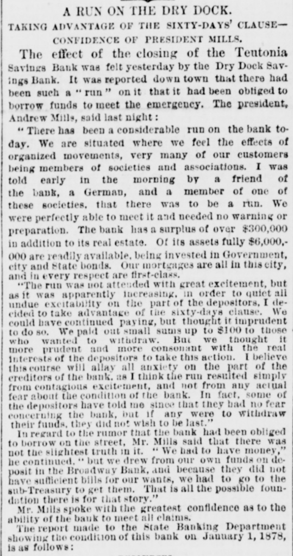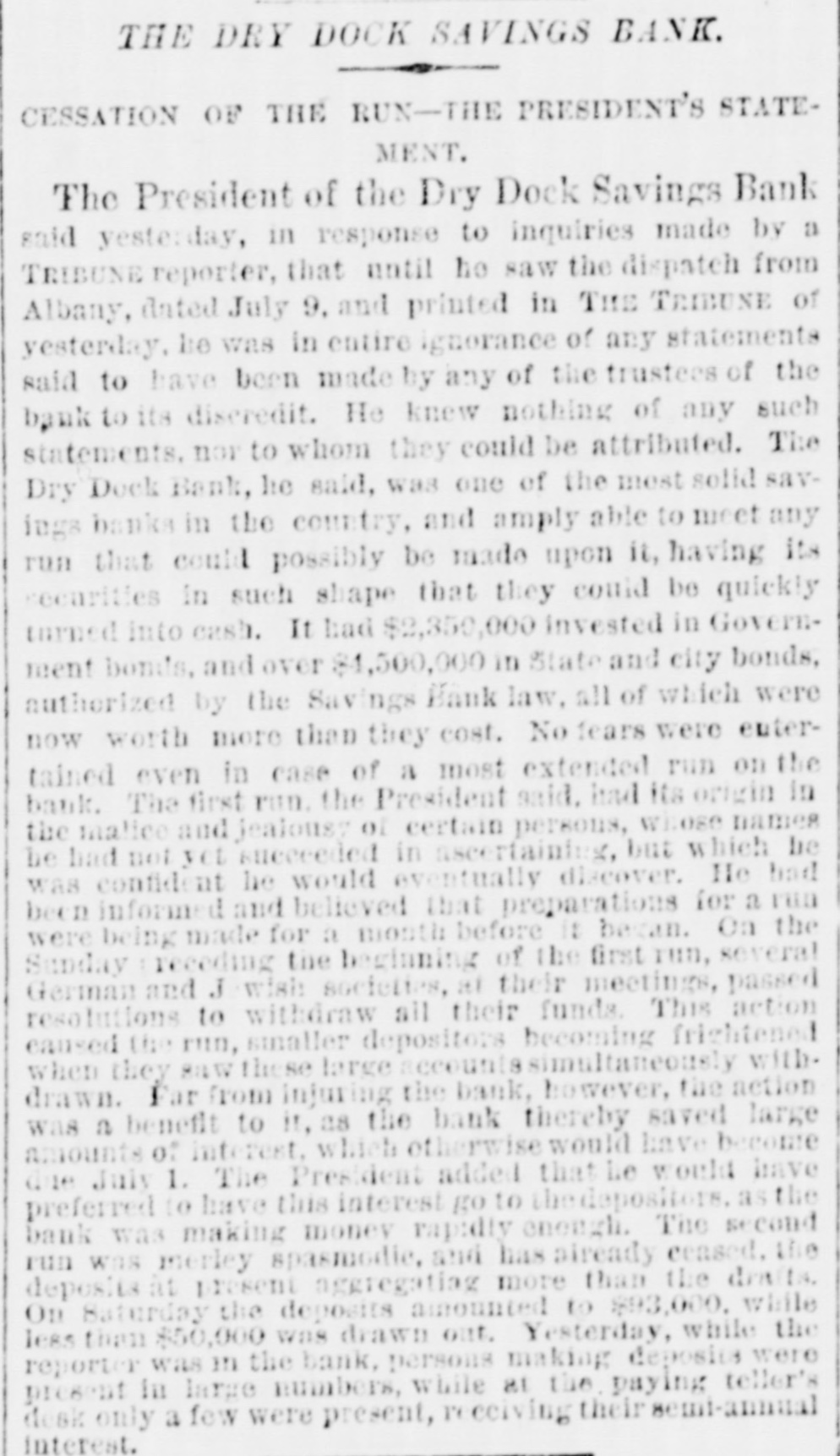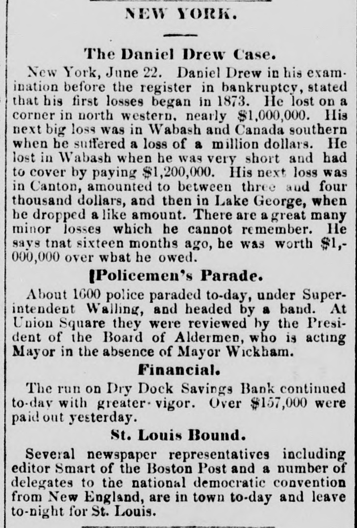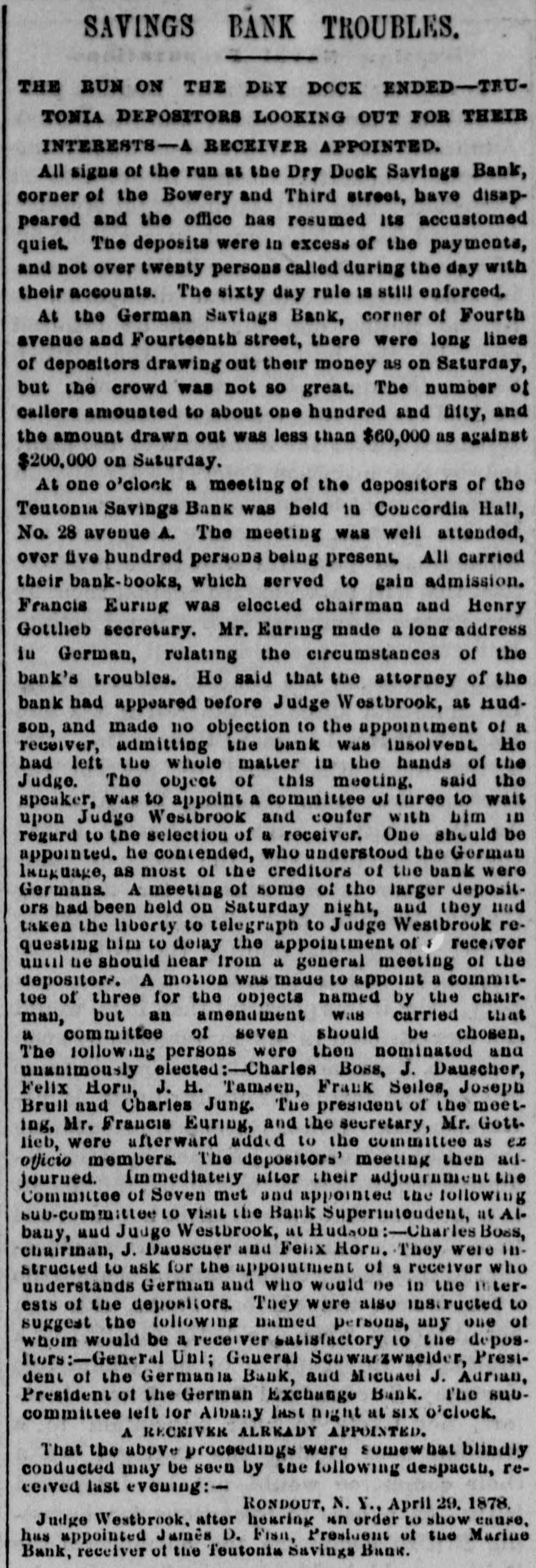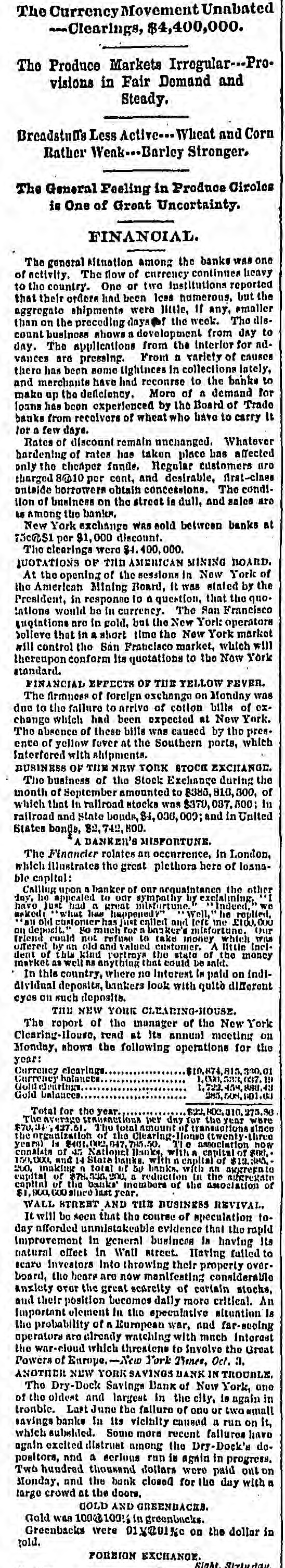 NEW-YORK CITY. Judge Benedict will receive the Grand Jury in the United States Circuit Court at 10 a. m. to-day. There were 120 applicants for naturalization papers in the Supreme Court yesterday. The Central Booksellers' Association will hold their regular meeting at 11 a. m. to-day at the St. Nichola Hotel. The new building of the Dry Dock Savings Bank on the Bowery, was opened for inspection yesterday. Business will be began on Thursday. Since Sept. 30 the city's receipts have amounted to $4,945,181 41: payments, $4,572,022 38; balance on hand Oct. 9, $5,914,322 41. An alarm of fire was caused last evening by smoke issuing from the new heaters of the Hall of Records. There was no damage. Maurice Dunn of No. 16 Hamilton-st. was caught yesterday between the bridge of the Cortlandt Street Ferry and the ferry and was very severely injured. Leonard Waldo of Columbia College Observatory last evening read a paper before the Academy of Sciences or The methods of furnishing Standard Public Time. An evidence of the advance of American manu factures was the shipment on Saturday of a silver desser service, made upon the order of Count Napesa, for the Em press of Austria, by Tiffany & Co. Joseph L. Perley, President of the Board of Fire Commissioners. said yesterday that there wasno truth what ever in the rumors that the Mayor had requested any of the Fire Commissioners to resign. Edward M. Clift of No. 352 West Forty-sixth-st. Maria Andrews of No. 251 Stanton-st., and John Goodyear o No. 256 West Twenty ninth-st., were all badly injured by being run over in the streets yesterday. The State prize, won by the 7th Regiment at Creedmoor this season, is on exhibition at Tiffany's. The trophy is: fac simile of the dome and surmounting figure the Capitol at Washington, and is valued at $300. The furniture and appointments of the Park Hos pital will be removed to Bellevue Hospital this week, and this down town station closed. Application is to be made for the use of the vacant Beekman st. Station for hospital purposes. There was a meeting last evening in the Universal ist Hall, at Thirty third-st. and Sixth-ave., consider the best remedy for present National wrongs." Father Beesor and Col. Meachem presented their views. Prof. Joseph W. Howe delivered a lecture at the opening of the School for Nurses on Aug. 10 upon the care o surgical patients and the best means of saving life in certain cases. This lecture has now been printed in a pamphiet of pages. Coroners' juries yesterday gave verdicts of acci dental death in the cases of Morris Schelhorn, who was rur over on the Belt Railroad on Sept. 23 and of J. Henry Brown who was drowned by falling into the North River irom the barge J.E. Parker. An agreement is in circulation among the jeweler and watchmakers of this city pledging all who sign to close their stores not later than 8p. m., excepting on Saturday and during December. The signatures of 4.) or 50 firms have al ready been obtained. Of eight Members of the Produce Exchange,' whose names are paraded in Philadelphia dispatch as dis tinguished representatives on a tour of inspection of the Cen tennial didings, only one has anything to do with the Produce Exchange, and he a non resident. Leper Kottchofski filed yesterday an assignment for the benefit of creditors to Emil M. Michaelis; John Ashe and Alfred Redlish filed a similar assignment to Berthold Cort land and Harris Rothstein made an assignment to Abrahan Shenfield. Rothstein liabilities are stated at $37,211 94. At a meeting of the Society of Practical Engineer ing. held yesterday at No. 212 Broadway, to discuss means o reforming the Patent laws. the President was directed to pre sent memorials to Congress, at their next session, for certain beneficial modifications of the statute and for precise defini tions of certain vague terms in use in the Patent Office. William L. Lanier, Vice-President of the Alabama Central Railroad Company, was in $300 bail at the ash ington Place Police Coart yesterday for carrying a swor cane He was arrested on complaint of Richard M. Rooertson No. 25 East Nineteenth-st., who charged Mr. Lanier with having attacked him with the cane. Mayor Wickham yesterday appointed Gen. Gil more, Gen. Newton, and William E. Worthen a committee to examine the condition of the sea wall at the foot of Canal an Leroy sts. This Committee, which will report to the Mayor was appointed by request of the Dock Department It wil begin its labors at once, and probably complete them in a weel or ten days. The Inman steamer City of Berlin has gained surpassing triumph, having just accomplished the swiftes passage ever made across the Atlantic either way. She lef Sandy Hook at a. m. on Oct. 2 and arrived at Queenstow 5:10 a. 111. on Oct. 10, requiring only days, 10 hours, 48 min utes' actual time for the trip. There are ordered for the present month the fol military inspections at Tompkins square Oct. 18, 70 Regiment; Oct. 19, 8th Regiment Oct. 21, 9th Regiment Oct. 22, 55th Regiment Oct. 25, 84th Regiment: Oct. 26. St Regiment; Oct. 27th. 96th Regiment Oct. 28, 11th Regi ment. Gen. Woodward is expected to be present at most 0 these inspections. The Sixpenny Savings Bank, which for 22 year has occupied rooms in Clinton Hall, has removed to new quar ters at Broadway and Astor-place. This was the bank t receive very small deposits, and it has done a very lurge busi ness, having now more than 33,000 open accounts. Its theor is that the determination to save, and not the amount, makes good depositor. It was amusing last evening to watch the anties o pedestriaus in Park-row, vainly endeavoring to avoid being struck by a plank which a laborer carried on his shoulder. A1 imposing battalion of infortunates, whose hats had beer knocked or who had been toppled down cellar ways doubled up by a thrust in the stomach meditated venge as the uninoved man and his plank vanished in the dis tance. The principal German singing societies of New York, the Liederkranz, 