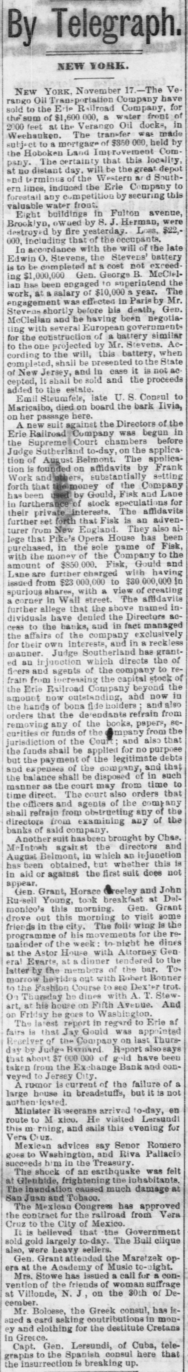 NESBOROUGH, TENNESSEE, THURSDAY, OCTOBER 7, 1869. FAR FROM HOME. Thursday sold out his long gold and the rostrum, being overexcited loser by the transactions of the on the market. This fact beNotes of a Trip the Pacific SI o had made default firm perpetrated an known to the bull combination on Traveling Experience of D contracts, AccordOUTRAGEOUS ASSAULT UPON THE evening, and they resolved to gates to the Grand Lodge I. MIRAL. ganization the PresiF. at San Francisco. The author of this violent demonstrati said operator for his audacity. in the gold which indebted toa frind for the (day morning they successfully was said to be an Englishman, who iver, and for an hour of gold at once to 150. an ure of "seeing through" a batch of ner was heard as the severely by the operations of per cent as compared with letters from a Tennessee delegate red down. The debull cliqne. He approached the p quotations. United States Grand Lodge I. O. O. Admiral of the Sound fleet. and before held liable of course, assigned is the fact that session during the past few days latter could begin to make an impresa erences. Francisco. These letters were not in the rise of gold offered untenances, most of upon his exasperated hearers, dashed ten for publication, but embrace quotations for such large fist in the face of the portly Managing unprepossessing expoints of interest to members of the as to frighten the bears rector of the Erie. Of course there the crowd. They because the movement ternity and the general reader. an immense sensation, and a po ealers, and men of reason we should be pleased. Isappear desperate. and they professions drawn speedily captured the belligerent space permit, to reproduce them purchasing wildly. ge excitement, and him off to the lock-up. What Not being able to do so, we shall ha EARS DEFIANT. disposition of the offender was / nities to profit by it. be content with a portion of the dot a prominent banking picked. of course, haps our police reporters may they contain millions of gold at 60. and kleg fraternity were nothing further at this AT AND NFAR LARAMIE. ent. margins, this being that Mr. Fisk retired to endly suggestions of ing to the rules of the ilt. The delegates and their traveling THE STATUS OF was The marginswhen callpanions were at Laramie on the The brokerage firm THE SMASH. promptly responded to they got a substantial Broad street, have observers were defact became at once cents per caput. Members of ed as the leading at this downfall of From this time bade then welcome to their R Gould & Martin. Ea cursor of a similar of gold declined to sell became unable to Mountain city, and did much to exchange. They sav irators, preferring to disthem feel that they were indeed An excited crowd gatheret rators in the gold to other concerns known friends and brothers. The delegates f the Stock Board pretty soon, under the lead bull ring. ited the lodge room of the order of man, a mob of German effected their credit of the extremely high others, entered the place place, and were agreeably surprised onjecture. As soon to-day of gold-ranging completeness and comfort. The adjustment, and if need be struck many now there contains 17 cent., or 365 per cent. per rove far otherwise. persons at the door, surprised the bear element. zealous Odd Fellows. They were to preserve order, denied the old. in conjunction not understand the movement with three rousing cheers, to which ust which these exsion. An attempt was made the hotel last responded three more almost when Mr. Henry DA engendered, affect loaned at about by several friends, urities, Leaving Laramie at o'clock in on this afternoon. they soon passed into the impression was lent demonstration by stating bulls, who, if unable take b country. For some distance violence would be met by force that to-day the to-day, will compel of the road could be seen wide-spread than body might get shot. Thus th parties to be saddled with could tell who the concern of sage. 10 king as perfect but all through the 160, equivalent to the sale if result of regular nding disaster at that price. anxious riduals went in night they got glimpse INFLUENCE. THE BULLS AT BAY. of the firm. to know hat chance aramie river. and journeyed for nd various theories large amounts of gold which was of getting their dues from them. view of that beautiful h the Government itated on the market at the time and To of these of the pure atmosphere g its inevitable intive r cent. was claimed. caused politely replied that nobody knew of the party complained iture of the unholy ulls pause in their operations, as tired. So the found the what they could do. amblers, Some parcould not understand where they representative the SUN smooth as they used and ly informed and P. M. in from, and also at this time a report jeets of interests rnment had loaned that the Government of the leading bankers in the They passed many millions to This had the further bluffs and deep ravines, and ading bankers, takjuraly ze the combination of the bulls how smooth road could be Heathand his partners closet ufficient amounts price suddenly from 166 to 133. back office aside from the main rough country. Sunday HOME. with a janitor the door. damp cold day, and plies which the little clerk caught every made applicants found overcoats necessary to bulls until they angry tumult. Ceberus replied with a lie, In addition to their regular mach for the fight. it at "clock, in they are quite "square" for a aquestion where he was going. he Our friend the banker. who could try, the passengers are abundantly blessed if an't going home to lent them half dozen millions stock men crushed plied with California I never had such day them through. after which are to be delicions witness the death a million of private All comfortable the in rear Heath. STERLING DEALERS IN COIN. Heath. be AT ECHO CANNON the genuine dealers in the morning, there million people in the When the train reached this from all bargains. Morhalt made, that religi