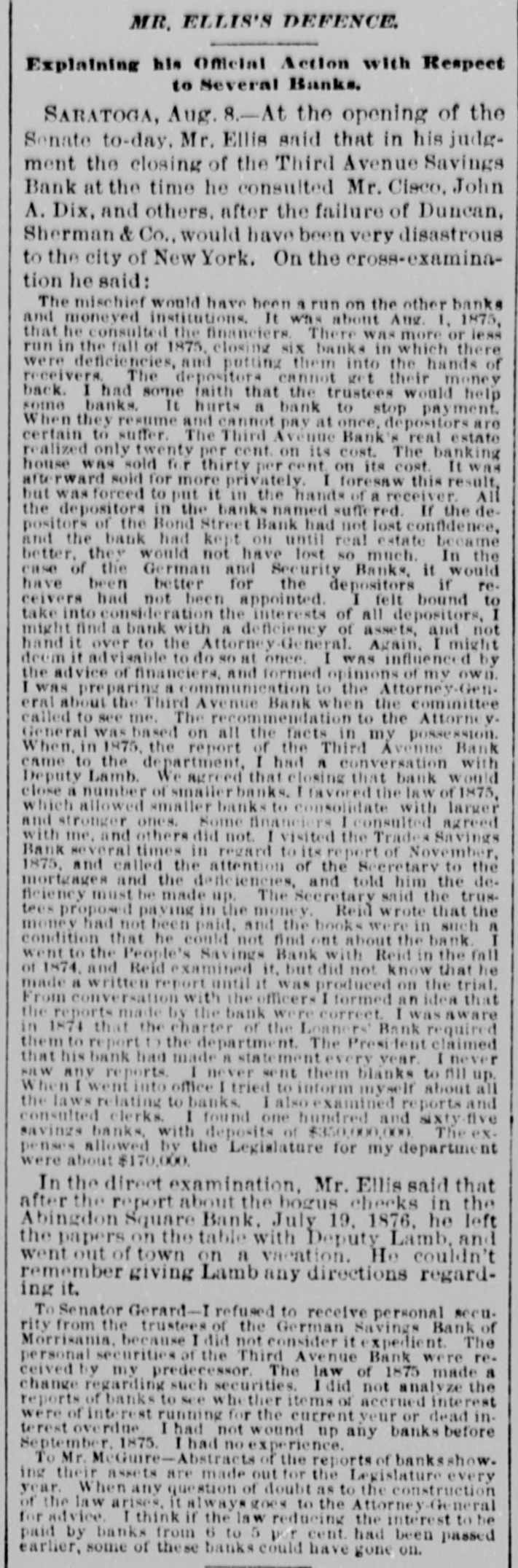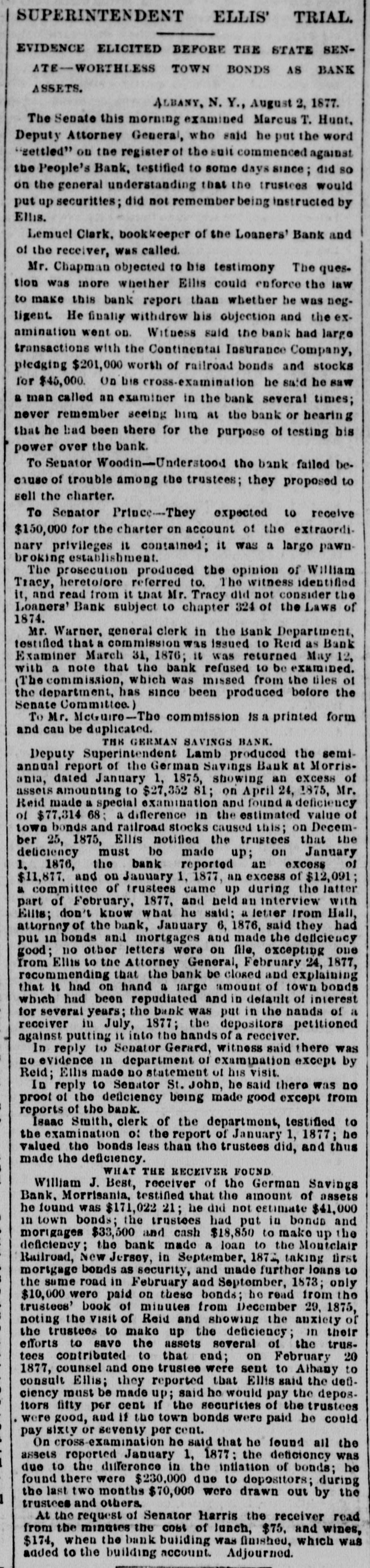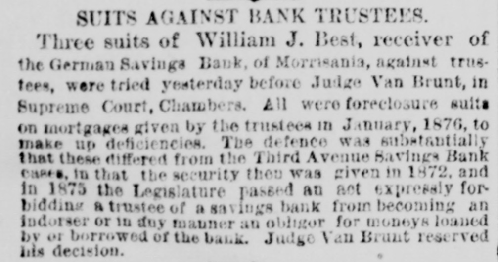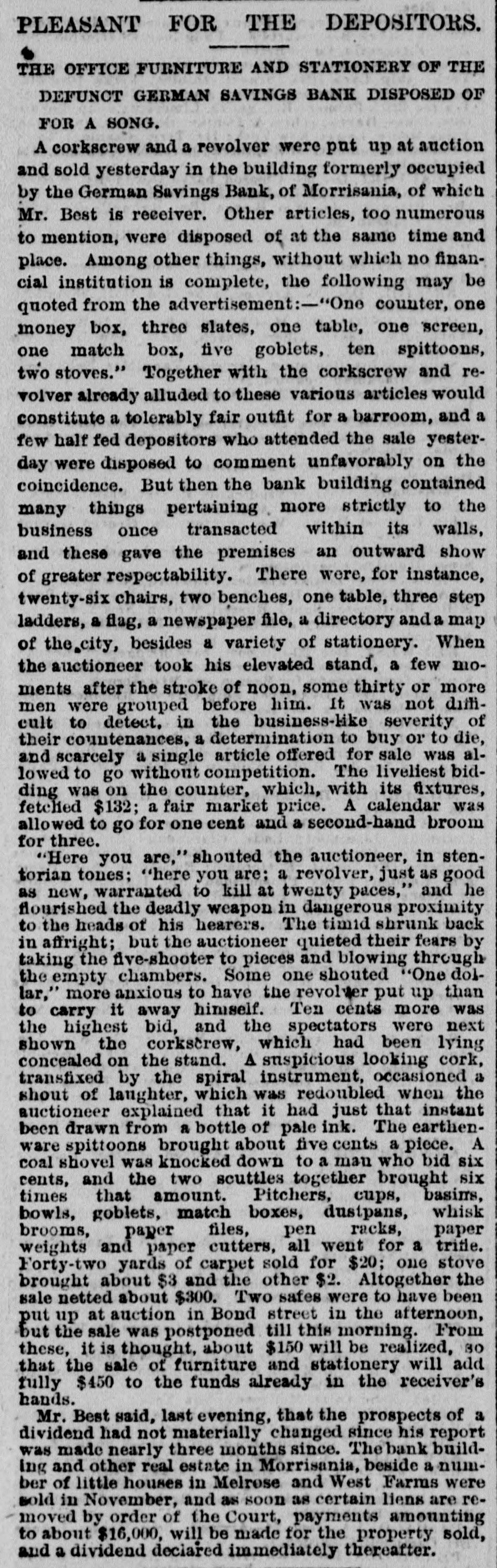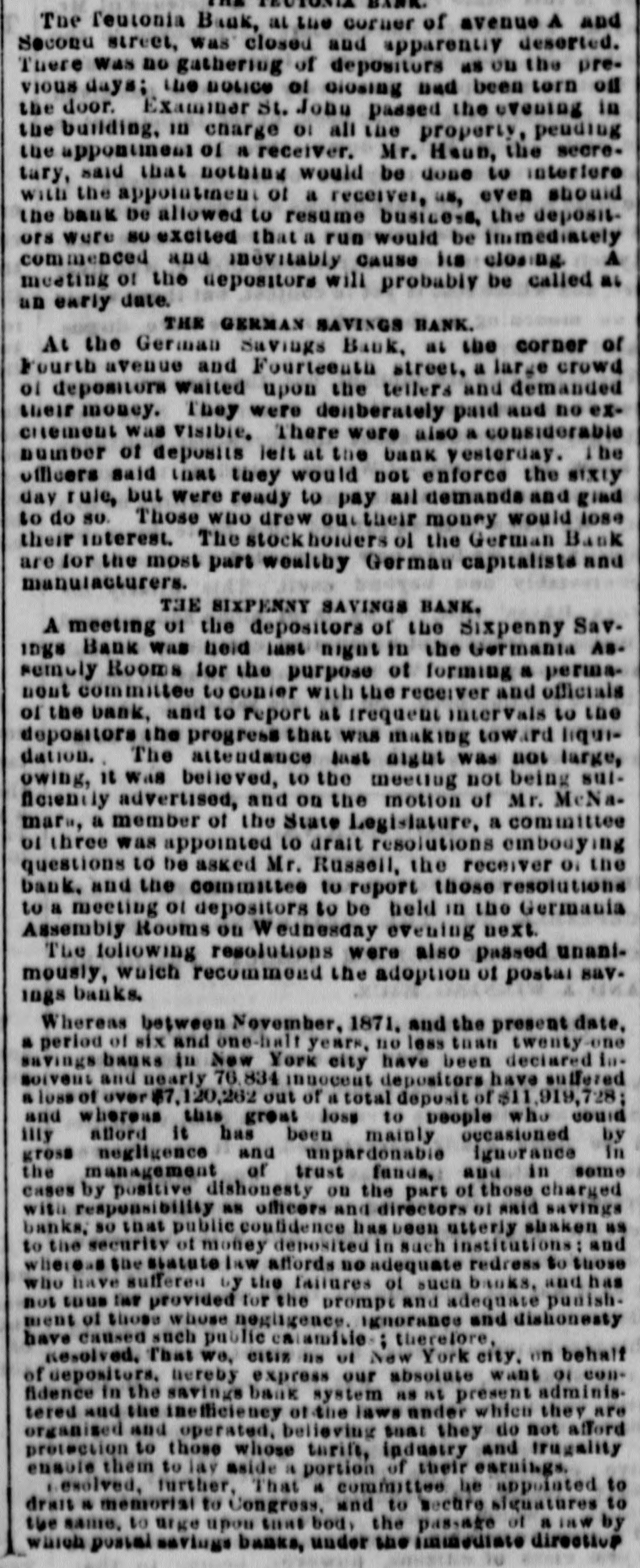 NEW-YORK CITY. Amber ornaments are coming into fashion. The .. gentle Spring" organ has but one stop-at night. Pastoral scenes painted on ivory fans are new and pretty. Goats are fashionable pets because they are fond of bunting. Oixdized silver cloak-clasps are all the rage for dolmans this Spring. Conductors complain of the large numbers of pewter five-cent pieces in circulation. Wild strawberries were sold in market yesterday. They are much cheaper than the cultivated varieties. Stealing lunch from children while on their way to school is the latest form of meanness practiced by tramps. The steamship Frisia, which sailed yesterday, carried foreign mail consisting of 29,594 letters and 67 bags of papers. It may be suggested to suburban farmers that the way to cure potato bugs is to discover just what is the matter with them. The wards of city hospitals are now made attractive by the bouquets placed there by members of the Flower Mission A harp made of forget-me-nots, with gold tinsel strings, was a design for souveair to all artist in music, made by a Broadway florist yesterday. People are beginning to owe for a lodge in some vast wilderness, relieved by the thought that the proprietor does not require pay in advance. A enrious feature of a Fourteenth-st. oyster house is a miniature giant composed entirely of oyster-shells It is the work of a fisherman in Stamford, Conn. The Aldermen's Committee on Streets will meet this afternoon to hear persons interested in having freight cars run by steam on the Belt Railroa with coance ing tracks on the wharves and piera. The steamship Huntsville, which arrived here yesterday, passed a ship on fire in la.itude 349 57' longitad 72 58. The name could not be ascertained The vessel ap peared to have been burning two or three days. By the light of the moon last evening Murrayst., near Broadway, presented a festive appearance. The broad sidewalk furnished a platform, an accordeon all that was required is the way of music, and 15 or 20 couples de spite the heat, danced until a late hour. A paeamatic engine is housed in the stables of the Second Avenue Railroad near Harlem River. It is propelled solely by atmospheric pressure, and can carry at a rapid raté a number of cars It will soon run between Sixty third- st. and the upper end of the Island. A large number of friends were present at the funeral of the Hon. Charles H. Wheelan, ex Member of Assem. biy from the XVIIth District, which took place yesterday at his late residence, No. 126 East Fourth-st. The pall-bearers were John Keily, Thomas J. Creamer, M. C. Gross, S. Mont. gomery, L. J. Leonari, Edward Lambert, Thomas Smith, and L. Hennessy, Mayor Ely, Jackson S. Schultz, and Daniel O'Brien were among the callers. Attorney-General Fairchild sent a representative yesterday to the banking-house of the suspended German Savings Bank in Morrisania. to consult with depositors in re gard to the appointment of a receiver. Each depositor was required to show his pass-book and indicate his preference in riting. There was but little interest manifested Mr. Hoeland, the late cashier said that if harmony should prevail among the creditors of the bank they would get at least 75 cents on the dollar. The police of the Eighth Precinet were informed yesterday that Mary Robertson, age 37, was dy ing at No. 197 South Fifthave, Capt. McDonnell proceeded at once to the place, and found the woman suffering greatly She said that she quarreled on Saturday with Sarah Feeny, who threw her down stairs. The injured woman was taken to the Chambers Street Hospital, and it wasfound that her ribs and arms were broken, and she was much bruised on the head and body. She was afterward removed to Bellevue Hospital, where thought that she will recover. Her assailant has not been arrested. Songs, piano solos and duets, recitations. and other exercises filled up the programme at the anniversary exhibition of the New York Institution for the Blind, last evening, in the presence of a large audience, at Steinway Hall. On the stage were seated the pupils of the school Calisthenic exer elses, performed by a dozen boys and girls, called forth much applause. The recitation in arithmette was also well received. The multiplication of large numbers was performed by the use of a blackboard, on which letters representing figures were placed, and the calculation of intereston a large sum of money for any number of years, months, and days was made with ease and rapidity. The instructor of this class was blind. Geography was also illustrated by means of dissected maps. L. E. Howard, brother of James M. Howard, who committed suicide at the Vanderbilt House on Wednesday morning, saysthat his brother had not been drinking liquor on that day, as reported, and that he W38 temperate man. He believed that the loss of his watch had depressed his brother's spirits 80 greatly that he took his own life. The police had re covered the watch and arrested the pickpockets before the suicide was committed, but Mr. Howard did not know this when he killed himself. Michael Norton, John Harrington, John White, and William White, the men accused of stealing the watch, were yesterday before Justice Fiammer, at the Fitty-seventh Street Police Coart William White was dis charged, the evidence being insufficient to convict,him The others case. were remanded to enable the officers to complete the BROOKLYN. The summing up in the Kingsley & Keeney resrvoir reference suit against the city was postpolied yesterday for one week on account of the absence of the senior counsel for the city. Some of the florists whose shops are near Greenwood are hired by the season to keep crosses of flowers on graves. These crosses are placed dat on the mounds, and are just the length of the graves. Justice Guck yesterday held for the Grand Jury Mary Scott and Nellie Page. two pretty shoplifters, each about 20 years old, who were arrested for stealing a number of valuable articles from Eastern District s