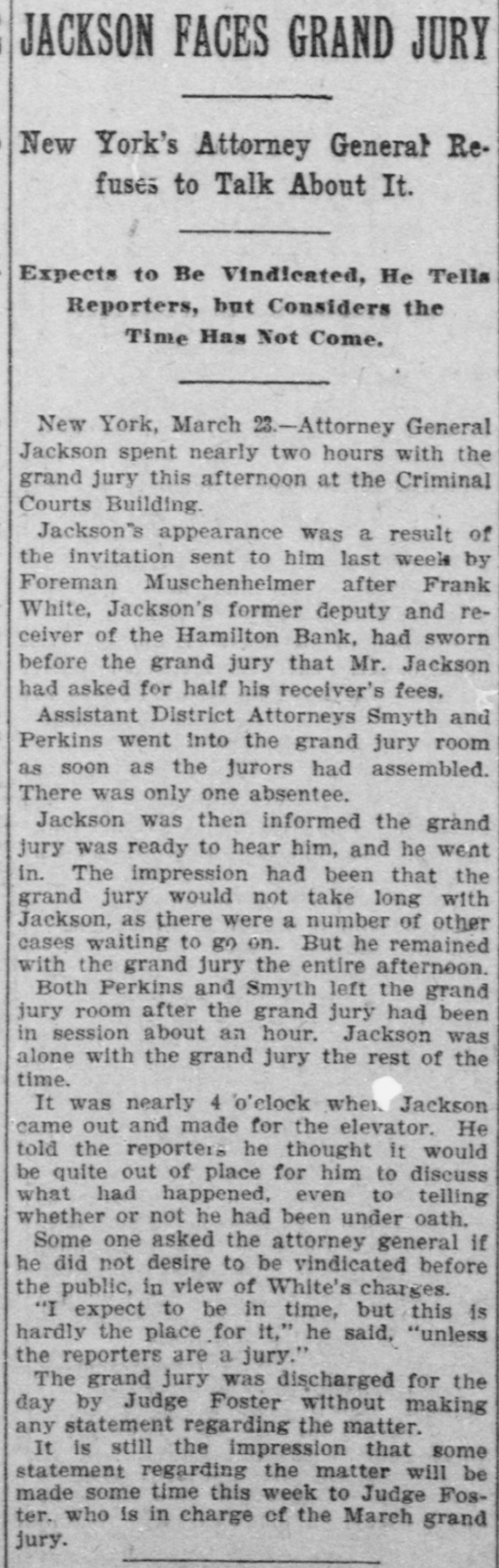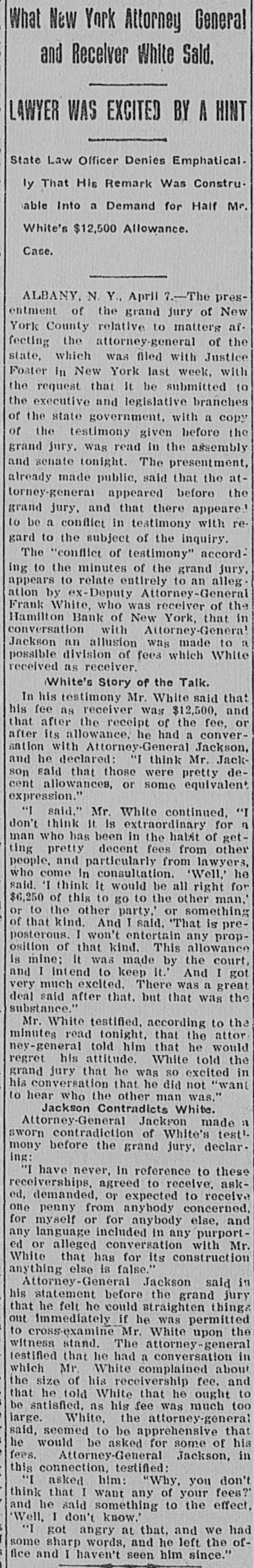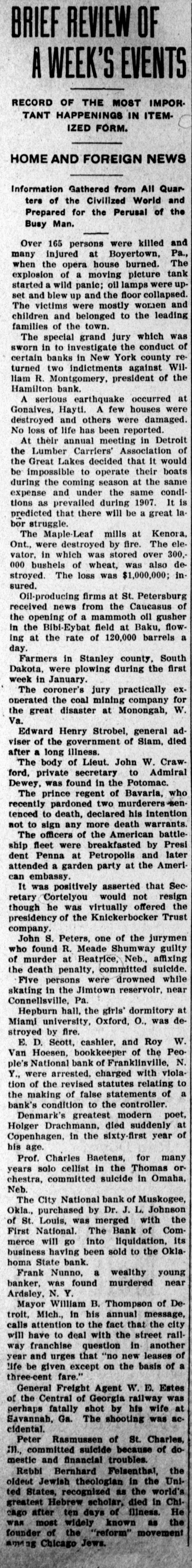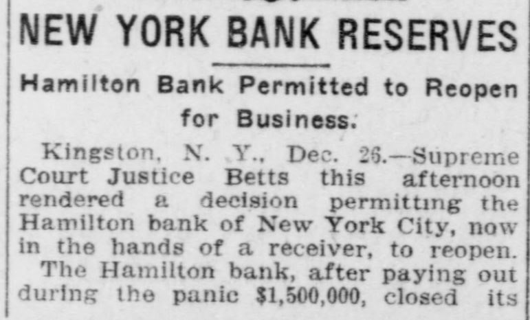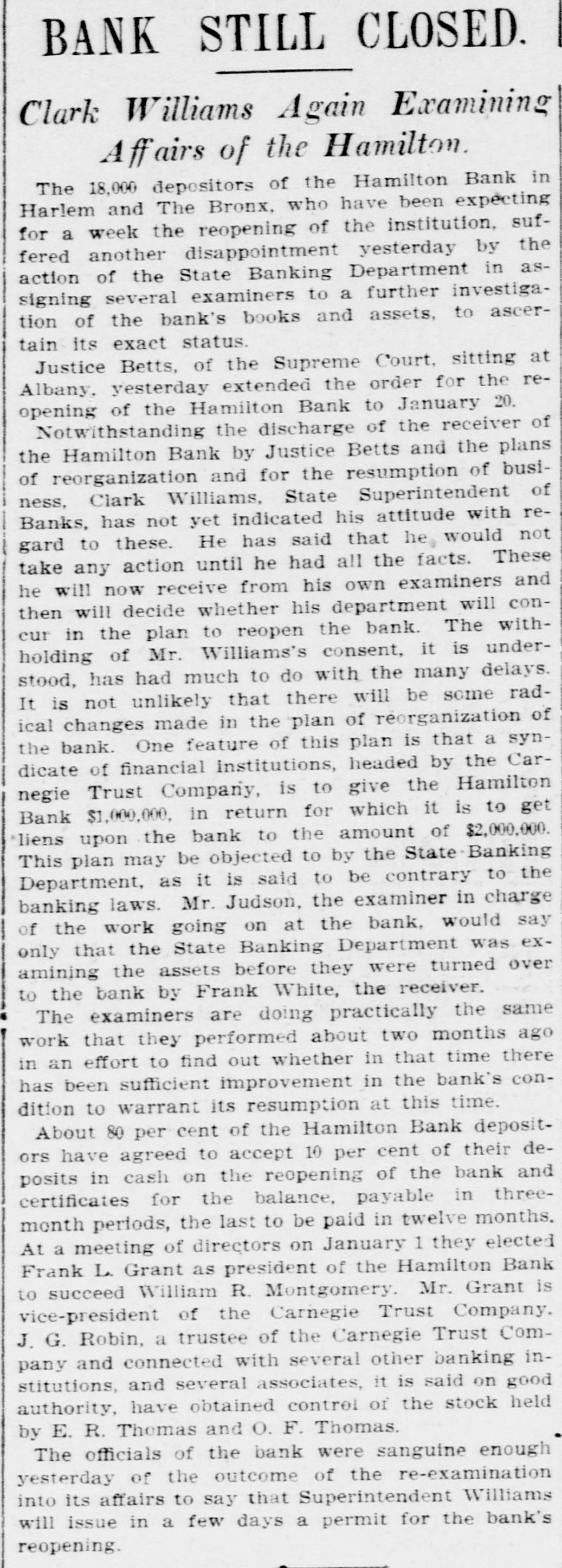 Financial Situation in Nev York Is Declared To Be Satisfactory. CORTELYOU STILL IN THE CIT Trust Company of America Open Doors for Business at Usual Hour. Three Relatively Small Banking stitutions Suspend PaymentPittsburg Stock Exchange Doors Still Closed. New York, Oct. 25.-Development the financial situation are more fa than they have the past week. in vorable time within been Under at an th firm confidence established by the re I sult of a conference between J. James Stillman and Secretar: and the Morgan, Cortelyou encouraging marke state ment of the latter, the stock opened strong. John D. Rockefeller has deposited $10,000,000 with one of the city's old to ex est trust companies be companies used in a tending aid to such trust might require it. The Trust Company of America its doors for business at th A short time president usual opened Oakleigh hour. Thorne, before of the tha in announced to the that the positors stitution, institution waiting was to mee en de solvent and prepared Mr. Thorne that the confident ail tirely claims. institution said had he see wa the worst of Its difficulties, and he ap prehended no further trouble. Three Small Banks Suspend. of small banking relatively The suspension payment Institutions by thre dis in the outlying Harlem without any effect trict situated was whateve down on the general financial situation town. The banks which suspended are th Hamilton bank, a Heinze concern deposits; $3,000,000 with Ward $7,000,000 bank, deposits, the Twelft an the Empire City Savings bank, $3,300, 000 deposits. : At 10:45 J. P. Morgan in reply to "I question as to the situation said: is all right." Stillman, president of the Na bank, the largest tional James City with bank Mr in United States, who was concurred, saying was satisfactory. situation the Morgan, Secretary that "Thing th Cortelyou at 11 o'clock said: look pretty good now. I have ha word of the suspension of the tw Harlem banks, but prefer to make n comment on it. I will remain her some time longer. The rumor that W are short of small bills is unfounded We have $10,000,000 in small denom inations." Pittsburg Exchange Remains Closed Oct. 25.-As was the stock exchange Pittsburg, Pittsburg o'clock remained expected th closed. Shortly before 10 were called who retary members Holman, together announced decided by Sec tha of directors had to for the the suspend board trading believed day. In the wel informed circles It Is ex change will not resume business unt: Monday. The local financial situation is is and is under to if good trol, according shape statements perfect made con bankers. that the tion prominent all say flurry Without has present passe excep I and that the situation at brighter than it has been for a week. Money Sent by Cortelyou. sent by to meet any Cortelyou The $5,000,000 possible Secretar, thi de for currency in making up payrolls This money is now mand week's ceived. large has been in thre an re of the largest banks in Pittsburg, is ready for distribution to any ban in need of it. in the United State appointed circuit Judge court, Ward, E. M. Her and Charles C. Burling receivers inghouse ham P. N. ancillary Given companies and of their the asset West and in the distric The are I' of New properties York. receivers judicial of $20,000. quired to file a joint bond Run on Rhode Island Bank. Providence, R. I., Oct. 25.-Deposi the Union Trust i this thei tors at city began withdrawing company bankin Before the close of numbers paid J. is th money. hours Marsden large Perry president had been of Union Trust company. Mr. Perry i also connected with the Trust Com pany of America, the New York inst tution which for two days has with stood an unusually heavy drain. Egg Shower for a Revivalist