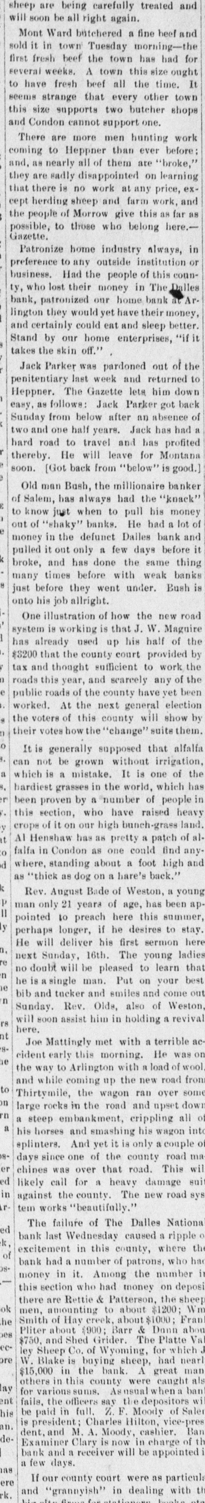 R. D. Stone, of Wasco, was in the city today. Like all other Wascoites that come to The Dalles, Mr. Stone declares that town is the liveliest place in the Inland Empire this year.