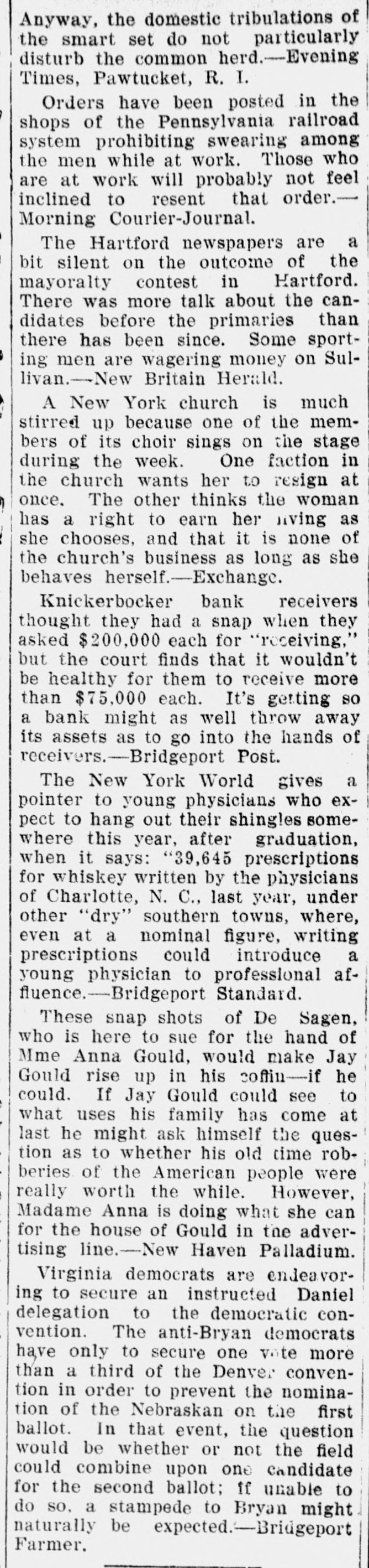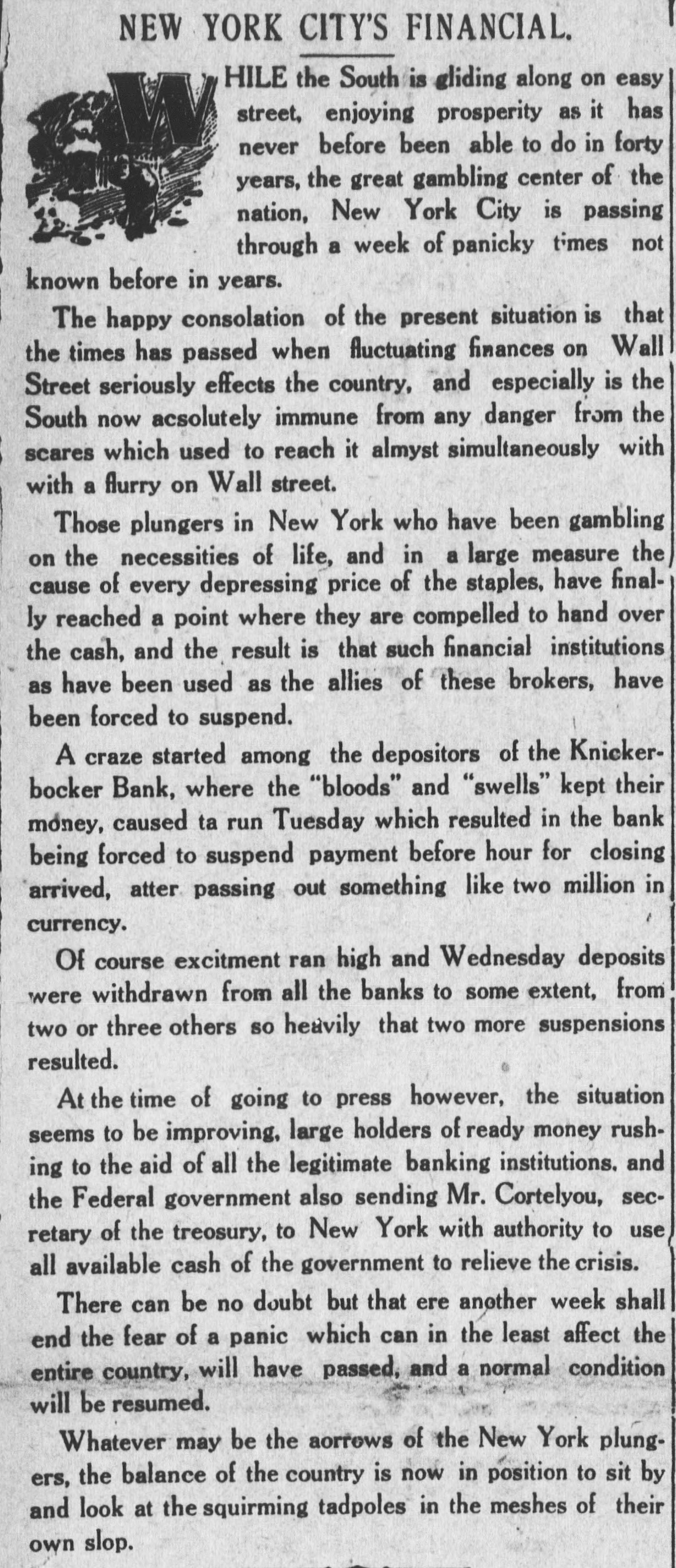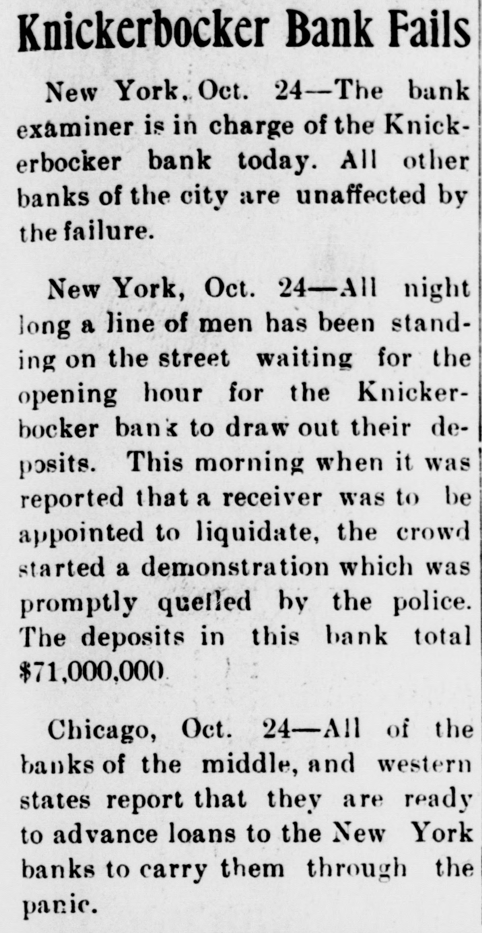 Mergenthaler sold a few shares at 185, a lower level than the stock has reached upon this movement. It is difficult for local holders of Mergenthaler stock to explain the low figures at which it is selling. True, there were rumors some time ago that the company had a large amount of money in the suspended Knickerbocker Bank, and there was at one time some anxiety as to the consequences. This rumor, however, has been authoritatively denied, and the fact is the company did not have a dollar in the suspended bank.
