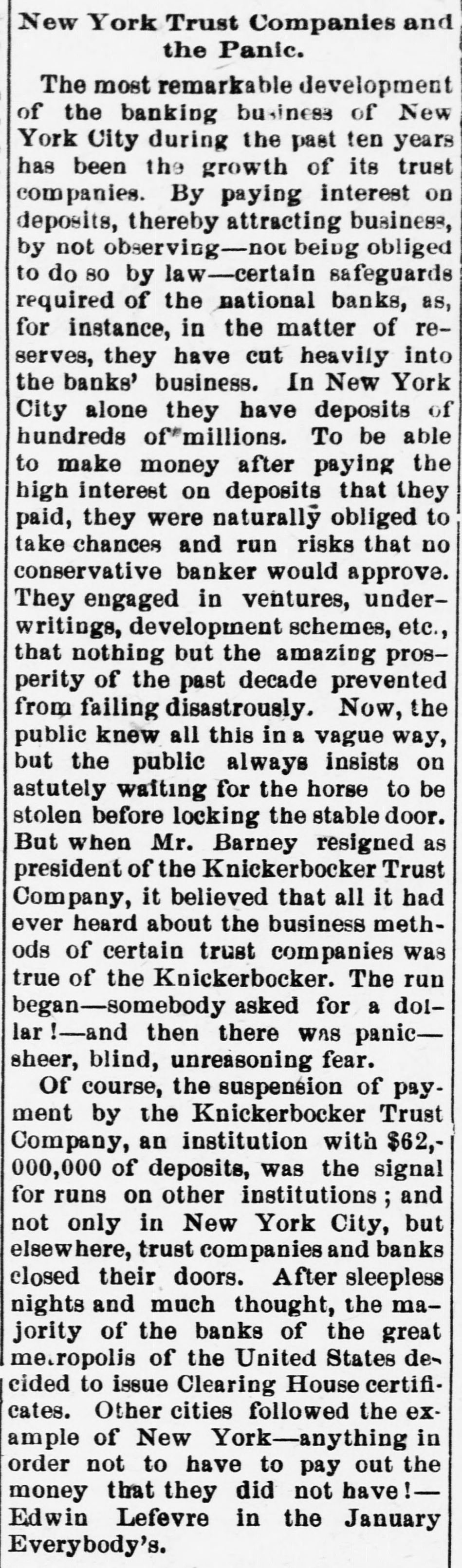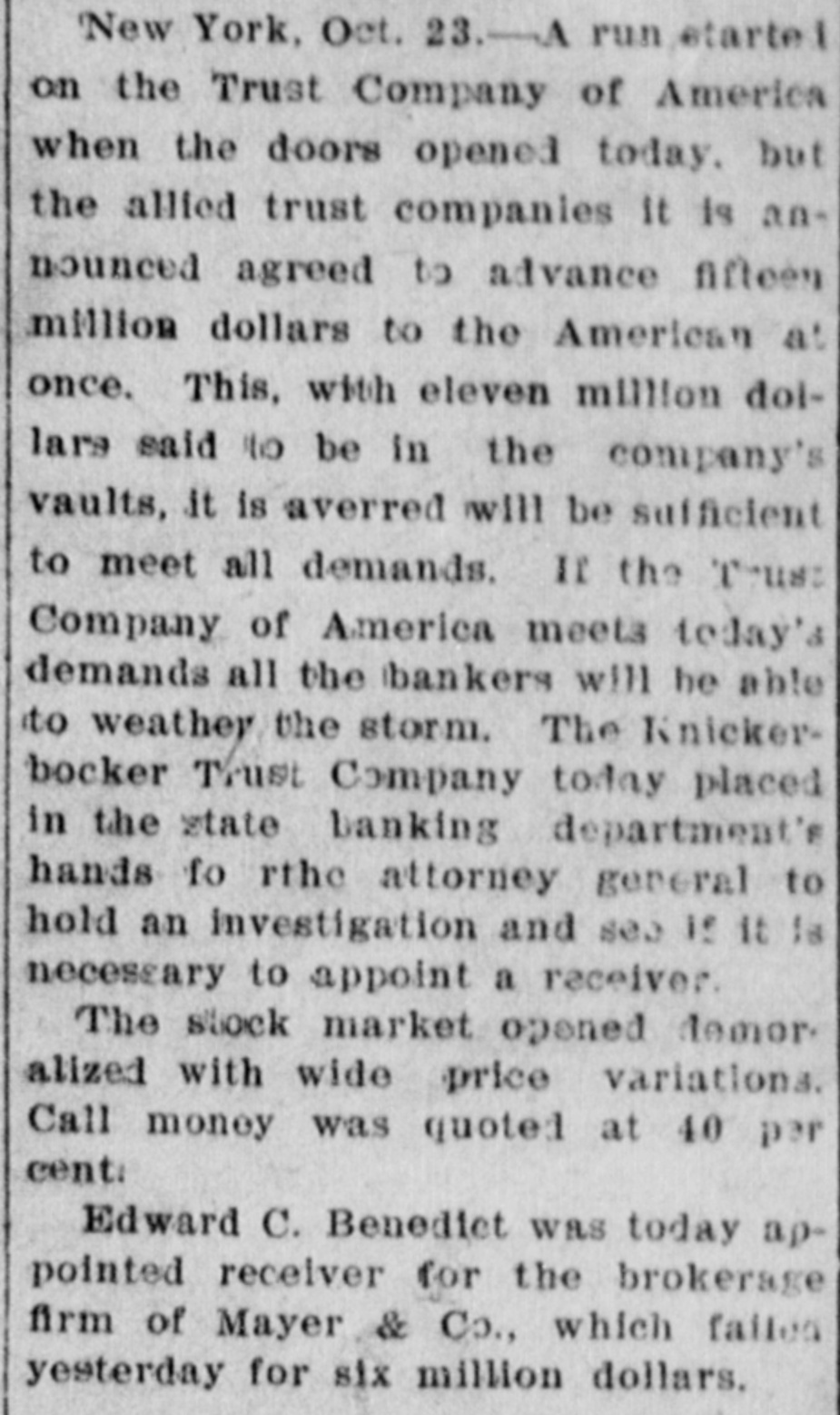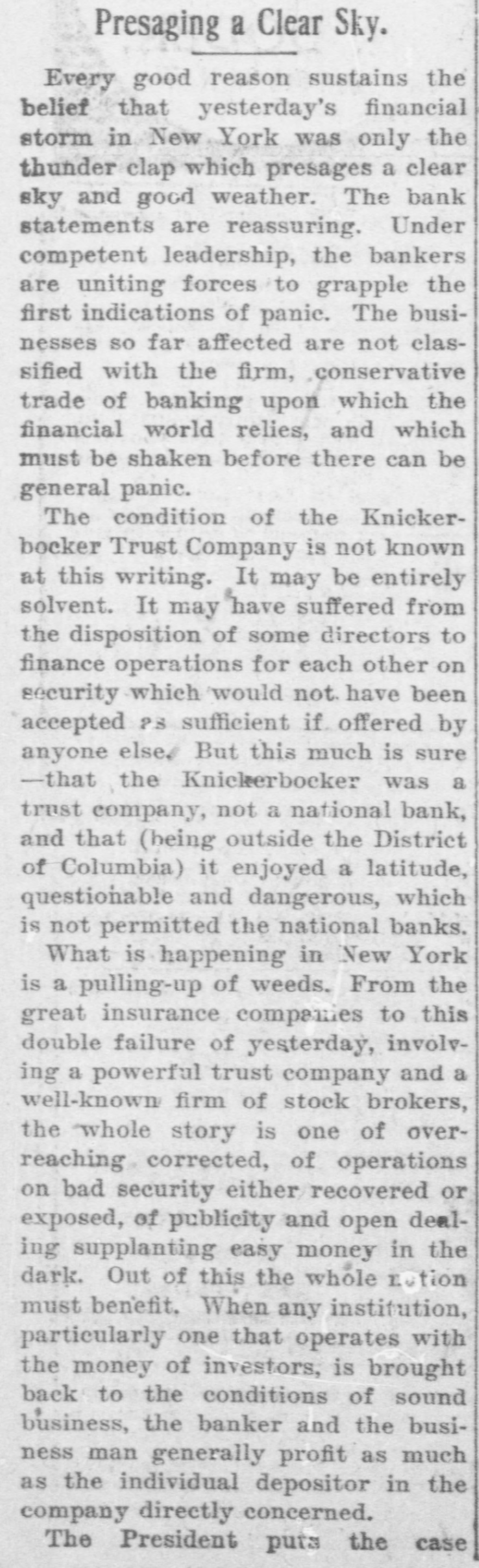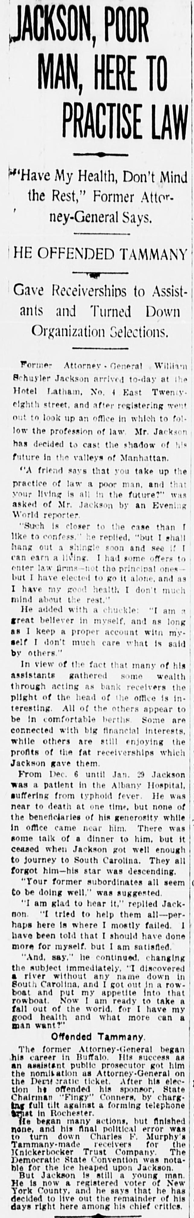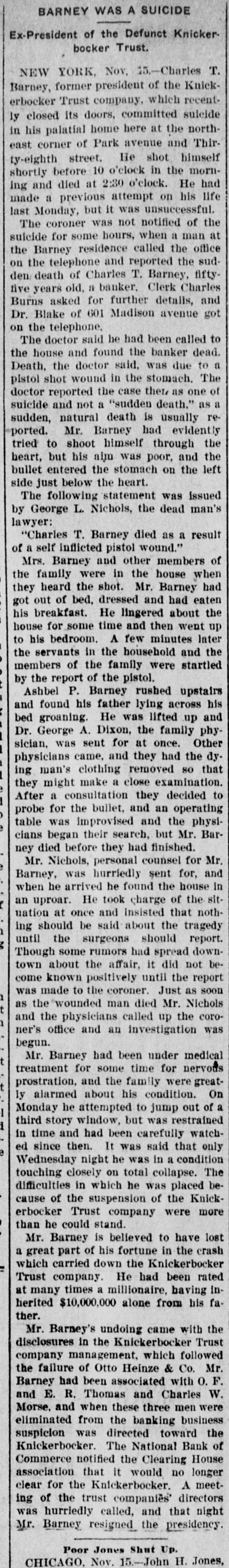 age estimated at $100,000. Charles Aldrich, curator and founder of the state historical department of Iowa, died at Boone, Ia. Congressman Adolph Meyer, for- in merly an assistant adjutant general New the confederate army, died in Orleans. Giuseppe Alla was placed on trial He in the Denver (Col.) criminal court. shot down Father Leo Heinrichs. An effort is being made before conto secure a new apportionment by of gress the recompensation now given the government for the transportation of United States mails by rail. The Point Loma (Cal.) wireless station reported a dispatch for the navy on department from Admiral Evans board his flagship, the Connecticut. Warden Frank Conley of the Deer Lodge (Mont.) state penitentiary was dangerously wounded and his first assistant warden, James Robinson, was killed when three life convicts made a dash for liberty. ultimatum in the case of Maru has been the foreign board at the Japan's Tatsu Chinese presented Peking, to and the board has the matter under consideration. The Tatsu Maru was seized off Macao by Chinese customs cruisers. Gov. Charles E. Hughes was formally indorsed as New York's candidate for president by the Republican state New committee at its meeting in York. The Argentine elections resulted in a complete victory for the existing government. David Waldo, a wealthy horseman throughout the a and who formerly well-known States, owned United was killed near Indepenin a runaway race dence, track, Mo., accident. Colombian Raminez Arbelaez, the died at Lima, Peru. Lumber charge The Union d'affaires, company, over St. Paul, Minn., which will take than seven sawmill plants and more 3,000,000,000 feet of standing timber, the has been granted a charter by Manitoba government. A battle between farmers and three robbers, in which two of the latter were wounded, followed the daring robbery of the post offices at Pedricktown and Bridgeport, N. J. Twenty-six railroad laborers were overcome by gas in the Pennsylvania Md. railroad tunnel at Baltimore, Four died and ten badly affected. The Knickerbocker Trust company, New York, which suspended business at the beginning of the financial panic, resumes business soon. Mme. Anna Gould, who recently sea divorce from her husband, cured Count Boni de Castellane, in married Paris, denied the report that she Prince Helie de Sagan. In court at Waukegan, Ill., a verdict cf $14,000 was returned in libel suit of Attorney Philip W. Mothersill against Overseer W. G. Voliva of Zion City The army auto car, carried a York mesfrom Gen. Grant in New sage to Col. R. H. R. Loughborough, city commandant at Fort Leavenworth, Kan. Germany's first mammoth war ship suclaunched at Wilhelmshaven cessfully was and named Nassau. supreme court at Nashville, saThe law. This law confines the tion upheld the Nashville segrega- terriloons Tenn., of the city to a certain tory. destroyed the boys' dormitory AgriculFire New Mexico School of many at the at Mesilla park, Tex., and sleeping ture students had narrow Appalache escapes. While boating on the skiff pond near Greers, S. C., a three mill carrying ten people capsized and women were drowned. young fire at Nilgata, Japan, the 1,500 In a were totally destroyed, was dishouses trict being swept clean. There some loss J. of Ainsworth, life. commander of the Daniel revenue cutter Wash. Rush, committed suicide at Seattle, were reported throughout was Floods Indiana. The Wabash northern its banks for miles northeast partly of out Lafayette. of South Peru was under water. conKansas Republicans in instructed state to at Topeka, Kan., vention vote for the nomination of Secretary W. H. Taft for president. States Senator Redfield ProcUnited Vermont died in Washington at tor after of a short illness following an tack of grippe. Mount blowers robbed the 40 miles Safe bank, Mount Orab, O., curreneast Orab of Cincinnati, of $3,000 in cy and complete securities. shut-down of the 15,000 coal A in Iowa, worked by mines miners, is threatened. The agreement expires March 31.