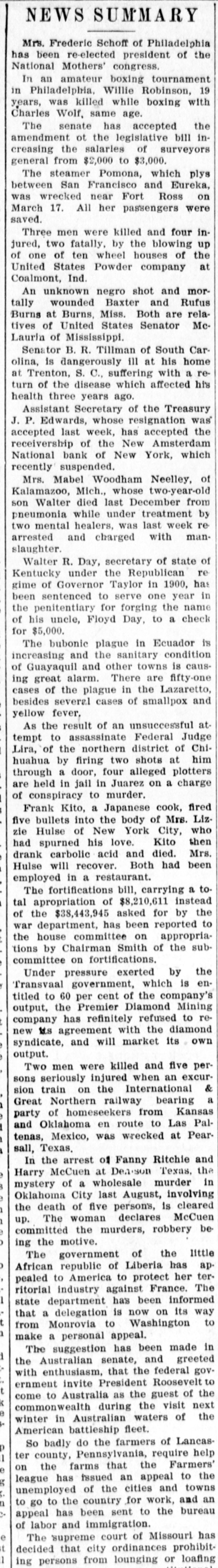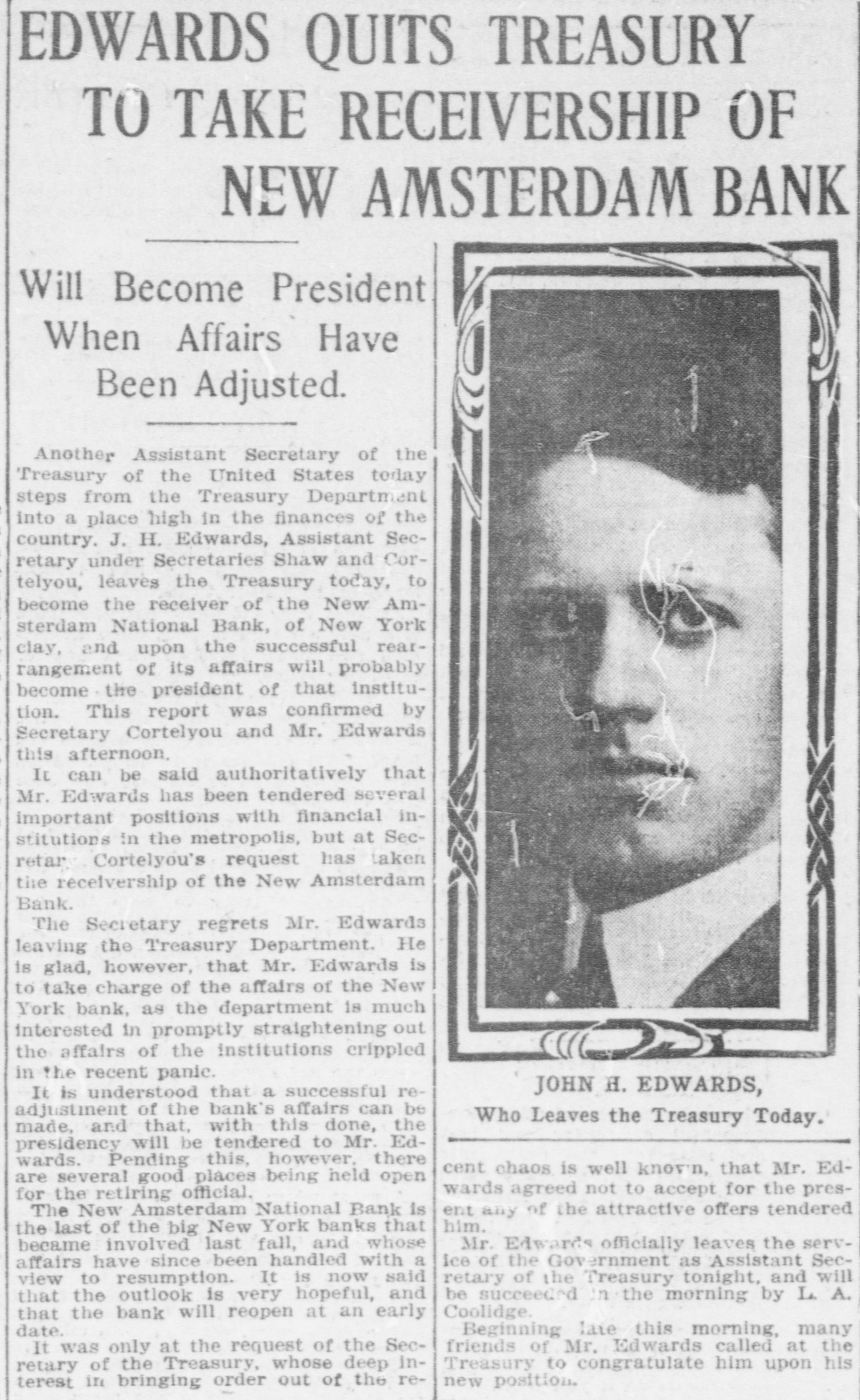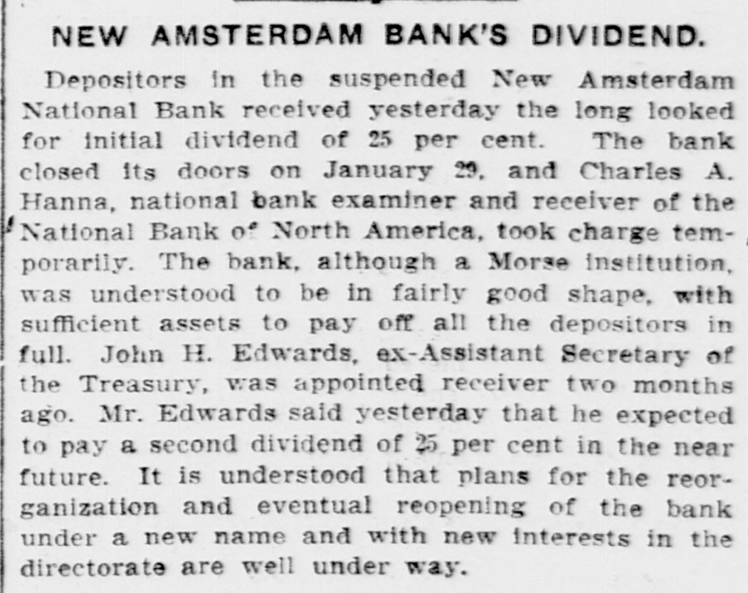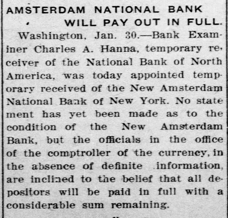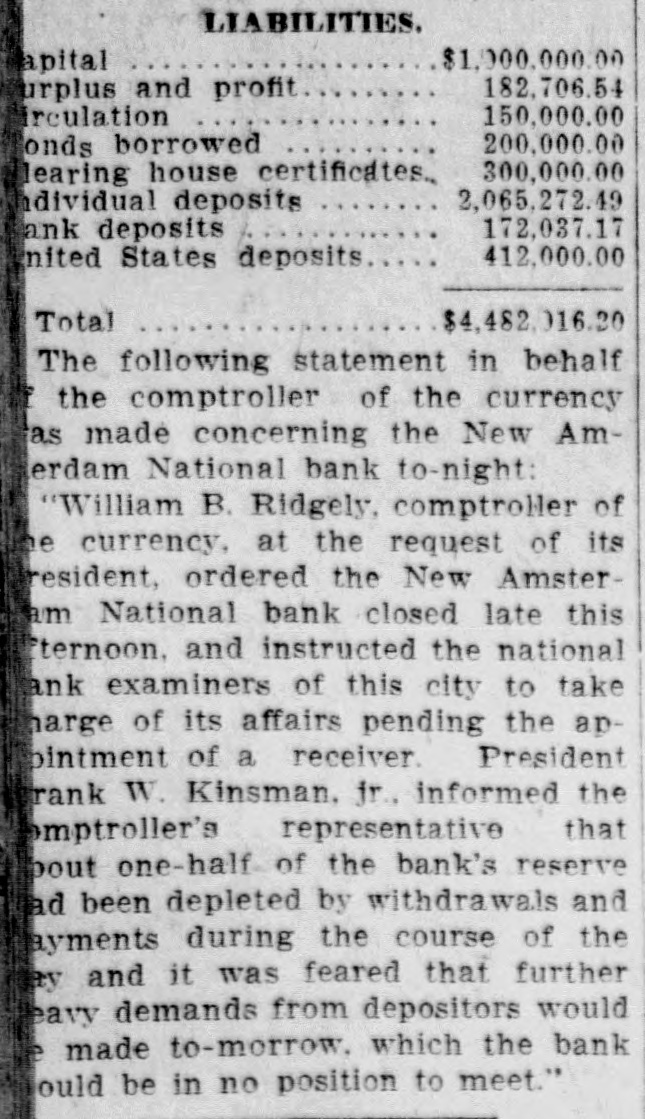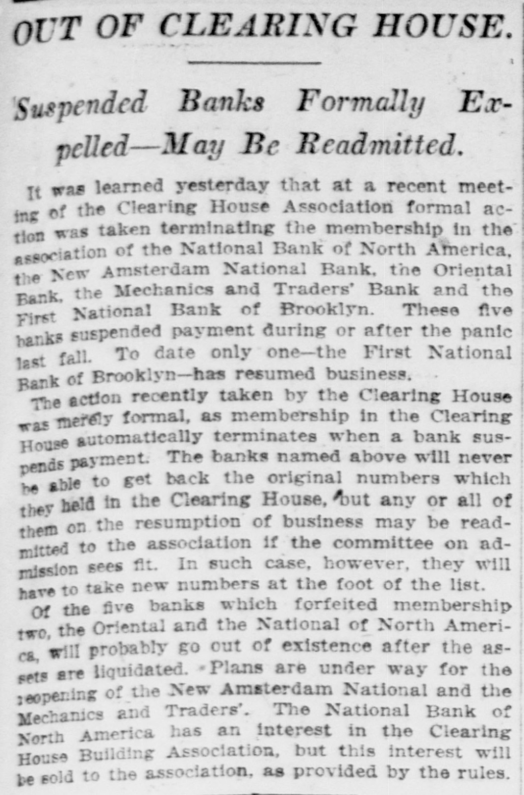 STOCK MARKET TODAY New York Speculators Take More Favorable View of Financial Situation -Associated Banks Assist Mercantile National Third Consecutive Day. New York, Oct. -Encouraged by protective measures adopted over Sunday by the clearing house banks, speculators took a more favorable view of the financial situation this morning. The stock market opened strong and higher. The Mercantile National bank today owed the clearing house on balance, $1900.000, and the National Bank of North America owed $850,000. These sums were unexpectedly large and indicated that heavy withdrawals were being made from these two banks. The sum owed by the Merchants' and Traders' National Bank was $430,000, and that owed by the New Amsterdam National Bank, $200,000. The clearing house committee decided at a meeting to assume responsibility for the Mercantile National Bank's large debt balance. This is the third consecutive day on which the associated banks have gone to the assistance of the Mercantile. The only weak features in the stock situation today were stocks and bonds of the Consolidated Steamship Company. This is the company in which Charles W. Morse is the controlling factor. United States Copper advanced two points. Seth M. Milliken, new president of the Mercantile National Bank, was in charge of the institution's affairs today. He said that the affairs at the bank were progressing satisfactorily. Questioned as to loans made to F. A. Heinze and Charles W. Morse, Milliken said it was expected that they would repay the loans made to them as soon as they were able. Ed O. Eldridge, cashier of the new Amsterdam National Bank, said today that there was no more than the usual business being done this morning in the way of deposits.