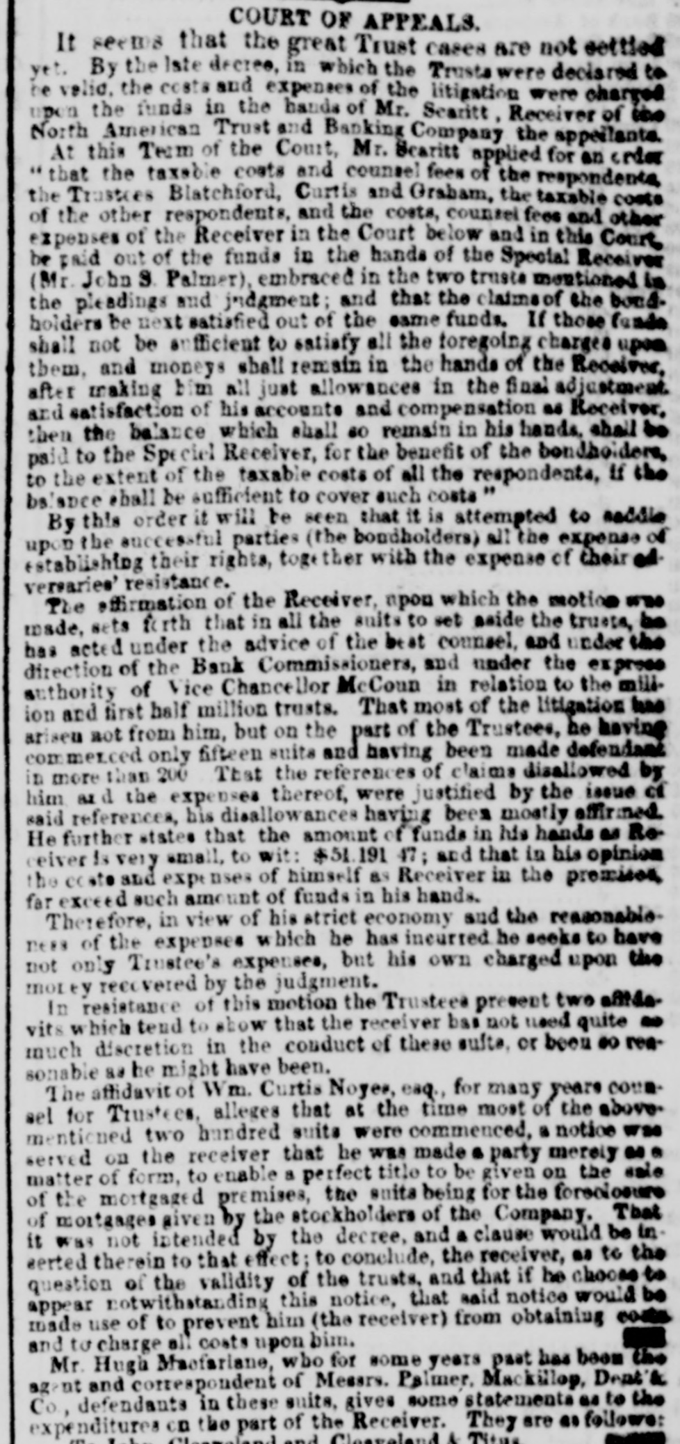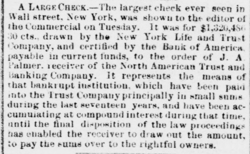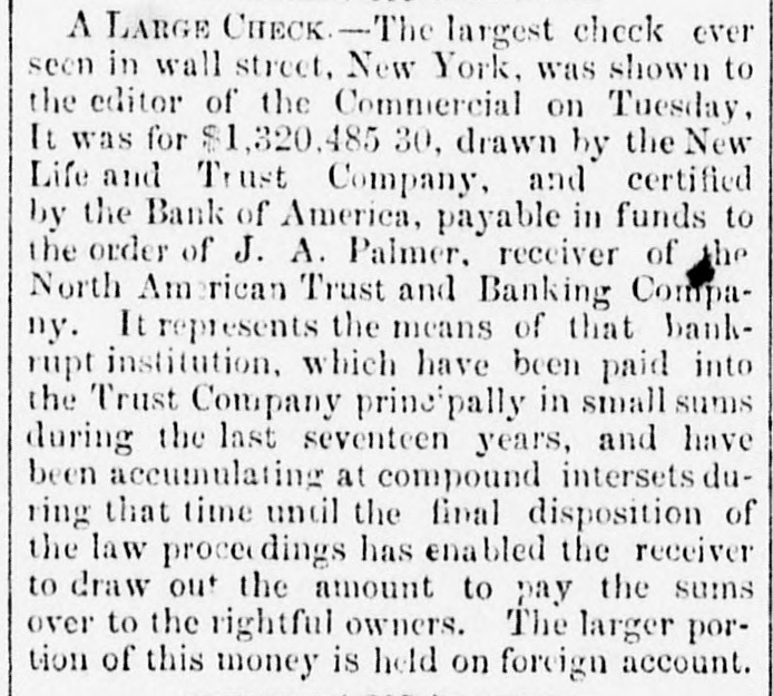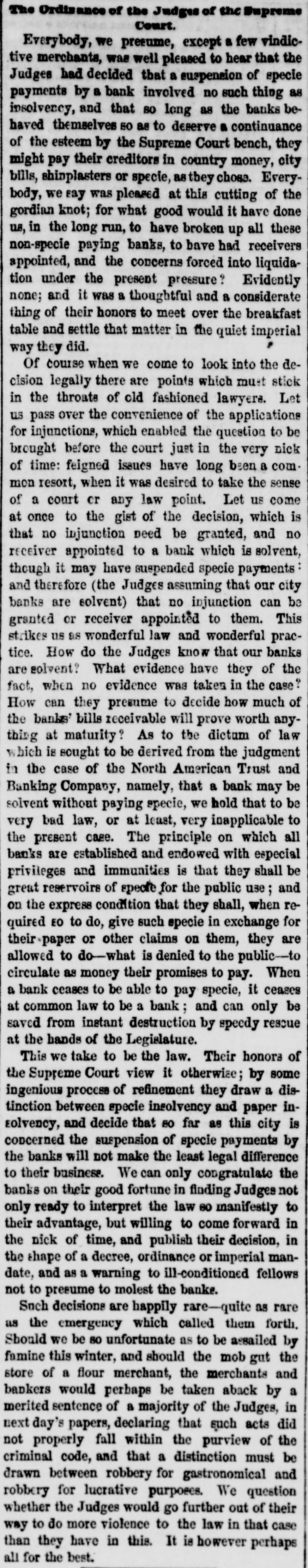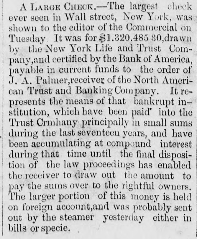 The Indianapolis and Company declared a cash dividend of four per cent out of the earnings of their road for the six months ending the 1st inst., payable on and after the 26th inst., at the office of the Ohio Life Insurance and Trust Company in New York, on all stock registered in the transfer books of the company, in that city, on 25th June, and on all other stock at the office of the company at Indianapolis. The earnings of this company for the past six months were $232,073 10, which is an excess of $55,627 50 over the corresponding period last year. The anthracite coal tonnage, as was expected, in consequence of no work on the 4th, is comparatively light, the whole tonnage of the three principal lines being but 98,188 tons, making the tonnage for the year 2,065,234 tons. Of the week's tonnage we notice that the Lehigh Navigation Company brought down 35,583 tons; and for the season, 414,140 tons. The Schuylkill canal reports 33,562 tops for the week, and for the season, 463,044 tons, against 474,340 tons to the same time last year. The Reading Railroad Company's report shows a very material falling off. The tonnage of the week is only 29,048 tons, making the tonnage of the year but 1,088,050 tons, against 1,195,516 tons. The coal trade is unusually dull, and large amounts are accumulating at tide water. So large is the supply at Richmond that it has been suggested, as the part of prudence, to stop sending forward coal by the road for a fortnight, until the demand reduces the supply, and prices thus be maintained. We hardly believe this will be done. The receipts by the Morris Canal Company, for the week and year, to Saturday last, compared with the corres. ponding time last year, is as follows:$100.704 98 Total to June 30, 1855 11,397 77 Week ending July 7, 1855 $112,102 75 $99,163 70 Total to June 28, 1856 9,795 77 Week ending July 5, 1856 108,964 47 $3,138 28 Decrease, 1866 We have received the opinion of Judge Selden, of the Court of Appeals, in the case of Tracy vs. Talmage, one of the numerous suits in which the North American Trust and Banking Company-David Leavitt, receiver-is either plaintiff or defendant. The speculators in the shares Lave. through the receiver, been untiring in their exertions to defeat the creditors, but they have a stumbling block'in their way in the decision of the Court of Ap. peals. It is now very clear that whatever assets there may be will go to the creditors and not to the speculators: and this is a decision no honest man will regret. It is not likely that litigation is ended-that would be depriving counsel of the rich harvest they have been reap. ing for some fifteen years. A statement of the amount paid for law expenses in attempting to defeat creditors, would be a curiosity, and show how liberal plous men in Wall street can be with other people's money, and all for conscience sake. We have never encouraged speculation in the shares, nor the attempt to deprive creditors of what unsel may leave of the assets. The value of general merchandise exported from this port during the week ending and including Friday, July $1,976,580 11, 1866, was 1,787,546 Specie Total $8,714,126 The importations in the same time were as fol$2,456,204 lows:-General merchandise 2,047,803 Foreign dry goods 4,504,007 $789,881 Excess of imports over exports The following is a comparative statement of the value of exports from the commencement of the year to July 10:1868. Increase. Decrease. 1855.