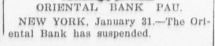 ORIENTAL BANK PAU. NEW YORK, January 31.-The Oriental Bank has suspended