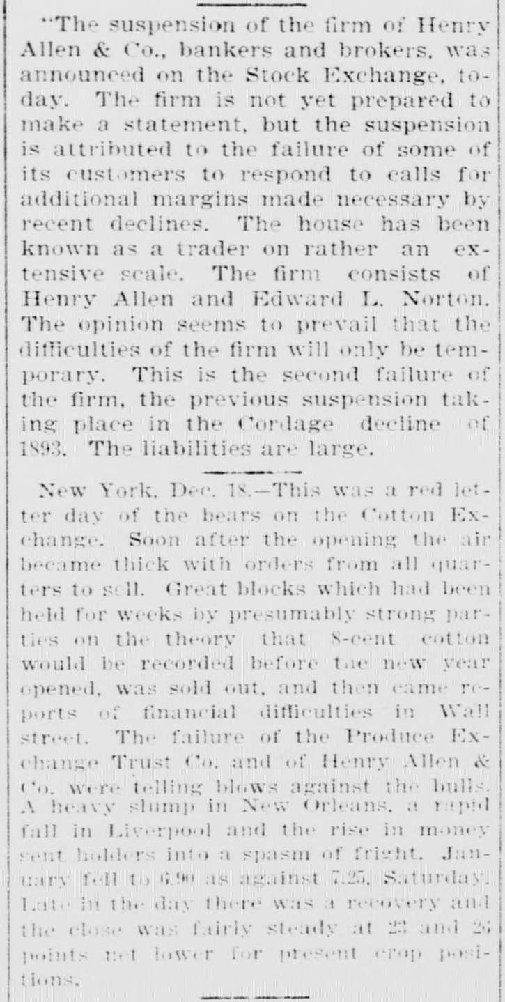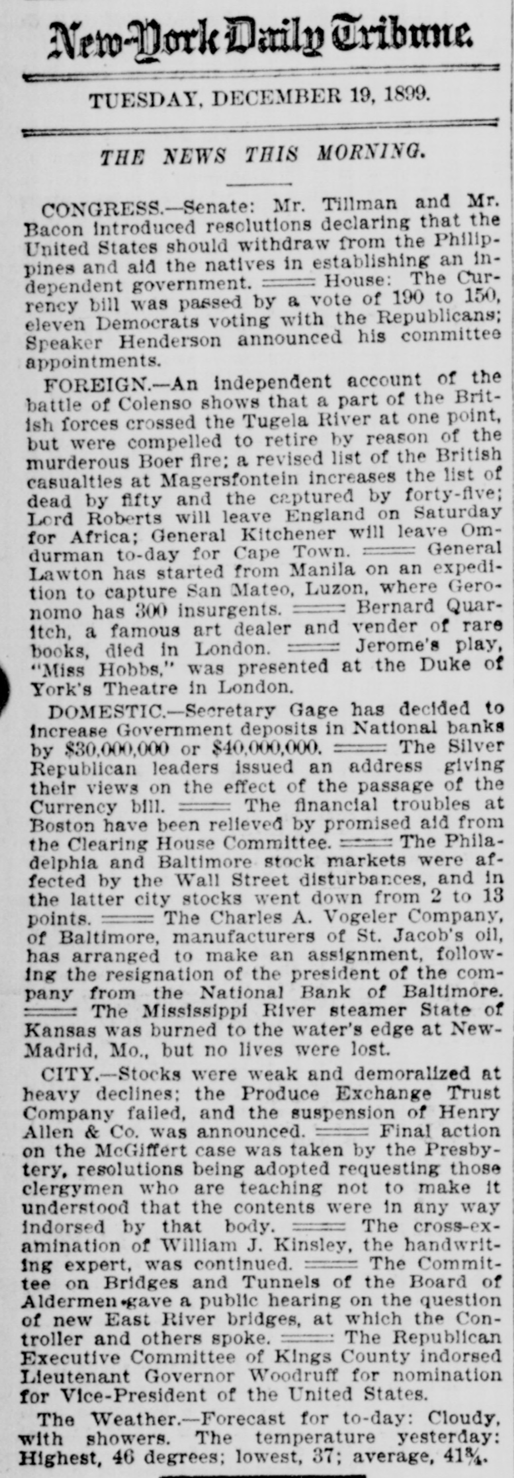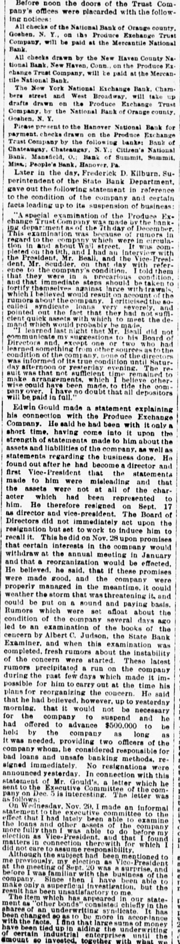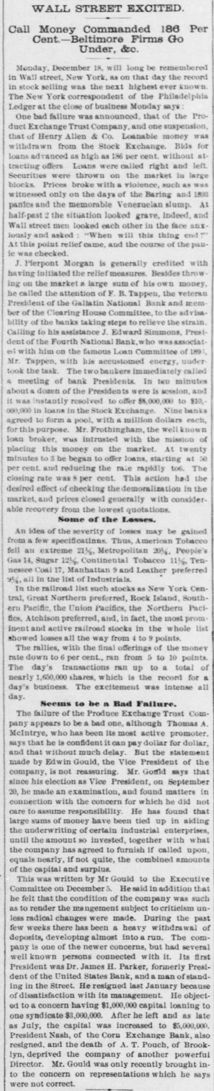 # ON THE BRINK. The government already has over $80,000,000 deposited in national banks, the largest sum for many months, and has left little undone to ease financial conditions in Wall street. The great expansion in bank loans, the heavy decrease in reserves, the high prices at which securities are quoted and the overextended condition of many specu-lators and cliques are responsible for the belief entertained by some of the most ex-perienced observers that the market is in a dangerous position.-Financial News Item. Have any of the Populist papers reported financial conditions any worse than this? Eighty millions borrowed from the govern-ment without interest and still the banks are on the ragged edge of despair, with less than $2,500,000 of surplus funds on hand-reserve constantly decreasing, although loans are being called in wherever possible. Suppose the government should call for that $80,000,000. What then will become of our boasted financial prosperity? The above clipping is proof positive that we have not money enough to expand our business any further, we cannot even keep it where it is without serious danger of universal collapse. Speculation has been compelled to call a halt on acount of the growing scarcity of money in New York. Stocks and securities of all kinds are declining. Grain also is going down, wheat is only worth 50 cents in Nebraska, although the world's crop of wheat is 200,000,000 bushels short. A few years ago present conditions would have made every bushel of good wheat in the West worth a dollar. Republican farmers that support the gold standard are paying dear for their patriotism when they sell their products at half price on account of present financial conditions and pay double for those necessaries that are controlled by the trusts fostered by their party. The Non-Conformist. The New York bankers are now im-porting gold at a loss, -one firm brought $5,000,000 in one shipment the other day, and the printing presses of the treasury department in Washington are pouring out paper money by the mil-lions. A desperate struggle is going on to make the gold blanket stretch long enough to cover the cold toes of the world. We are on the brink. The collapse may come at any time. Special to the St. Paul Dispatch. WASHINGTON. Sept. 18.-New York bankers are in financial straits and it is another case of chickens coming home to rost. For a long time the asacciated clearing house of New York has been charging Western bankers for collecting checks. The Western bankers some few weeks ago made a protest and requested that the vast amount of exchange in the form of com-mercial checks be credited up at face value, without deducting collection charges. The New York banks would not consent to this. As a result millions of money deposited to the credit of Western people has been with-drawn. In fact, the surplus reserve is about exhausted, for in addition to large withdrawals of account, vast sums are being sent West to move crops. Another reason for the New York money famine is that millions have been absorbed in floating so many new trusts. Conservative financiers here who have been watching business conditions say that in due course of time the money market and the compet-itive rush for business will settle the trus question more effectively than gatherings like the one recently held in Chicago. The Produce Exchange Trust Co., of New York, has already broken the cast iron rules of the consolidated banks, and gave notice today that it would withdraw from the Clearing House association.
