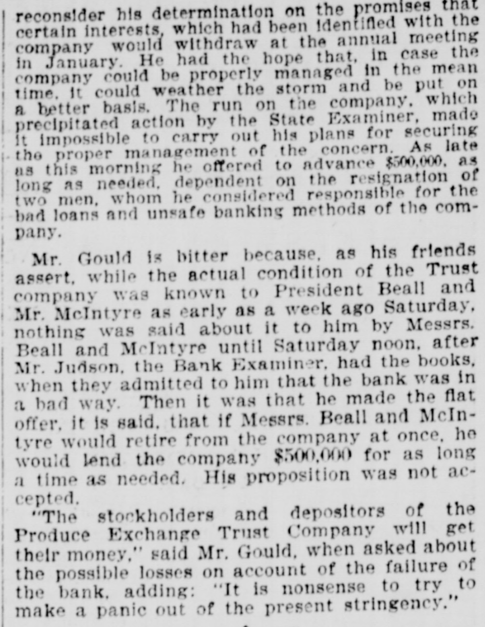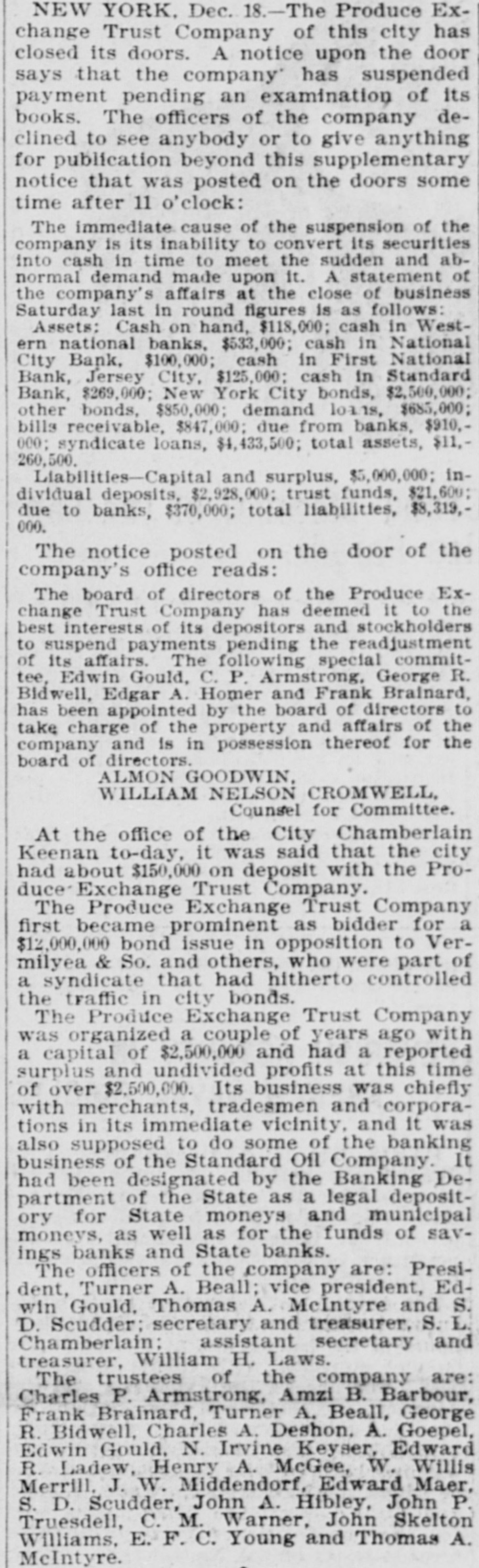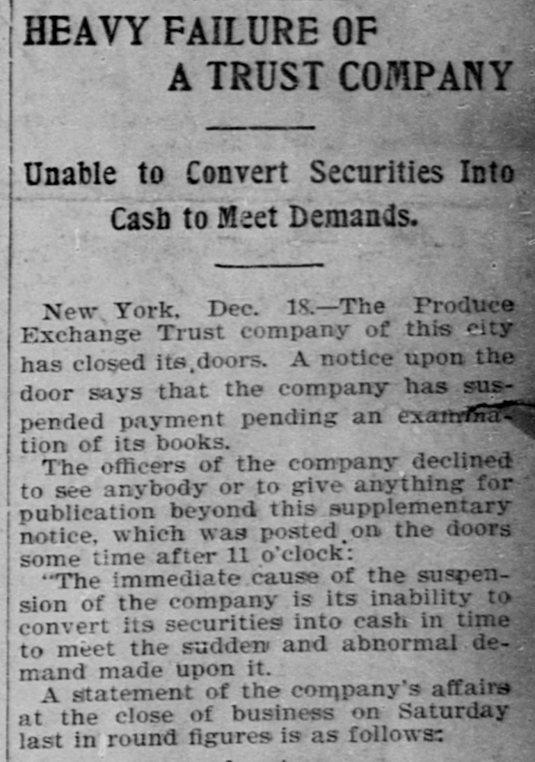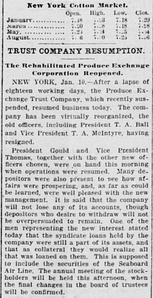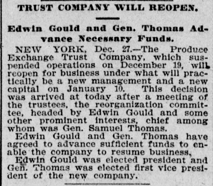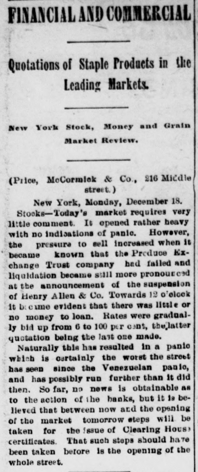 # ON THE BRINK. The government already has over $80,000,000 deposited in national banks, the largest sum for many months, and has left little undone to ease financial conditions in Wall street. The great expansion in bank loans, the heavy decrease in reserves, the high prices at which securities are quoted and the overextended condition of many specu-lators and cliques are responsible for the belief entertained by some of the most ex-perienced observers that the market is in a dangerous position.-Financial News Item. Have any of the Populist papers reported financial conditions any worse than this? Eighty millions borrowed from the govern-ment without interest and still the banks are on the ragged edge of despair, with less than $2,500,000 of surplus funds on hand-reserve constantly decreasing, although loans are being called in wherever possible. Suppose the government should call for that $80,000,000. What then will become of our boasted financial prosperity? The above clipping is proof positive that we have not money enough to expand our business any further, we cannot even keep it where it is without serious danger of universal collapse. Speculation has been compelled to call a halt on acount of the growing scarcity of money in New York. Stocks and securities of all kinds are declining. Grain also is going down, wheat is only worth 50 cents in Nebraska, although the world's crop of wheat is 200,000,000 bushels short. A few years ago present conditions would have made every bushel of good wheat in the West worth a dollar. Republican farmers that support the gold standard are paying dear for their patriotism when they sell their products at half price on account of present financial conditions and pay double for those necessaries that are controlled by the trusts fostered by their party. The Non-Conformist. The New York bankers are now im-porting gold at a loss, -one firm brought $5,000,000 in one shipment the other day, and the printing presses of the treasury department in Washington are pouring out paper money by the mil-lions. A desperate struggle is going on to make the gold blanket stretch long enough to cover the cold toes of the world. We are on the brink. The collapse may come at any time. Special to the St. Paul Dispatch. WASHINGTON. Sept. 18.-New York bankers are in financial straits and it is another case of chickens coming home to rost. For a long time the asacciated clearing house of New York has been charging Western bankers for collecting checks. The Western bankers some few weeks ago made a protest and requested that the vast amount of exchange in the form of com-mercial checks be credited up at face value, without deducting collection charges. The New York banks would not consent to this. As a result millions of money deposited to the credit of Western people has been with-drawn. In fact, the surplus reserve is about exhausted, for in addition to large withdrawals of account, vast sums are being sent West to move crops. Another reason for the New York money famine is that millions have been absorbed in floating so many new trusts. Conservative financiers here who have been watching business conditions say that in due course of time the money market and the compet-itive rush for business will settle the trus question more effectively than gatherings like the one recently held in Chicago. The Produce Exchange Trust Co., of New York, has already broken the cast iron rules of the consolidated banks, and gave notice today that it would withdraw from the Clearing House association.