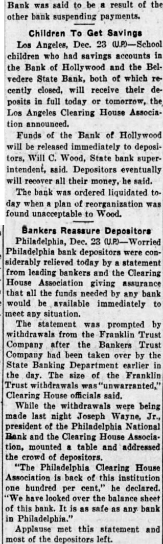 Johns WHEAT ADVANCES 2 CENTS. STOCKS BOUND UP STRONGLY. South. prices upward in an excited and short covering. The rise was one of the swiftest in stock exchange history Stocks were traded in blocks of 1.000 to 8,500 shares, and many issues made gains of to 15 points or more. United States Steel rose about and there were gains of about to 10 points in Can, American Carb house and Public Service of New Jersey, Issues up to General Motors, General Electric and Atchison led the rally in the rails with gain of 16 points. New York Central gained about Trucks The two news developments were the of the conference at the White House this evening among Hoover and leading members of congress, and the British decision for general election late month. As regards the Washington meeting there have been of an important statement pending at the national and Wall has conjectured widely as to its was recalled that prior to the June debt moratorium proposal Mr. Hoover met with of legislators Some brokerage houses referred to the Monday wave in the security markets as "hysterical" and said in many instances had lit. the or no relationship to actual values. It was reported that foreign buying was being done here, much of it from France Transactions in the first half hour were 900,000 to shares to 30 200,000; to 2:30 million; total, about 4,100 3ยฝ Am 000 shares. Net 100s) Rume Dye Note Sh Banking of bituminous coal during the week ended September 7,435,000 week. tons: same week last year, 000 Young Bank's Stockholders Must Pay. Los de Nem United States National Zenith Radio Bank were million dollars 100 per cent of their cents today the comptroller received of the currency at The assessment may be paid Novem four NEW YORK, Oct. -Directors of ber Topeka Santa Fe. meeting at noon today, declared the regu- ARGENTINE GOLD TO U. S. lar quarterly of $2.50 share New Oct. shipment of milon the stock. which has been lion gold has left Argentina despaid since 1927 Atchison almost tined for New York. was announced the only important railroad which will today carn its regular dividend this year. It had such margin between earn- WESTERN AUTO SUPPLY SALES Grain Privileges. Fox ings and dividends for several years Privileges on Western Auto Supply Company reports past that could experience big reto under sales for $972,500. comclose bids cent duction in earnings without endanand over pared with $1,044,500 for September year offers gering its dividends. Earnings were ago, per cent. Sales for Bids good all this $22.70 in 1929 and $12.85 in first nine months this year were cents and 1930. The slump in the 971/2 compared with $10,234,000 for 1% to cents the yesterday was followed by brisk the period of last year. Bids on good next are this morning. even before the dividend decrease of 9.4 per cent. quoted to cents under the close The stock was up to offers to 3% cents over the No Hay Market Today. nearly $300 share in 1929. on Receipts hav Kansas City today are cent too light to regular Declaration of the regular Atchison close bids and over session. and arrivals were held over for dividend was especially sigtomorrow's nificant because of the prominence good this are quoted close men on the board. They CHICAGO STOCKS MOVE UP. the to 1% over the close. Myron O. Taylor, chairman of Bids on the of the United are quoted cents under the close and States Steel Corporation: William scored on the Chicago Stock Ex. offers 216 to 3% cents the close. change Potter. president of the Guaranty Insull rose to 8%. UD %: Bendix gained Grain Futures Transactions. Trust Company: Charles Steele, part% 13%: and ner J.P Morgan Co.: Gen. James interest "In wheat and corn futures other shares also were active and the volume trade are here shown G. Harbord, chairman of the Radio on the in Corporation of America: Clarence M. KANSAS CITY OPEN INTEREST man of the American Bar Silver in New York. ago Radiator CorWheat New York cents Futures man of the Berwind White Coal Com- sales tions cents November pany. December 31. 1930, the company had balance in cash and govCity ernment securities of more than 50 million dollars New York Coffee Quotations INTEREST New No. Sanios No. Rio futures closed 10 to 29 points higher Wheat 5.25 Chicago Sanios futures closed week 000 year Waiting thousands will read your want ad in The Star.