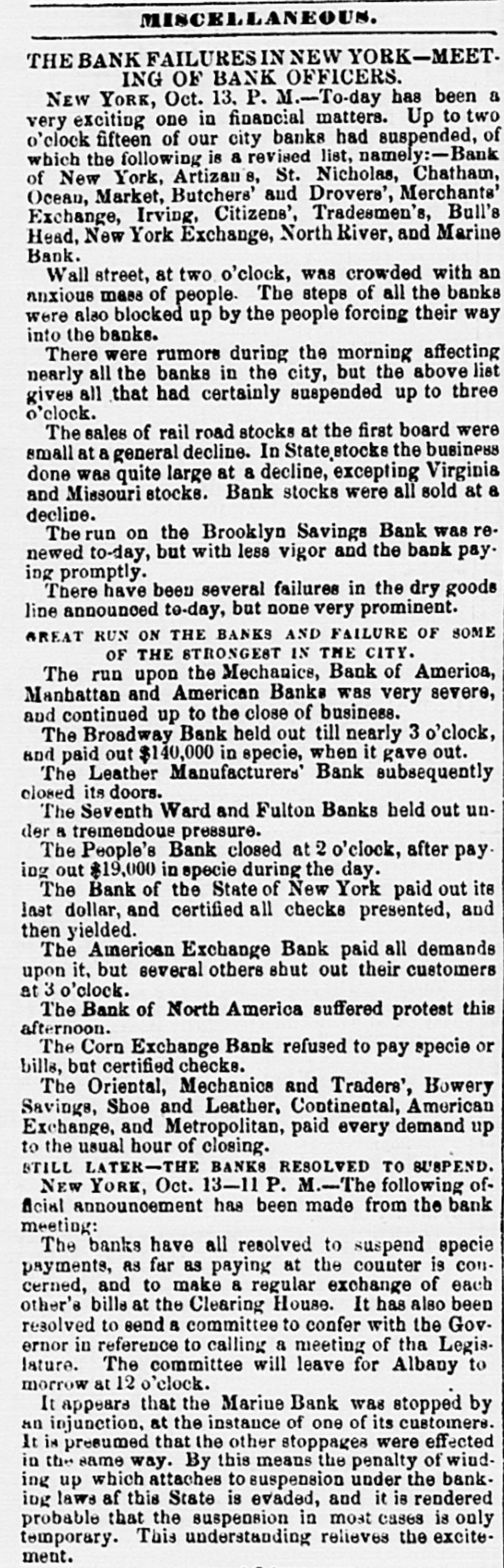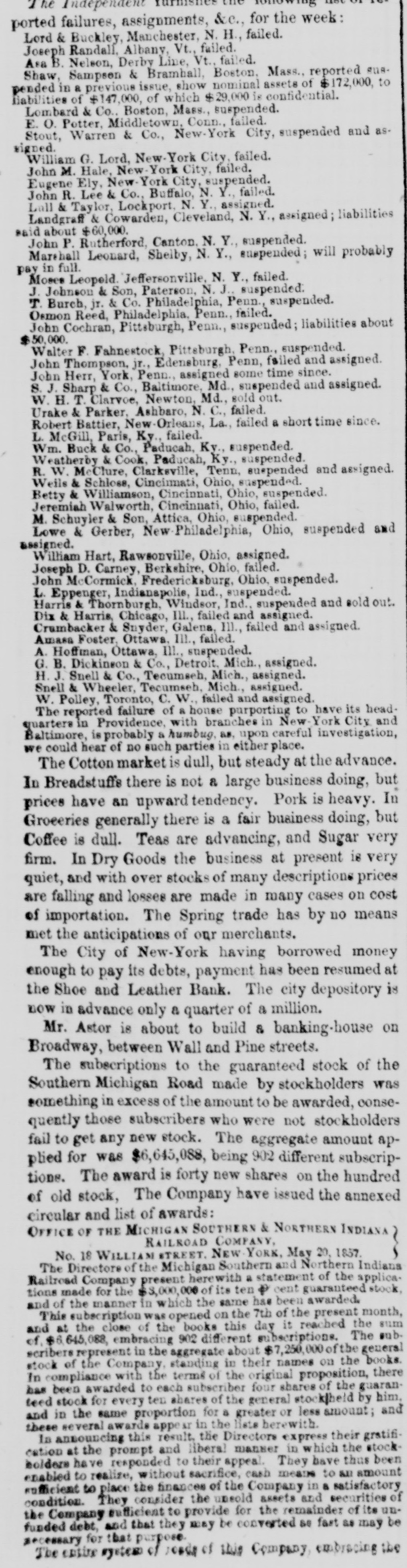 FINANCIAL AND COMMERCIAL. MONEY MARKET. SUNDAY, April 19-6 M. The stock market closed yesterday dull and depressed. The disposition to realize among holders appears to be extending, and there is an unusual amount of stock pressing for sale. Public confidence in certain kinds of railroad securities has almost entirely run out. This is a result we have for some time past been looking for. It takes a long time to arouse the great mass of people to a sense of their danger. The credulity of speculators is perfectly astonishing. The word credulity is employed, but the word depravity would be more appropriate. These speculators persuade themselves that their schemes are just what they represent, and are to result as their interests incite them to hope. They work themselves up into the belief that there can be no drawbacks, no revulsions. We see and hear daily of new projects, involving the employment of millions of dollars, being got up and the stock and bonds about to be thrown upon the market. Railroad schemes of gigantic proportions are ushered into notice, companies organized on paper, engineering and surveying expeditions fitted out, lengthy and plausible re ports published, and all sorts of means adopted to get the schemes fairly affoat. Presidents, treasurers, managing directors, engineers, agents, find for a time profitable em. ployment, and money to pay them is raised by sales of stock or bonds. A capitalist once in for a penny, is very apt to get in for a pound. He grants new advances with the hope of saving his old. Sometimes the credit of States, Territories, counties, cities or towns, or the internal improvements lands or Funds of a State are pledged to secure bonds of such corporations; and all understand what first, second and third mortgages are. We have heard of large amounts of this class of securities, that will come upon this market within the next few months. There are many who purchase such securities to sell again, who do not care whether they are really good and safe or not, provided they do not depreclate before they can sell them. Though appearances would indicate that we are on the evo of a financial crisis, not only in this country, but in Exrope, and of which the failure of Greene & Co., of Paris, is but a sign of a token, though no man has reliance on the Credit Mobilier of France or the soundness and stability of the London money market, though all see that the stock market has culminated to the highest point, yet we doubt not purchasers may be found for new stocks of any kind and character, good, bad and indifferent. In the face of the immense losses that must have been realized upon the depreciated and depreciating stocks now on the market, we should not be surprised to see new schemes succeed with as little effort as in times of the highest confidence. It is protty certain that those who have suffered by the most recent financial operations will not be among the victims in new projects. It will require a fresh supply for the next harvest. If it is in our power to nip any new scheme in the bud, weshall most assuredly do so. Let us bury the old carcases before the slaughter again commences. We have only to run our eye over the list of stocks now daily operated in to find plenty of carrion for the vultures to feed upon, without seeking out fresh victims. We understand that the payment of New York city warrants was refused yesterday by the City Chamberlain at the Shoe and Leather Bank. They were afterwards offered in several other banks to raise money on The Clovelated and Toloda Refiread Company have do.