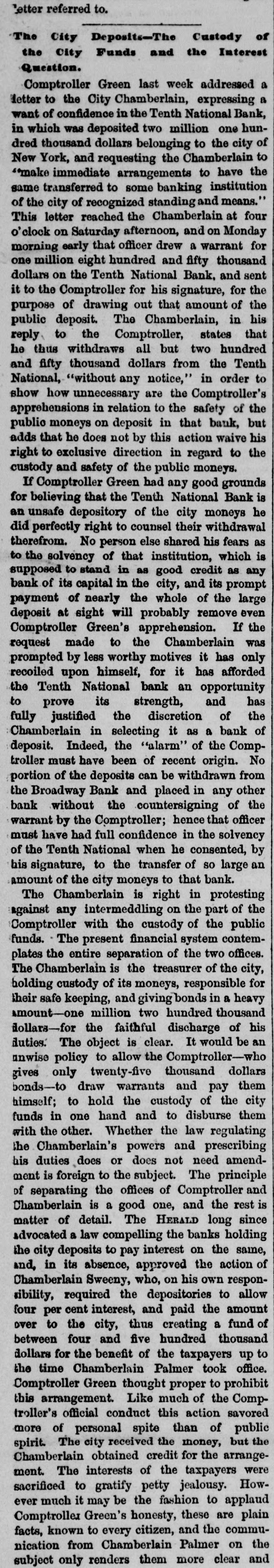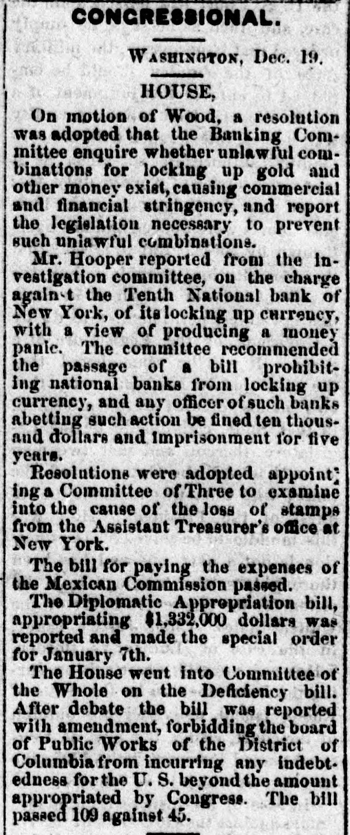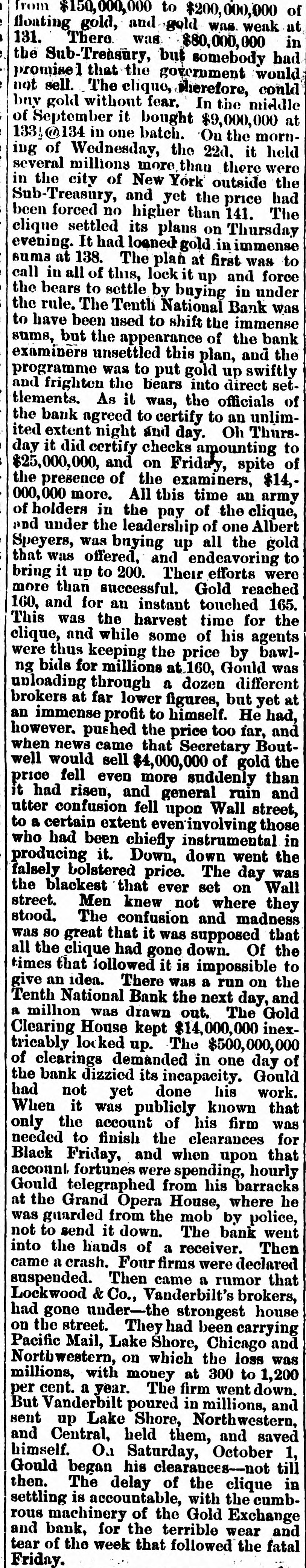 A SLIGHT ADVANCE IN GOLD. Government Bonds Steady and Firm. THE SOUTHERN LIST QUIET AND IGNORED. Heavy Imports of Foreign Dry Goods. WALL STREET, FRIDAY. April 5-6 P.M. on 'Change to-day wheat was firm, but inclined to dulness. The cotton market was steady. THE DRY GOODS IMPORTS. The imports or dry goods at this port during the past week were $5,430,901. The amount marketed was $4.833,080. MONEY STRINGENT. The money market was stringent throughout the day, and as high as 3-16 per cent was paid, in addition to per cent, equivalent to about 75 per cent per annum. The standing bid most of the time was 1/6 per cent, or 45 per cent per annum, Some of the leading government dealers got a little accommodation at plain 7 per cent, but loans to the best parties on stocks were made at 1/6 a 3-16 per cent. and coin interest was treely accepted by the anti-Shylock class of leaders, Bank accounts were unusually late, and many were not made up until near four o'clock. A little after three o'clock there was a brief cessation in the demand, and some lenders who came out to employ balances took per cent coin; but their offerings were rapidly absorbed, and s per cent was bid to the last moment the market hung together. As already intimated in this column the natural activity in money has been aggravated by artificial means. To-day the Tenth National Bank was creditor at the Clearing House for the unusual dif ference of $4,770,000. which amount must have been withdrawn from circulation by parties having ac. counts in that bank. The other banks venemently denounce the Tenth National for its connection, willingly or unwillingly, with this "lock-up," and were reported to have decided to exclude it from the Clearing House: but the rumor doubtless arose from a threat on the part of some of the officials of the Bank of Commerce that they would refuse to take the checks of the Tenth National it it reDeated these objectionable transactions. Whatever the agency of the bank, the parties owning the locked-up money are professional speculators, aiming by this means to produce a decline in prices, If not a panic, at the Stock Exchange. In this latter respect the scheme was a decided failure, as will be seen by the paragraph about stocks further on. Prime commercial paper IS quoted 8 a12 per cent discount, but is neglected. Foreign exchange was steady and a shade firmer at the rates given yesterday. GOLD STRONG-1103 A 110% The gold market was strong, but only moderately active at 11036 11014, with a few sales at 1103/ The closing quotation was 110 3-16 a 110%, with a number of bids at 1101, buyer three. The SubTreasury paid out $296,000 in redemption of the called bonds of 1862. In the gold loan market the rates ranged from per cent to 1-32 for carrying. The operations of the Gold Exchange Bank were as follows:$29,710,000 Gold cleared 1,216,674 Gold balances 1,376,306 Currency balances GOVERNMENTS STEADY. The government list was steady and quiet, which simple comment is about as much as can be made a upon the market. The foreign quotations were little lower, except in the one instance of the 67's, which were unchanged from yesterday. The follow. ing were the closing ces:-United States currency sixes, 11514 a 115% do. sixes, 1881, registered, 11414 115: do, do, coupon, 115% a 115%;do five-twenties, registered, May and November, 109 a 109%; do. do., 1862, coupon. do., 112 1/2 a 11234: do. do., 1864, do. do., 1121/4 a 112%: do. do., 1865, do. do., 1121 a 113; do. do., 1867, registered, January and July, 112% a 113; do. do., 1865, coupon. do., 11136 a 111%; do. do., 1867, do., do., 112% a 113; do. do., 1868, do., do., 112% a 113% do. fives of 1881, funded, registered, 109% a 110% do. do. do., coupon, 109% 1101/: do. ten-forties, registered, 107% a 108; do. do., coupon, 108 1/4 108 SOUTHERN SECURITIES QUIET. The Southern list was seldom so neglected, the in. difference of both the investment and speculative interest not being susceptible of ready explanation. unless on the theory that, these securities are now feeling the 111 effects of the scandalous administration of the finances of so many of the Southern States. The following were the prices at the close:Tennessee, ex coupon, (6 a 67; do. new, 66 67; Virginia, ex coupon, 50 a 56; do. registered stock, old, 44 a 49: do. sixes, consolidated bonds, 55 a 56; do. sixes, deferred scrip, 16 a 17; Georgia sixes, 73a78: do. sevens, 85 a 87; North Carolina, ex coupon, 36 % a 3736; do., new, 20 22; do., special tax, 14 a 16; Missouri sixes, 95% a 96; do., Hannibal and St. Joseph, 93 a 94; Louisiana sixes, 59 62: do. levee sixes, 60 a 63; do. do. eights, 70 80; Alabama fives, 58 a 62; do. eights, 85 a 90; South Carolina sixes, 52 a 53; do.. new. January and July, 373 38; do., do., April and October, 36 a 361/2; Arkansas sixes, funded, 54 a 58. THE ILLINOIS CENTRAL RAILROAD. The official report of the Illinois Central Railroad for the year 1871 contains the following summary or operations:The earnings of the line In Illinois were. $7,052,440 $8,817,009 The working expenses 463,512 And the State tax 4,280,522 Leaving net earnings The earnings of the leased lines in Iowa $2,771,918 were $1,348,701 Which, deducting the working expenses $824,910 543,328 Rent... 19.532 And taxes 1,387,772 $39,070 Shows deficit of in working the Iowa lines, and reduces the the net earnings or the lines operated by to... $2,732,847 company. 2,857,321 Against net earnings in 1870. 124,474 A falling OIT in 1871 of Making taxes the proportion of expenses and earnings The of the Land lands Department sold in 1871 48,927.31 61 per cent. acres railway for donated to aid the construction ot the the $469,404 26, making the to $23,349,721 close 24, and of 1871 2,215,789.77 aggregate acres sales for unsold at was the 319,210.23 which $1,000,000 acres: has $1,683,153 leaving 53 collected, that date of part and bond fund. The of the logg bonds by fire of the to trustees' construction records further literal compliance 