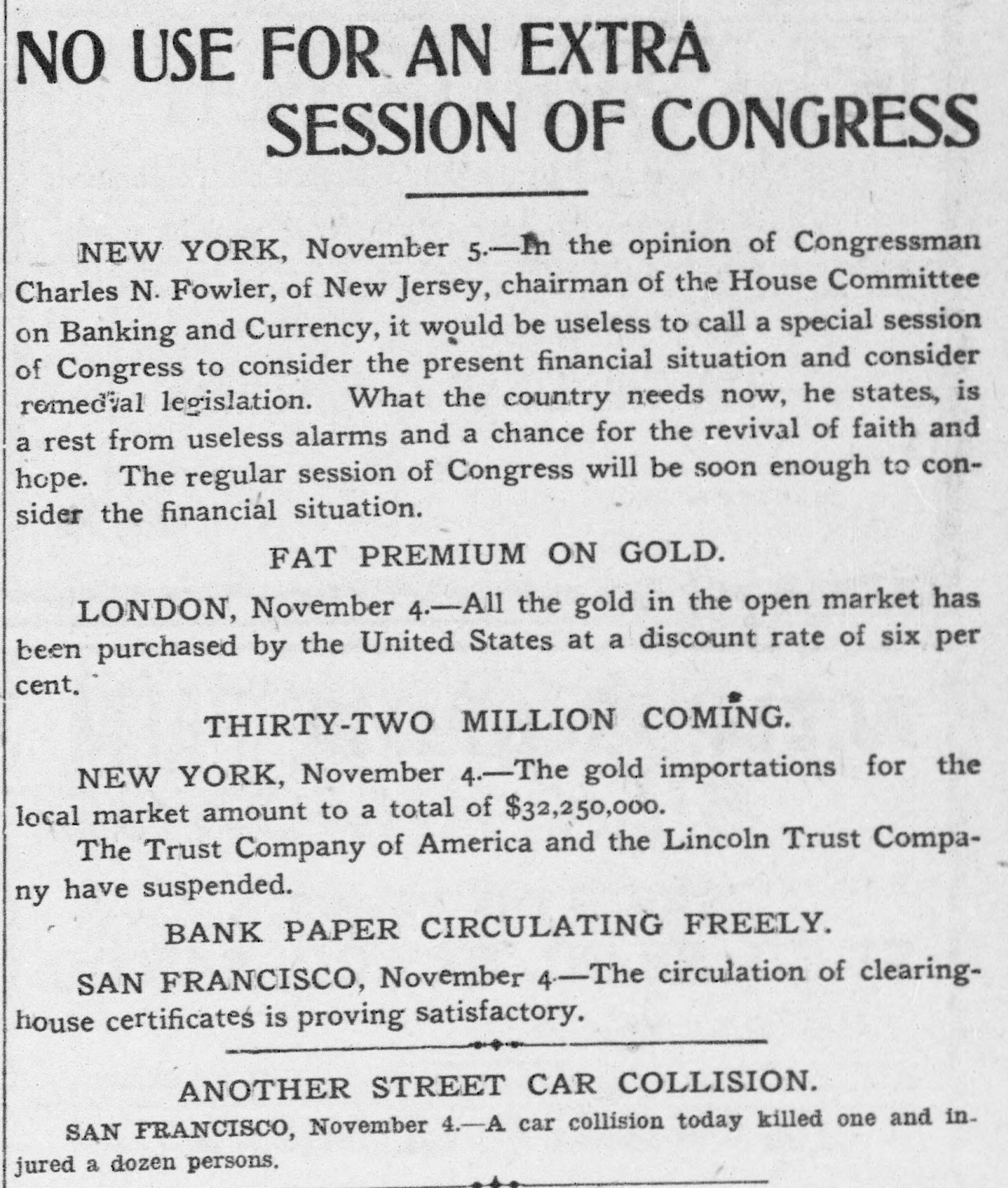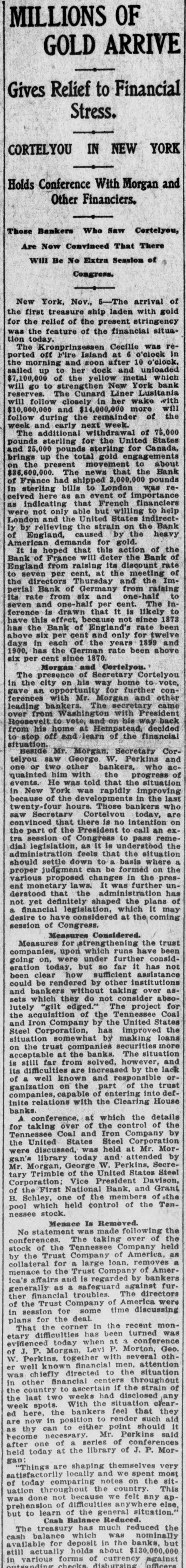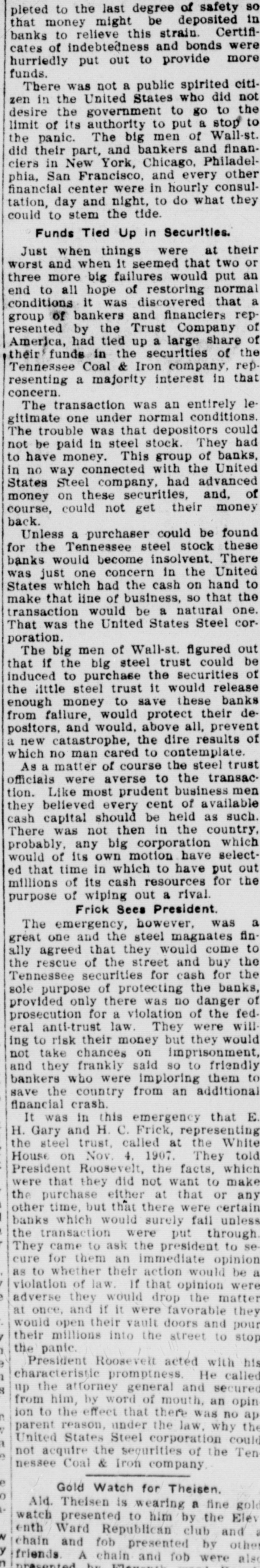 LATEST NEWS BY TELEGRAPH Domestic Backed by a mass of letters and photographs found in his room, the Philadelphia police assert that Harry Ferree, shot dead by A. Jackson Detsch, Jr., was a blackmailer of women. That he attempted to blackmail Mrs. Detsch is advanced as the theory of Detsch's motive for shooting the man. Detsch clings to the ruse that he shot Ferree believIng him to be a burglar. Henry E. Warner, receiver for the Arnold Print Works. of North Adams, Mass., has been appointed receiver for the Williamstown Manufacturing Company and the firm of Gallup & Houghton, which were affiliated with the print works. Jesus Garcia, a locomotive engineer. gave his life to save the town of Nacazari, Ariz., by putting full speed on a train of explosives afire, the train blowing up before it had gone far. The United States Court of Appeals affirmed judgment against the Chicago, Burlington and Quincy Railroad, compelling it to pay a fine of $15,000 for granting rebates on lard. The Old Dominion Line steamer Jeffersón. with nearly 100 passengers, arrived in New York with fire in the cotton in her cargo. D. C. Gilman has resigned as president of the National Civil Service Reform League. His successor is Joseph Choate. The Cunarder Lusitania encountered a gale at sea that swept her decks. Judge Olin Wellborn, in the United States District Court in Los Angeles, Cal., fined the Santa Fe Railway Company $300,000 for rebating. James F. Jones, a mining engineer, died in Philadelphia, the result of overexertion, after his usual exercise with 35-pound dumb bells. Two coal harges, the Onondaga and Black Diamond, both heavily laden with coal, were sunk off Stony Point light, in Lake Ontario. Alfred G. Vanderbilt has given $100,000 for the construction of a Young Men's Christian Association building in Newport, R. I. Sir Anthony McDonnell, under secretary of state for Ireland, was presented to President Roosevelt by the British Ambassador. Harry C. Washabaugh, bigamist, hanged himself in his cell in the county jail at Washington, Pa. Secretary Taft has finally decided to return by the way of Vladivostok, through Siberia and Europe. The directors of the American Cotton Oil Company passed the dividend on the conimon stock. Ex-Judge Henry Hand has declined the offer of the attorney generalship of Porto Rico. A fire caused a panic among the inmates of the Kane County, III., almshouse. The consignment of $7,100,000 in gold coin and bars which arrived on the steamer Kronprinzessin Cecillie was transferred from the ship's safe to the Subtreasury in New York. The equivalent in currency of nearly the entire consignment is being advanced to bankers. The Arnold Print Works, North Adams, Mass., employing 6,000 hands, is in a receiver's hands. Receivers have been named for the New York State Steel Company. Raymond Hitchcock, the actor. who has been missing a week, surrendered to District Attorney Jerome, gave bail and reappeared in "The Yankee Tourist." The trust companies of New York have taken charge of the Trust Company of America and the Lincoln Trust Company. Gray Gables, the former home of Grover Cleveland at Buzzards Bay, has been sold to George D. Flynn, a brewer. The Arctic whaling fleet previously reported caught in the ice is homeward bound with a large catch. Two Chicago laborers were electrocuted by the cable of a derrick becoming charged with electricity.