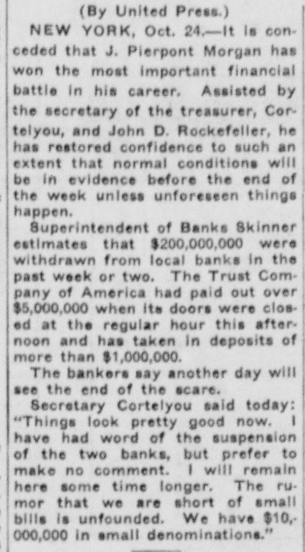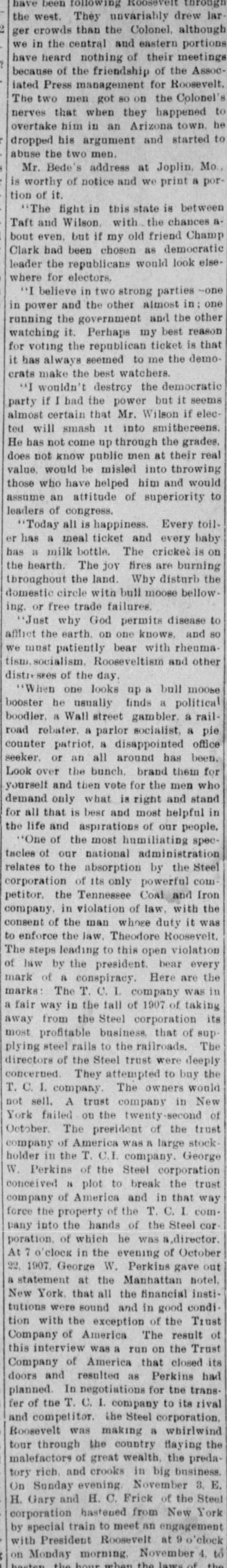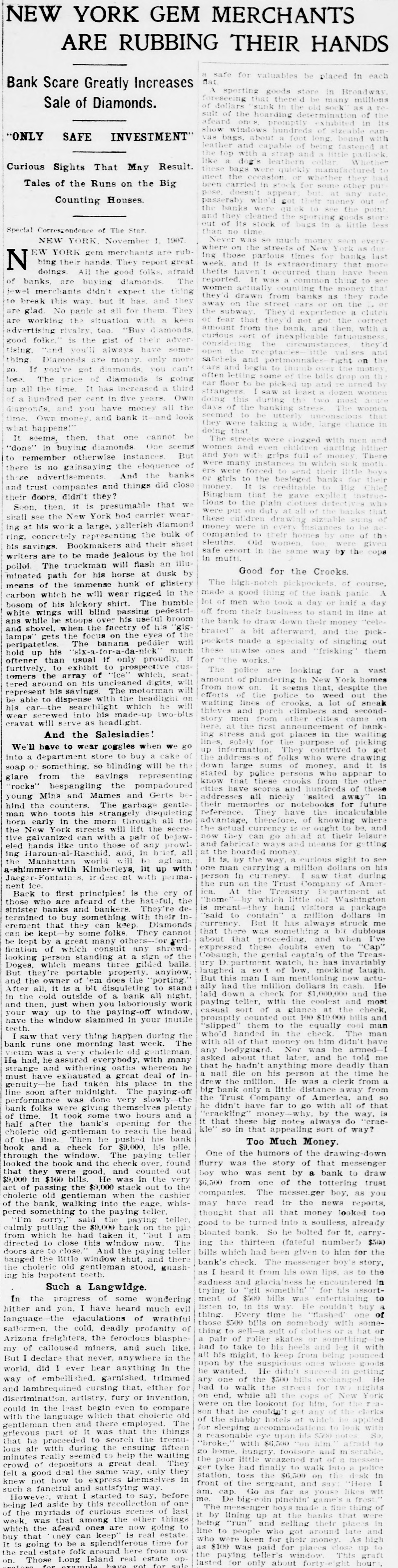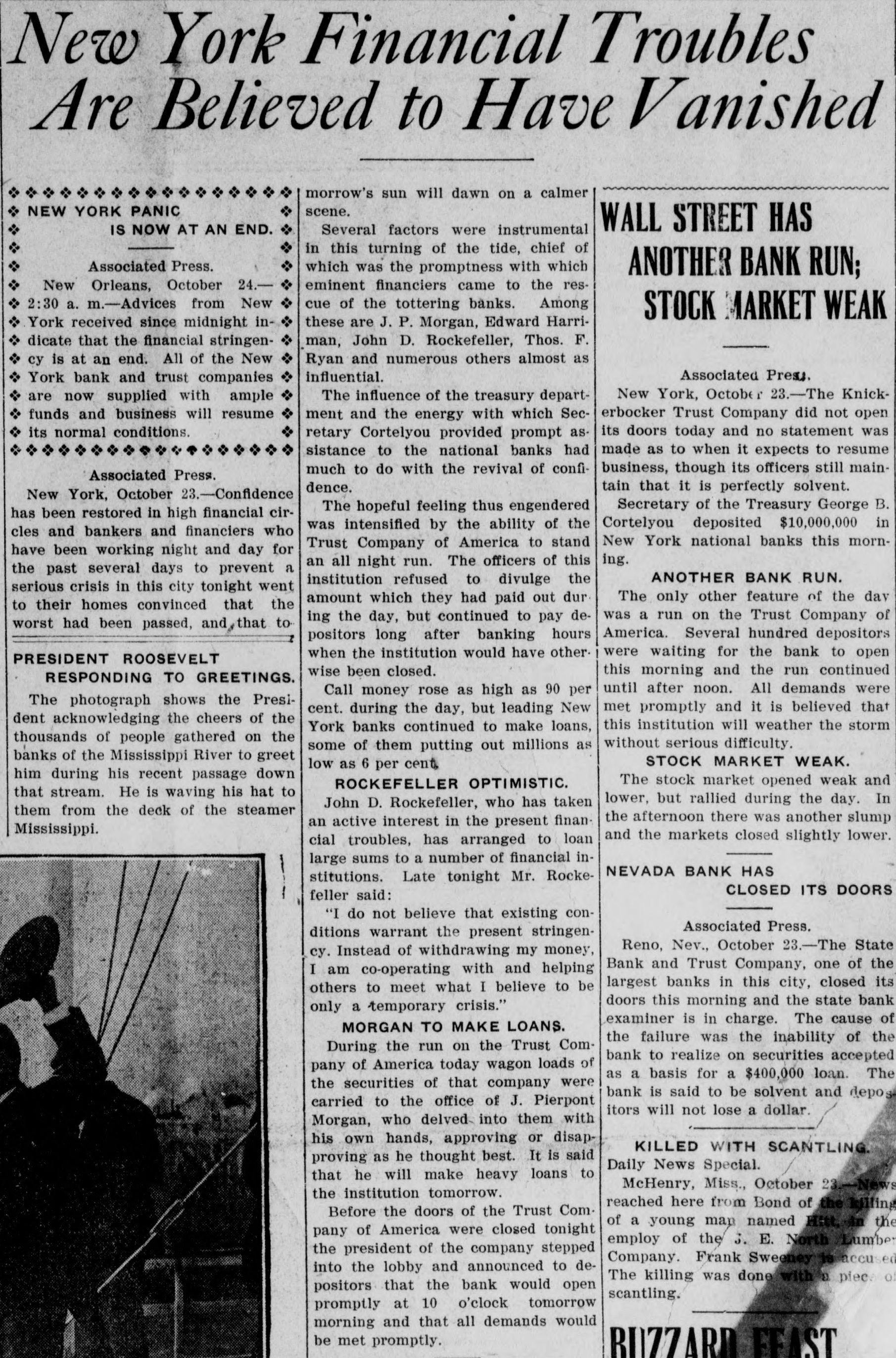 LATEST NEWS BY TELEGRAPH Domestic Backed by a mass of letters and photographs found in his room, the Philadelphia police assert that Harry Ferree, shot dead by A. Jackson Detsch, Jr., was a blackmailer of women. That he attempted to blackmail Mrs. Detsch is advanced as the theory of Detsch's motive for shooting the man. Detsch clings to the ruse that he shot Ferree believIng him to be a burglar. Henry E. Warner, receiver for the Arnold Print Works. of North Adams, Mass., has been appointed receiver for the Williamstown Manufacturing Company and the firm of Gallup & Houghton, which were affiliated with the print works. Jesus Garcia, a locomotive engineer. gave his life to save the town of Nacazari, Ariz., by putting full speed on a train of explosives afire, the train blowing up before it had gone far. The United States Court of Appeals affirmed judgment against the Chicago, Burlington and Quincy Railroad, compelling it to pay a fine of $15,000 for granting rebates on lard. The Old Dominion Line steamer Jeffersón. with nearly 100 passengers, arrived in New York with fire in the cotton in her cargo. D. C. Gilman has resigned as president of the National Civil Service Reform League. His successor is Joseph Choate. The Cunarder Lusitania encountered a gale at sea that swept her decks. Judge Olin Wellborn, in the United States District Court in Los Angeles, Cal., fined the Santa Fe Railway Company $300,000 for rebating. James F. Jones, a mining engineer, died in Philadelphia, the result of overexertion, after his usual exercise with 35-pound dumb bells. Two coal harges, the Onondaga and Black Diamond, both heavily laden with coal, were sunk off Stony Point light, in Lake Ontario. Alfred G. Vanderbilt has given $100,000 for the construction of a Young Men's Christian Association building in Newport, R. I. Sir Anthony McDonnell, under secretary of state for Ireland, was presented to President Roosevelt by the British Ambassador. Harry C. Washabaugh, bigamist, hanged himself in his cell in the county jail at Washington, Pa. Secretary Taft has finally decided to return by the way of Vladivostok, through Siberia and Europe. The directors of the American Cotton Oil Company passed the dividend on the conimon stock. Ex-Judge Henry Hand has declined the offer of the attorney generalship of Porto Rico. A fire caused a panic among the inmates of the Kane County, III., almshouse. The consignment of $7,100,000 in gold coin and bars which arrived on the steamer Kronprinzessin Cecillie was transferred from the ship's safe to the Subtreasury in New York. The equivalent in currency of nearly the entire consignment is being advanced to bankers. The Arnold Print Works, North Adams, Mass., employing 6,000 hands, is in a receiver's hands. Receivers have been named for the New York State Steel Company. Raymond Hitchcock, the actor. who has been missing a week, surrendered to District Attorney Jerome, gave bail and reappeared in "The Yankee Tourist." The trust companies of New York have taken charge of the Trust Company of America and the Lincoln Trust Company. Gray Gables, the former home of Grover Cleveland at Buzzards Bay, has been sold to George D. Flynn, a brewer. The Arctic whaling fleet previously reported caught in the ice is homeward bound with a large catch. Two Chicago laborers were electrocuted by the cable of a derrick becoming charged with electricity.