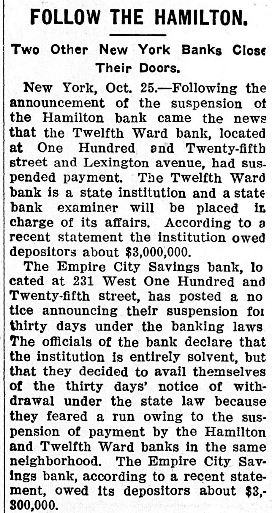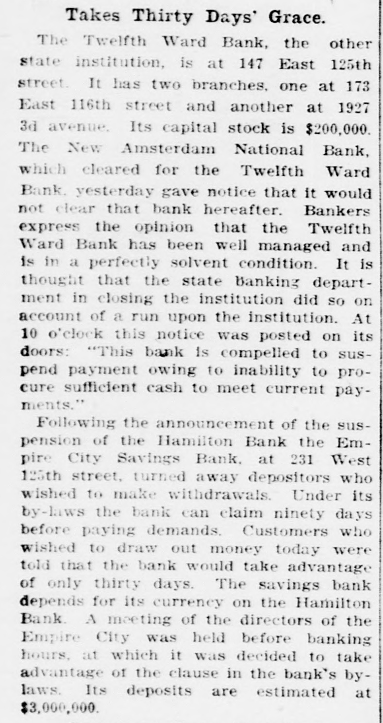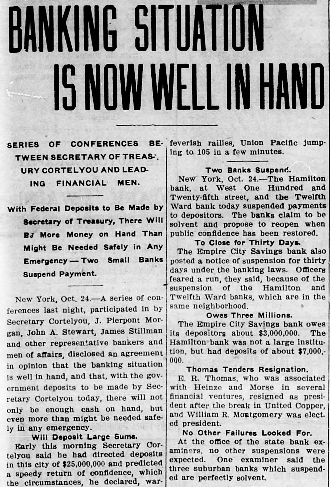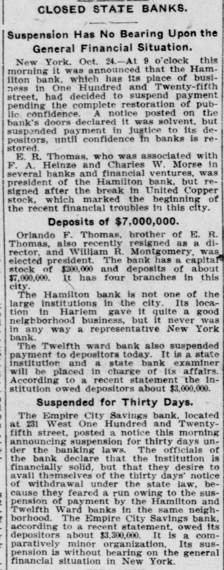 NEWS SUMMAR The Trans-Mississippi congress meet in San Francisco next year Speaker Joseph Cannon was railroad wreck at Bismarck, Ills., week, but escaped injury. President Castro of Venezuela in ill health at Los Teques, is again confined much of the time bed. The Switchmen's union has the demand on the west for an drawn railroads increase hour. of amounting to six cents an were killed and a buil to atoms when an explos at the E. I. blown Two men Dumors Pow plant near company's occurred Williams, Pinole, Cal. Miss Louisa a young has confessed that she gress, 2-months-old babe from a her train two miles west of Cucamon Cal. strike of the St. Louis The has been officially called workers the joint executive board by Independent Boot and Shoe Work union. Famine conditions are threaten Vesternorrland and Vesterbat the of Lapland, where delug the crops. districts rains have had disastrous effects S. King, president of of Homer House association Clearing says that the local situation Francisco, is gradually returning healthy condition. Governor George I. Sheldon declares that he will braska influence toward securing his publican national convention for sas City next year. Twelfth Ward bank, of of the York, The one institutions during the payment has suspended days of the financial crisis, opened for business. men were killed, seriously one fatal Five and a number boiler injured the explosion of a Rop jured by mill at the John L. lumber a planing mils, Gelmerton, Va. children were cremated Five parents and two other their seriously burned when the Pleasa were Thomas W. Zuver, near fire. of Pa., was destroyed by ville, wiped out the balance of Russia to Japan, arising week, the handing the indebtedness war, last over to the Russian embas bassy a check for $24,302,200. of Chancellor Japan Stout has rendered of revoking the license do busine cision Standard Oil company to discrimination Tennessee. Illegal company. in was alleged against the has The Alabama legislature sale or to prohibit the in a bill or possession of liquors the Georg away prohibits exactly what will become It law allows. The act fective Jan. 1, 1909. situatio over the financial wealthy Worry Oscar Nelson, a to comm caused man of Rockford, illuminating Ills. ness suicide by inhaling prominent was formerly a Duluth. ture He manufacturer at of Walter Wellman, leader expedition the Record-Herald polar first attem cago who is returning from his by balloon, reach the north pole last week to rived in New York Majestic. Cherbourg on the steamer has decide court of appeals last The the act passed at the provide that the New York legislature cast of recount of the votes York for a election in New unconstitu in mayoralty November, 1905, is tional. Over 1,000 delegates were on the prese Muskogee, Oklahoma, former at David R. Francis, the when of Missouri, called the Tran ernor anual meeting of congress, Mississippi teenth Commercial ultima order. "Free love will be the if the fate of the United States, is continued system of divorce voiced ent was the prophecy in Chicag This Twentieth Century club Deland last the week by Mrs. Margaret Boston. Before leaving Windsor Wilhelm, castle Higheliff castle, Kaiser than stated, left no less a sum among the to be divided as tips his previous at the castle. On it was trip vants to Windsor, in 1898, $2,500 A dispatch was left. received British from Santlas steams says that the England Hazel Chili, Branch, bound to full cargo, Antofogasta, with a the straits totally wrecked in said regard been Magellan. Nothing was the fate of the crew. ing Montague Newton and Joseph who Fisher, the two Americans charged convicted in London, defraud, han to cheat months conspiracy been twenty and labor sentenced to and to prisonment at hard respectively. imprisonment months' In consequence of cigars the cancellation from Ne U of large orders for other cites,