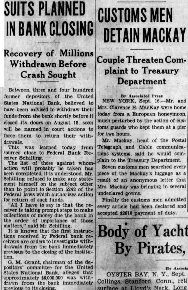 THE WALL STREET PANIC. Some Features of it as Presented by th New York Papers-1 President Georg I. Seney's Career-His Gifts-The Caus of His Failure-Facts About Grant Ward. The Wall street panic appears to b about over and confidence is partially, not wholly, restored. At one tim Wednesday), however, the situation looked very threatening. One of the ugl features of the day was the ruthless man ner in which the names of banks wer bandied about. Scarcely a bank withi a radius of half a mile of the Stock Ex change escaped suspicion, and incipien "runs" were started in half a dozen in stitutions that proved to be perfectly so vent. Depositors, each in a more or les feverish state of anxiety. presented them selves at the tellers' windows of the Phe nix, the Union, the Wall Street and th Gallatin National Banks, but they wer speedily reassured as to the soundness those institutions. Reports were in cin culation about noon that 'runs' were ing made on the Fourth National an United States National Banks, but officer of those two banks laughed the state ments to scorn. President Baldwin, the first -named institution, said that hi bank was not only as firm as a rock, bt that there had not been an excited cust mer inside of it during the day AMONG THE MANY EXCITING RUMORS of the day was one that Jay Gould ha been driven to the wall and had bee obliged to open his famous strong box which he keeps in the vaults of the Me cantile State Deposit Company for purpose of raising money by using all hi securities as collateral. Mr Gould ha been unable-so the story went-to rais as much money as he needed on thes securities Mr. G. Morosini, M Gould's assistant, said that the repor concerning Mr. Gould was not true. "If Mr. Gould has failed, said M Morosini, with a pleasant smile and charming broken English, wish that might fail also, in the same way. He as solid as what you call-rock Mr Washington E. Connor, Mr. Gould broker. said the report was one of th wildest and most absurd of the day has not borrowed a dollar,' added M Connor "The securites were taken of the vault this morning, but they wer taken back this afternoon. That is a every day occurrence, and is done in th usual course of business. IT WAS APPARENT THAT THE RECEN FLURRY in Wall street had trightened the de positors of the Metropolitan Nation: Bank. The deposits have ranged as hig as eleven millions of dollars. The las statement showed that they had run dow to a little over three millions, and withi the past few days there had been heav depletions. The bank had become in volved in the heavy operations of Nelso Robinson & Co., whose checks were large ly certified and not made good on Tue day. Mr. Robinson is son-in- law of Pre ident Seney, and two of Mr. Seney's son are partners in the firm. But the most serious matter presente was the embarrassment of the Presiden George I. Seney. who is largely connecte with many railroad enterprises. La summer Mr. Seney was the holder of about $4,000,000 of East Tennessee, Virginia an Georgia Railroad income bonds, whic cost him and the other members of syndicate about 40 cents on the dolla They are now selling for about 15. T1 bonds have been as high as 73, and M Seney had great confidenc in them. The constitute a large part of the assets of bank When the demands of deposito and other creditors became pressing, was, of course, impossible to realize an thing on such assets without a ruinou sacrifice Some of the Directors, among who were Isaac H. Bailey, were loth to su pend, and up to the last minute urged tl possibility of obtaining aid from other banks MR SENEY AND HIS ENTERPRISES. The bulk of the responsibility for tl failure the bank was sides place with President Seney He was born Astoria, L.I., in 1826, and was the son a Methodist who occupied se eral pulpits in this city including Mulberry street and Allen street His was daughter of Con modore Nicholson. One of his aunts the wife of Albert Gallatin. Mr. Sene was educated at Wesleyan Universit and Columbia College, and was graduate from Columbia in 1847 He W: made paying teller of the Metropo itan Bank in 1847, and cashier years later. On the death of John Williams he was made President, since he reached that position his will been really the law of the bank M Seney negotiated what is known as tl Nickel Plate Railroad enterprise, and said to have realized about a million an a half out of his sale of it to the Vande bilts. GIVING A FORTUNE AWAY. Then he loomed out as one of the m lionaires of the metropolis, and about te years ago astonished even his most in mate friends with his princely gifts various ational and stitutions. He began with a gift of to the Long Island Historical Society at followed up with valuable books manuscripts. He gave 500 to the Your Men's Association and $27 000 to the Wesleyan University Middletown. Conn., where he received early education. He gave sixteen lots Seventh avenue, Brooklyn, and $200,000 cash for the purpose of constructing new hospital, which is not yet finishe His total gifts to the Long Island Histo cal Society amounted $62,000 He $20,000 to the Industrial Home in Butl street, $50,000 to Emory College in 0 ford. Ga., and $100,000 to Wesleyan F male College at Macon, and other benefa tions, most of which were unsolicited. In explanation of these gifts, he said them to the Lord that he found it better to give than that he took pleasure in partir with half a million dollars in this way that he preferred giving in his lifetime waiting until death for a bequest which might be defeated by contest over will. He used to talk of the bad effec upon a man's disposition of hoardin wealth, and took pride in saying h gifts did not go to the idle, the dissipate or the undesery Yet at the time most of these gifts we made, while many who had long know him were surprised at these unexpecte evidences of wealth, others who kne something of his real situation, and tl immense required by his ex sive terprises. remonstrated with hir He was