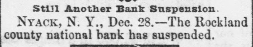 Still Another Bank Suspension. NYACK, N. Y., Dec. 28.-The Rockland county national bank has suspended.