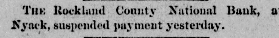 THE Rockland County National Bank, a Nyack, suspended payment yesterday.