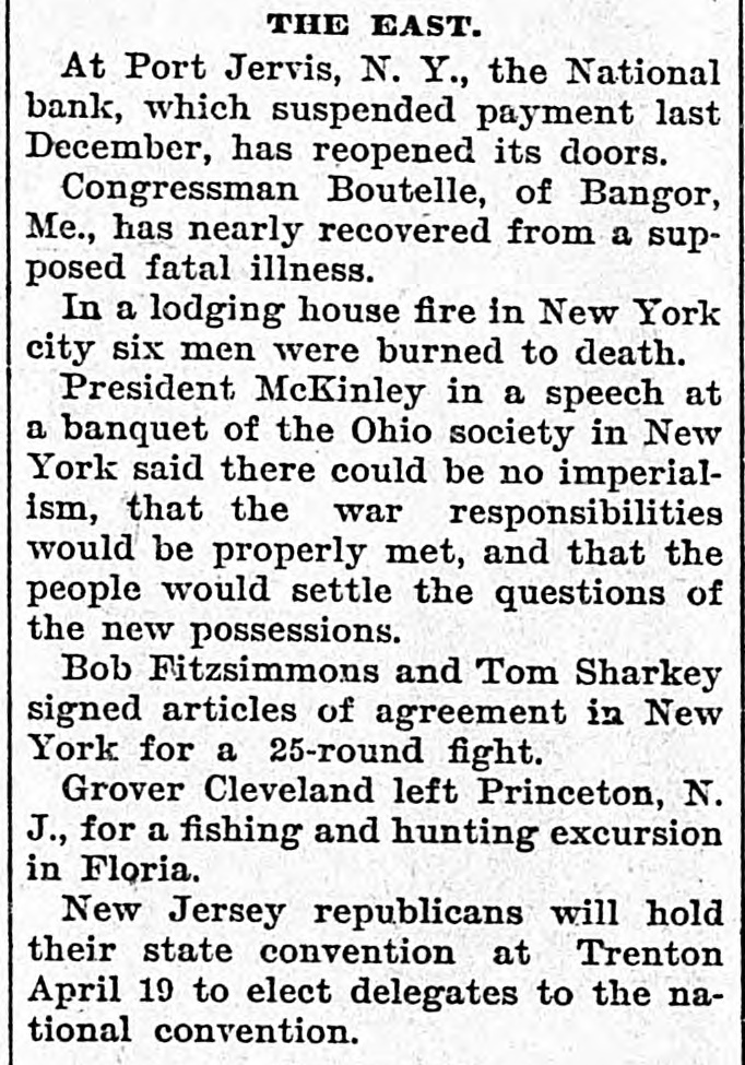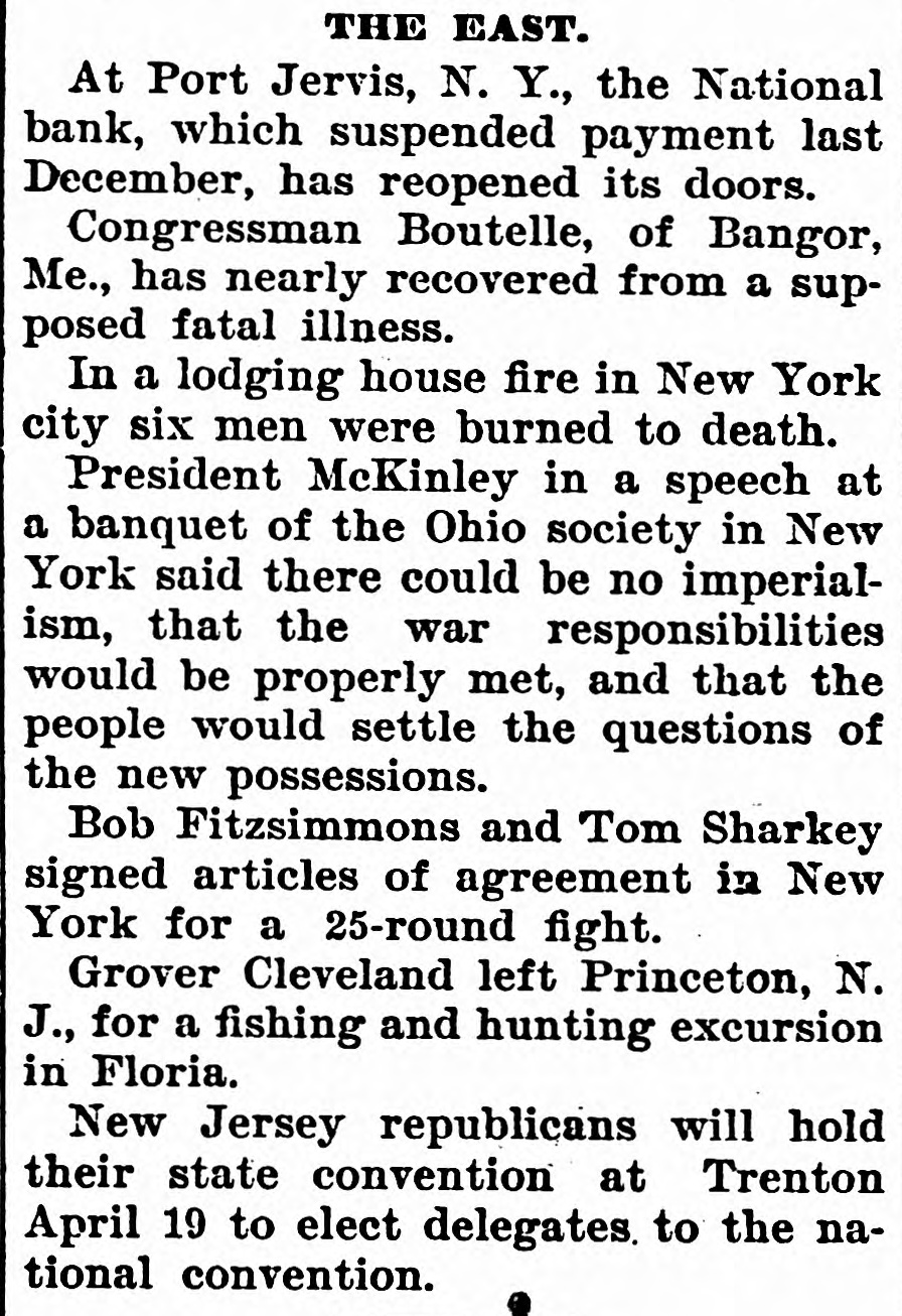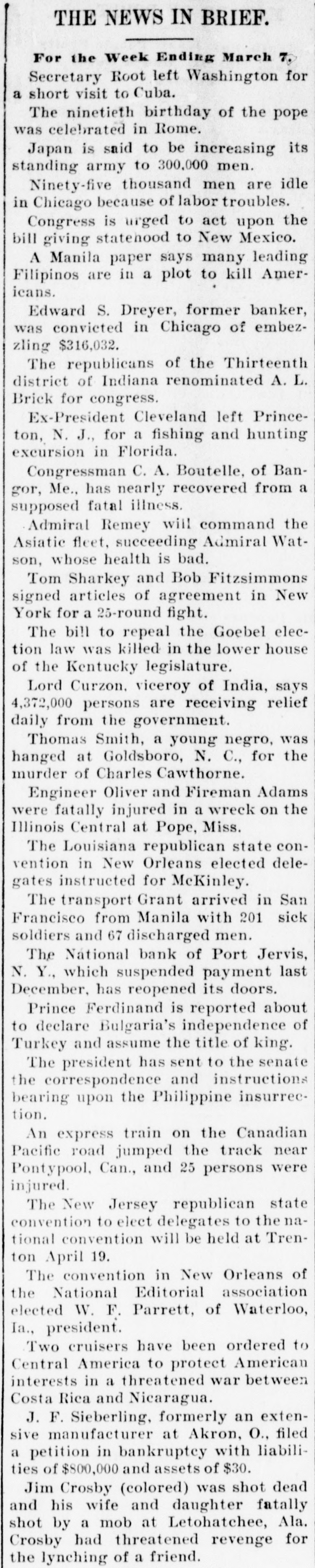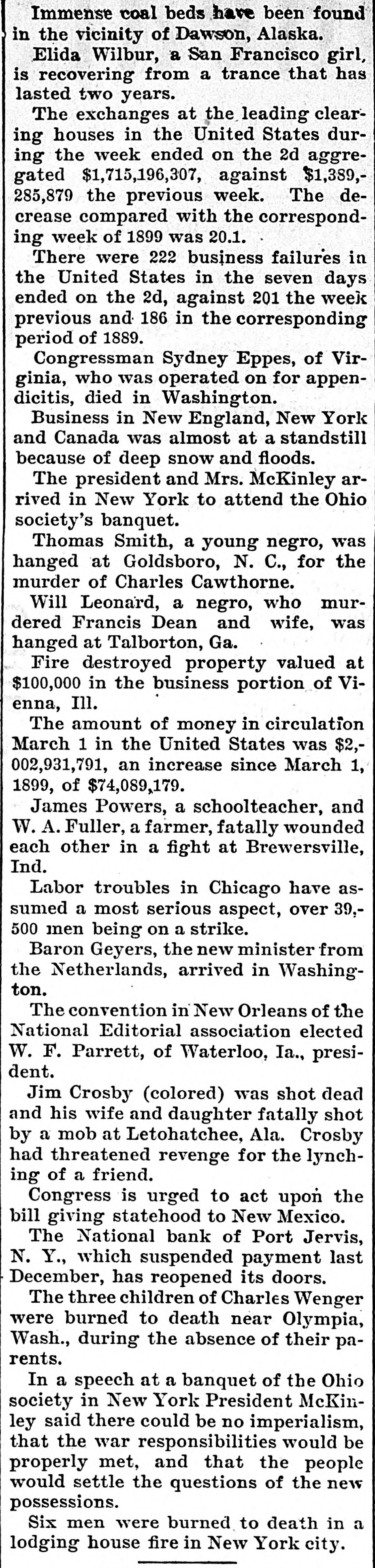 EL PASO, TEXAS, TUESDAY, DECEMBER 19, 1899 to a noon way below their actual value. altho HEARING ENGLAND'S Such giltedged dividend|payers as the added New York Central and Lake Shore are in su selling five and six cents below normal. were BEGUN YEOMANRY A better feeling is gradually prevailgiver ing. The panic was thought to be pracrecor tically over at three o'clock. worth BOSTON BROKERS SUSPEND. Bu To Be Used As Rough The Taking Of Testimony In plain BOSTON, Mase., Dec. 19.-The well men t known firm of Dilloway & Starr, bankthe Dam Case Is Riders In South take ers and brokers, assigned at 10:30 this of w Finished Africa morning. A BANK FAILS. causi the n WASHINGTON. Dec. 19.-The compactua troller of the currency announced this And afternoon that the National Bank, of OPENS appa AN EXCITING RUMOR GOVERNMENT Port Jarvis, N. Y., has been placed. in reach the hands of a temporary receiver. figur The failure is said to be due to a large Bu defalcation. tion FAILURE IN LONDON. That Buller Had Crossed the The Argument But the Outhe c LONDON, Dec. 19.-The - Northern look For the Dam Comthe y Tugela And Methuens' and London bank, limited, with a capMEA ital of two million, has suspended payCommunications pany Is EncourAr ment. It is expected there will be a Were Cut. Harr squeeze with several failures on the aging. London exchange at next settling day. whet meas BANK RATE RAISED cura: Special Dispatch to the HERALD. BERLIN, Dec. 19.-Owing to the finLONDON, Dec. 19.-The war office's phat LAS CRUCES, N. M., Dec. 19. Judge ancial stringency the bank rate has plans to organize a cavalry contingent whet been raised to 7 per cent. Burch resumed his argument this of 3,000 of the British yeomanry for with