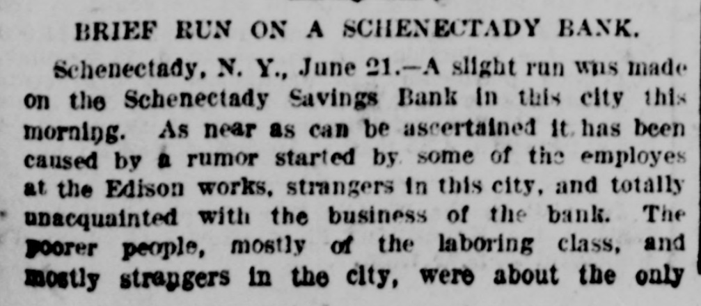 HARD TIMES FORTHE BANKS. SIX MORE OF THEM SUSPEND IN SOUTHERN CALIFORNIA. With their Money Locked Up they Could Not Face n Email Paste San Francisco Banks Expect to See Great Exettement To-day Bad Showing of the Plankintes Bank- A Kent Estate Failure in Chicago LOS ANGELES Cal. June 22 Confidence has been restored among local bank depositors and the exciting seen of yesterday were not repeated. All the closed banks. except the City Bank, will open in A few dave. All have ample assets. but they were paralyzed by the insano panic which infected the people. The influence of these suspensions was seen to-day. when the First National and the Commeretal banks of Santa Ana closed, and were speedily followed by the banks in Orange and Tustin. This leaves the new county of Orange, which was partitioned off from Los Angeles. without a single bank remaining open. These banks are declared solvent. but they could not pay sudden demands of depositors. The People's Bank of Pomona and the Bank of Commerce of San Diego also suspended to day The latter stood a run of two days and then succumbed. The trouble with all the South California banks is that they have a large part of their coin loaned out on farms and city property on which they cannot realize. SAN FRANCISCO June 22. The effect of the bank runs insouthern California was felt in San Francisco to-day for the first time. There was a small run on the German Savings Bank to-day. but it was quickly ended by the prompt payment of all who demanded money. Considerable excitement is expected to morrow. but it is understood that if any bank is singled out for attack the others will aid it. and should this be done the trouble will be ended quickly All the leading savings banks have been adding to their reserve. so they are well prepared for any runs To-morrow will see big financial excitement in San Francisco, as it was decided to-night that the Pacific Bank would not open. The Pacific has long been regarded as the weakest commercial bank in the city Its President is Dr. R. M. McDonald, the Vinegar Bitters millionaire, but it has been managed by his son. The bank has gono into many speculative enterprises. such as the electric railway of Los Angeles. the Brown colony in Madeira and several Arizona irrigation schemes. in which it has sunk large sums. Its suspension will also probably close up the People's Home Savings Bank. an institution which has made a bid for small deposite by giving little safes for the household. The manager of the Clearing House does not think any other city banks are in danger. but the conference of bankers to-day declined tondvance funds to help the Pacific Bank becondition cause of its RIDGWAY June The Ridgway Bank, private institution. this morning posted the following notice on its deors: financial situation on interests doors. full soup on given to the public as soon can be prepared. The notice is signed by D. C. Oyster. President. and cashier. A gentleman was closoconsultation with the officials the bank during the estimates assets $364,000 and the liabilities $216,000. This bank has had the confidence of working people many whom have all their wealth in the bank's care. BIRMINGHAM, Ala. June 22 An unfounded rumor that the First National Bank had refused to pay check for $80,000 precip Itated run on that stitution this morning The bank paid out about $40.000 up to noon. when confidence was restored and the run ceased FLORENCE Ala. June Cashier Carr of the Tuscumbia Banking Company was arrested last night. Carr returned from New York yesterday claimed to have sufficient money to pay depositors of the suspended bank. Instead this he made a proposition to compromise, which was rejected, and his arrest followed. It is now thought the bank will pay only fifteen cents on the dollar. June 22.-The City National Bank of this ity was closed this morning by order of Bank Examiner Caldwell No statement of the condition has been made public. The cause of the suspension was the steady withdrawal of deposits and the stringency of the money market. There is no exeitement. the depositors generally having perfect confidence that the bank will come out Il right MILWAUKEE. June 22.-An analysis of the Plankington bank statement filed by Assignee William ankington shows that President socured in loans from the bank nearly $400,000 instead of $300,000. Of this sum $278 000 was loaned to himself and $100,000 to the Milwaukee Brass and Copper Works, which he was President. statement that fourteen firms owe the bank over $1,000,000. as follows Lappen & Co., $263,128 Lappen Furniture Com $10,210: Frederick Day. $278,000: Benedict & $105,500 Buffalo Mining Company $55,000: Got tenburg and Improvement Company $10,180 A. Hildebrand $10,000; Milwaukee Brass and Copper Works. T.Day President. $100.000; John H. Meyers. $30,000; Meyers and $25,137 Mas Brothers. $10.000; Richter Shubert & Dick $15,232: Swift Co. $10,000; Schlessinger Brothers, $45,000. The only security for the Benedict loans is forty notes made by R dozen people. the face value of which is about $15,000. The Lappen notes have security chattel mortgages, shares intheHidalgoSmithing Company, and an assignment in a tract of land contract to ninety-five acrew in Waukesha county. The Day notes are secured by Dakota lands and local real estate Thirty banks throughout this and other States were caught in the failure for various sums. BOSTON. June was decided -day by the full bench the Supreme Court that a national bank bound by the insolvency law that prohibits debtors from conveyin such a as way property ing to ereate an unjust forence. This ruling WAR made f George Chipman Arthur Tellan. and the Traders National Bank V8 George Chipbank had lent money to Dudley C. Hall. taken note secured by two conveyances Medford. These conveyances when Hall was insolvent although not assign unti five months afterward bank claimed he State Insolven law was in conflict with the United States law giving a national ban