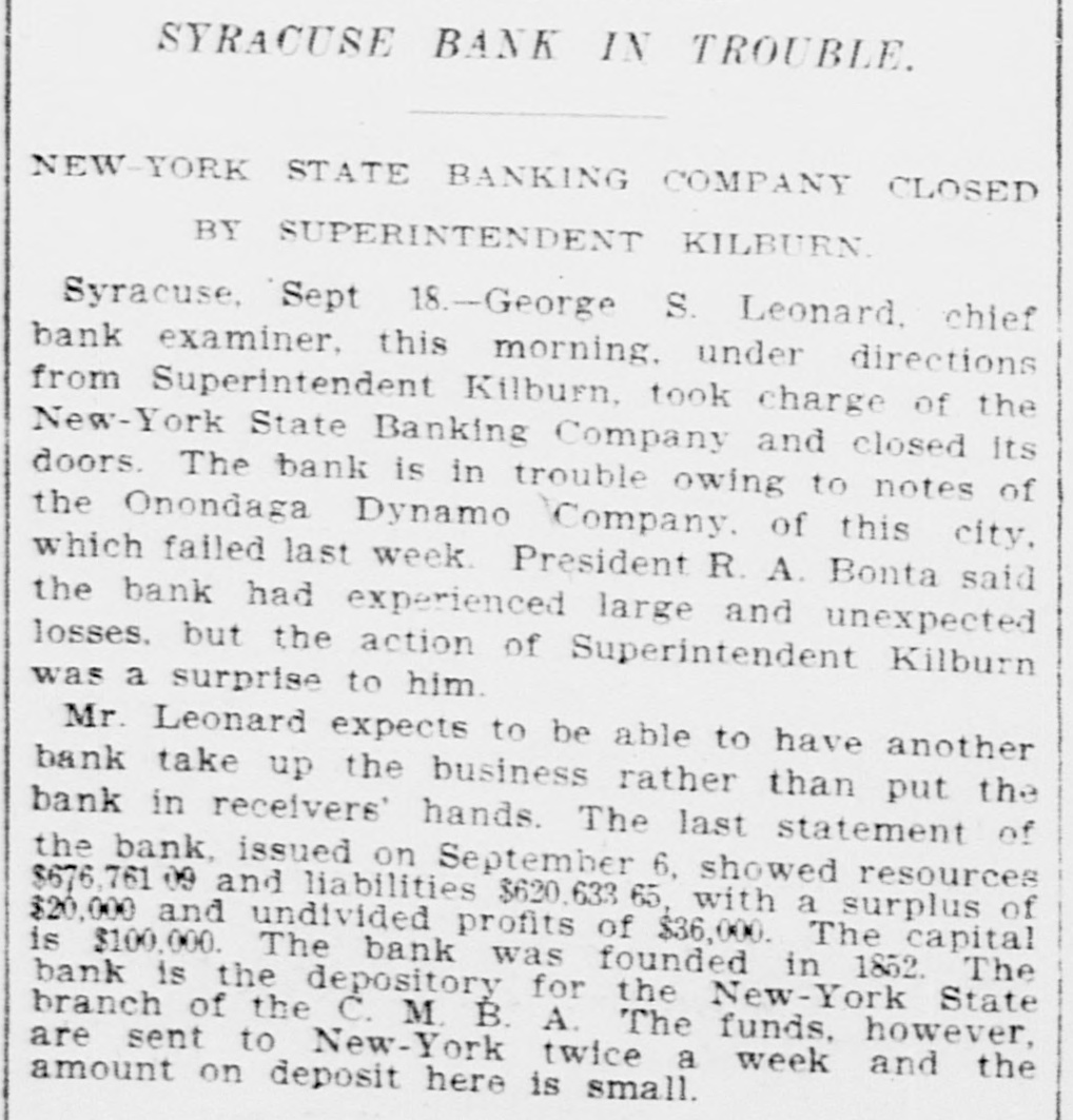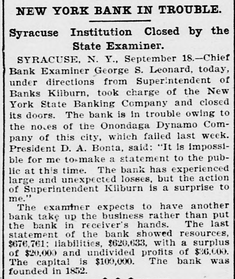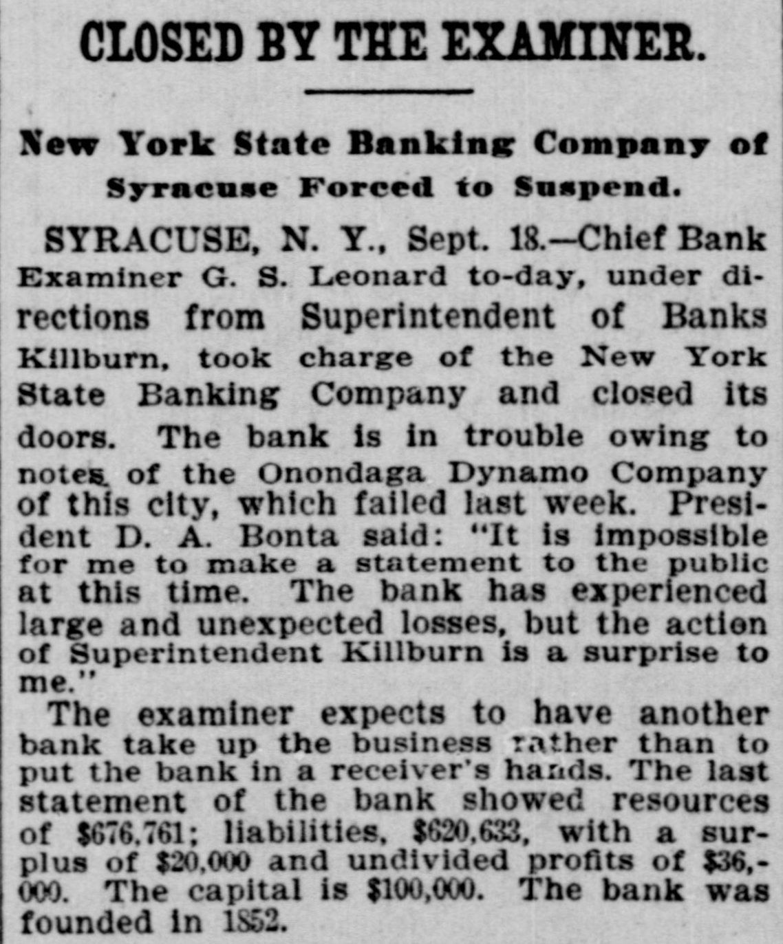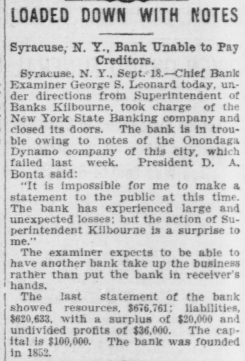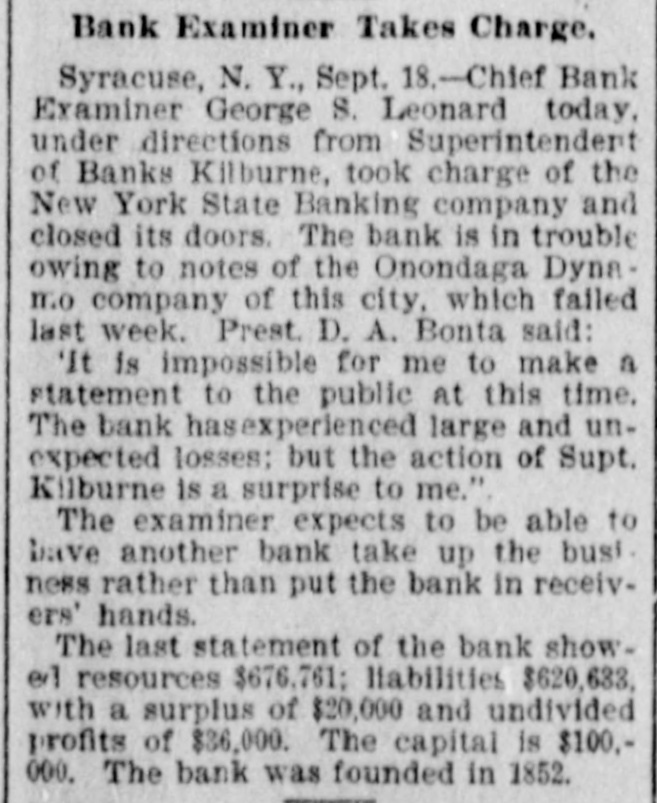 Late Items. Sunday was a day of funerals in Birmingham, the remains of 78 victims of in Shiloh the various for terred the panic in church cemeteries being inaround are leaving negroes Many people the city. Colon and Panama for fear of rebel attacks. The revolutionists are massing on the railroad of the Isthmus. Many liberal sympatizers are imprisoned for appearing on the streets. Peter Olson, who shot and killed his sweetheart, Mary Peterson, in Omaha September 8, was killed recnetly in a fight with posse three miles north o Bancroft, Neb. President Mitchell can call upon the actors' union anywhere for a benefit performance. The new South African colonies are to be assessed a half a billion dollars for war expenses. Shaw has announced that the week he has the on round during distirbution Secretary numbers Autorized of ten dollars in public among the the country million banks throughout fds which have bonds available for security. Two presons were killed and 44 injured in a recent wreck on the Baltimore & Ohio Southwestern road at Leesburg, Ohio. Baltimore secured the next sovereign grand lodge of Odd Fellows. Marie Henriette, queen of the Belgians is dead Neither her husband, members of her family nor majesty's doctor were present at the time of her death. Two members of her suit were with the queen during her last moments. There is a movement in the intiment circle of Kruger's friends to send him to South Africa. The postoffice building at Minot, N. D. collapsed recently and is a total wreck. With the single exception of flax seed for the season are that country proRussia's the largest crops present ten. has duced in any year in the last Chief Bank Examiner Geo. S. Leonard has taken charge of the New York Banking company in Syracuse, and closed its doors. Prompted by jealously, A. E. Whitshot W. comb of Chicago and H. Mrs. Sampson Elizaof Battle Creek, Mich., beth Nettler of Chicago at Sampson's home and shot himself through the head. Both men are dead and the woman will live. The immigration fever of the Jews of Roumania still continues, and that within the last three months 4000 Jews have left the country for the United States and Canada. One of the most sensational and dramatic incidents that ever took place in bull ring in Mexico occurred reat Chihuahua, a cently a when tremenbull that had been goaded into an eight landed the spectators madness dous among leaped foot occupying fence and the seats. was a mad of the populace to escape stampede reserved There The bull fin- the maiming or death. was ally shot by young ranchero. General Knox has returned to after his conferred rewhere Atttorney Washinggton he with trip officials to Paris, garding the sale of the Panama canal property to the United States. A onew world's record at wing shoot ing with rifles has been established by Adolph Toepperwein, of San Antonio Texas. He broke 986 out of 1000 clay targets thrown from traps. Unless an eight hour working day is granted in the flour mills of Minneaa strike will go into effect SepThe mills polis tember 29. barrels of Minneapolis of flour produce 16,000,000 or nearly two fifths of the total output of the country, yearly. William S. Stratton, the multimillionaire of Colorado Sprins, Col. owner of the famous Independencies mine in the Cripple Creek distriact, is dead after an illness of several months. Monday started the nineteenth week of the coal strike. Ontario, Tommy Ryan Carter knocked At Fort out Erie, "Kid" of Brooklyn in the last minute of the sixth round. A gas and powder explosion occurred in Norfolk, .Va., recently in the Big Four as the result James an engineer; mine, Leiter, John of which Reickie, a miner, and a number of colored miners are known to be imprisoned. John Larson, a carman at the Butte Boston smelter at Butte, was smoth-