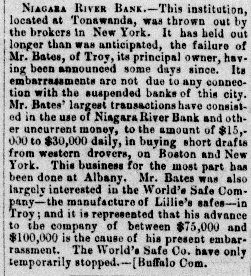 THE FINANCIAL TROUBLES. MASSACHUSETTS. DANBY-BANK, VERNONT. [From the Boston Transcript, Sept. 4.] Bills of the Danby Bank, at Danby, Vt., are not received at the Suffolk Bank. NEW YORK. FAILURE OF THE OLIVER LEE & CO. BANK. [From the Buffalo Advertiser, Sept. 4.] The feeling of doubt as to the soundness of the Oliver Lee & Co. Bank, which has prevailed in financial circles since the run of Monday, is now confirmed by the suspen- sion of the bank. The question of continuance or failure was known to depend, not on the ability of the bank it- self, but on the support of large capitalists at the East, whose apparent interest it was to maintain it. These have withdrawn their support; whether from inability or un- willingness to continue it is unknown as yet, and the fail- ure is the result. The condition of the assets of the bank, so far as bill holders are concerned, is satisfactory. It has received in aids from the Comptroller, $104,220. To secure this the Comptroller holds: New York State stocks...$87,000 First class mortgages19,000 Total security.$106,000 The bills are, of course, entirely reliable, and are re- ceived at par to-day by the savings and other banks of the city. The chance of depositors is not so cheerful, though the number and amount of deposits has been rapidly decreased during the past few days. Among the assets of the bank are $204,600 of the Buffalo Car Company's paper. Up to the time of writing this paragraph we hear no rumor in- volving the standing of any other banks in the city. So far as is known there is no reason to suppose that this failure should involve any of them. It has been under- stood for some time past that the life of the Oliver Lee Bank was precarious, and other institutions had ample time to protect themselves. There is no run upon any of them. Paper waiting at the Oliver Lee & Co. Bank to-day is transferred to the Attica Bank, where those having accep- tances to meet have had the opportunity of paying. FAILURE OF THE NIAGARA RIVER BANK. [From the Buffalo Courier, Sept. 5.] This institution, located at Tonawanda, in this county, suspended payment yesterday, owing to the failure of Mr. Bates, of Boston, who is understood to be its principal pro- prietor. Its stoppage is not attributable, we are informed, to embarrassments arising from any of the recent bank failures in this city, but to the suspension of its Eastern debtor. HOLLISTER BANK. The following gentlemen have become sureties for Alanson Robinson, Esq., the Receiver for the Hollister Bank of Buffalo, in the sum of $80,000—Robert Hollister, Horatio S. Stowway, Albert H. Tracy, Wm. Wilkeson, Nathan F. Hall, Wm. Laverack, E. G. Spaulding, Geo. C. White, C. B. Ganson and Wm. Fiske. RECIPROCITY BANK. The following gentlemen have become sureties for William Williams, Esq., the Receiver for the Reciprocity Bank, in the sum of $350,000:—Miles Jones, Samuel F. Pratt, Geo. C. White, H. E. Howard, Wm. H. Groene and E. W. Rogers. ILLINOIS. EXTRACT FROM A LETTER FROM A PRIVATE HOUSE IN CHICAGO. CHICAGO, September 2, 1857. Your favor of 31st of July has been duly received. You probably know, before this letter reaches you, that the rumor in regard to Mr. Ogden's failure was premature. Arrangements have been made to extend payment, and it is here expected that O. will be abundantly able to get along. I think you have no occasion to be alarmed; on the contrary you may congratulate yourselves that a part of your funds is safely invested in real estate in this city. Whatever may be the fiscal result of the present state of things at the East, the evil effects can be temporary only; and, though real estate may be somewhat affected, there is still a bona fide value in the property of a city backed, as we are, by the richest country of the world. The present case of the money matters West may be a sign of the postponement of the crisis only. But still we have such an extraordinary superabundance of produce that the effects of such a crisis will be less severely felt here than elsewhere. Though very little real estate here is changing hands, yet there has been no positive de- cline, nor seems holders particularly anxious to sell. On the whole I think that we shall not lose materially. Money will seek an investment somewhere, and Eastern people may come to the very reasonable conclusion that money can be invested to better advantage in Western lands than in good for nothing railroad bonds or stocks. To be sure it will entirely depend upon the manner in which the West will stand the shock. It is somewhat singular that the shock should come from the East, whilst Eastern financiers have for some time raised quite a hue and cry about the West. Certainly there would have been no difficulty what- ever out here, as a kind Providence has interfered in our behalf and provided us with such a large amount of funds in the shape of produce, that the best state of things would have undoubtedly existed if it had not been for the col- lapse East. It seems as though the financial world was standing on a volcano. We are in a safe and fine condition—not, of course, making anything, as we are determined not to discount at all until things have regulated themselves. We are posi- tive that the course we have adopted is the right one, although, of course, disliked by our customers. Thank God we have kept aloof from all kinds of speculation. THE PANIC AT THE EAST—ITS ORIGIN—ITS EXTENT. [From the Chicago Democrat, August 29.] A careful perusal of the papers that arrived by the mail last night, as well as our continued telegraphic despatches, lead us to think that we have heard the worst. But we would be the last to inspire anything like over confidence. In money matters, and especially in paper money matters, people should always be watch- ful. Ever so carefully administered, so sudden is the fall of stocks, that our banks of issue may fall when least ex- pected. If we have heard the worst, the stampede at the West in consequence 