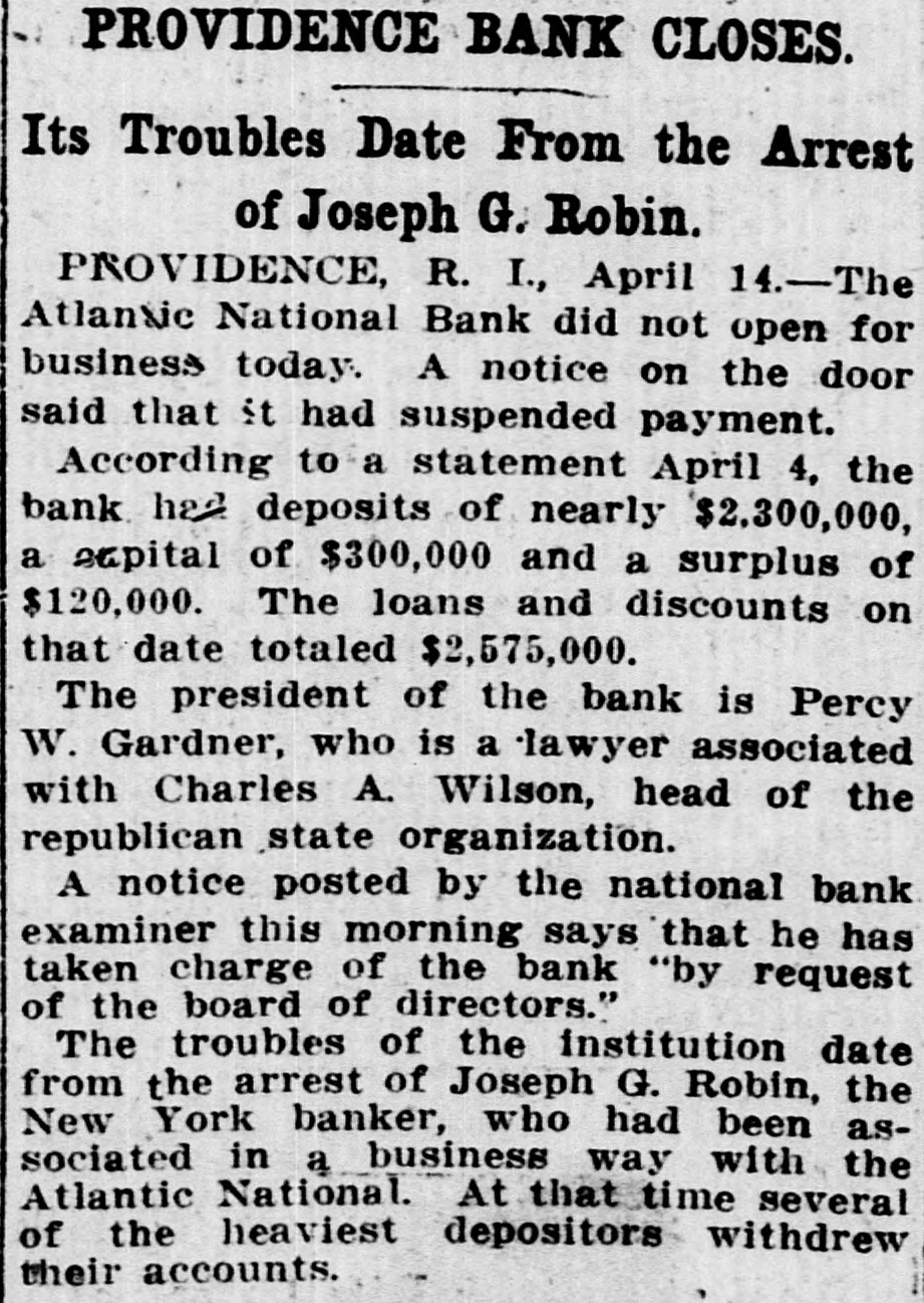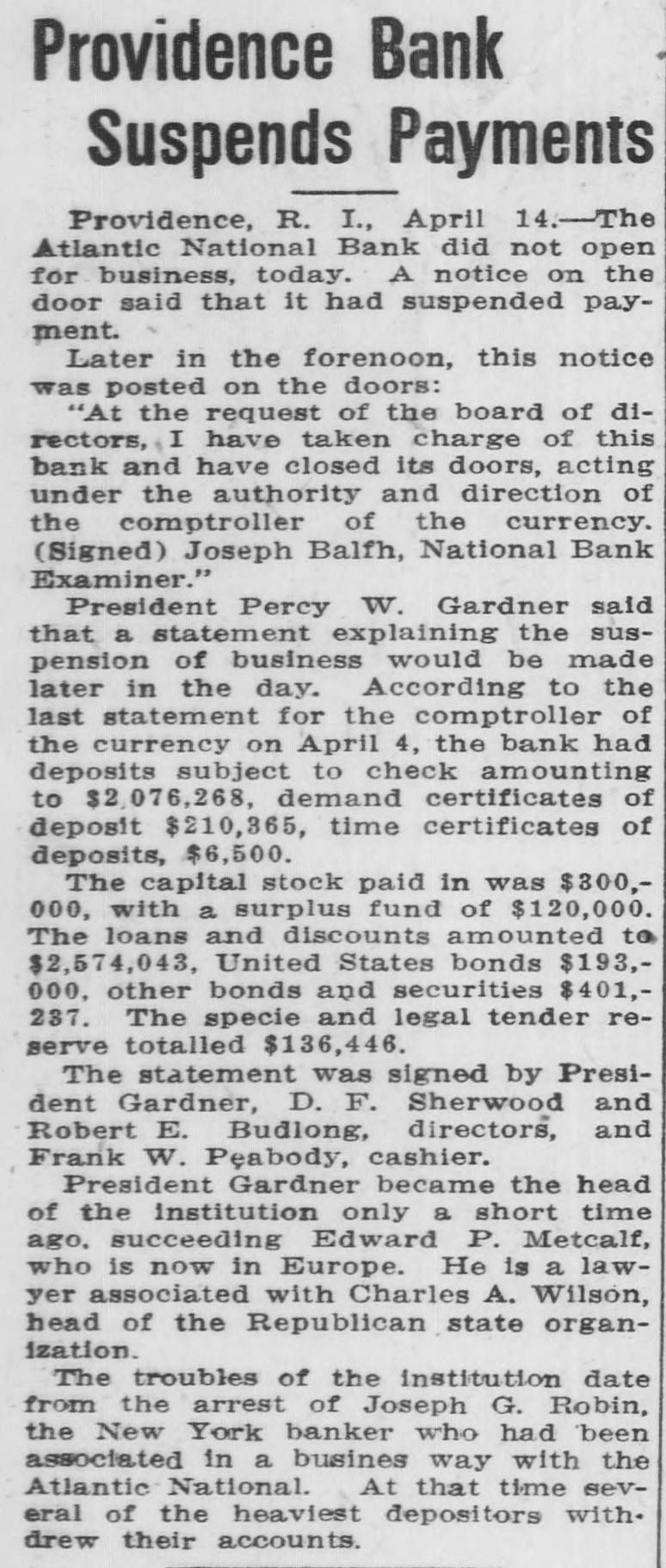By order of R. L. Curtis, receiver of the Atlantic National Bank, Providence, R. I.: