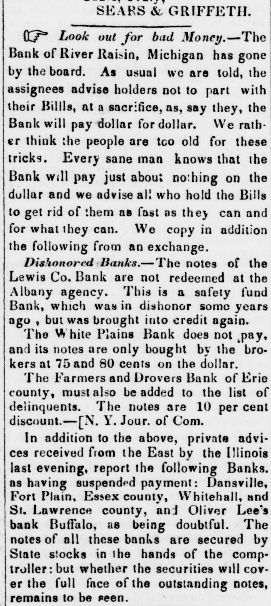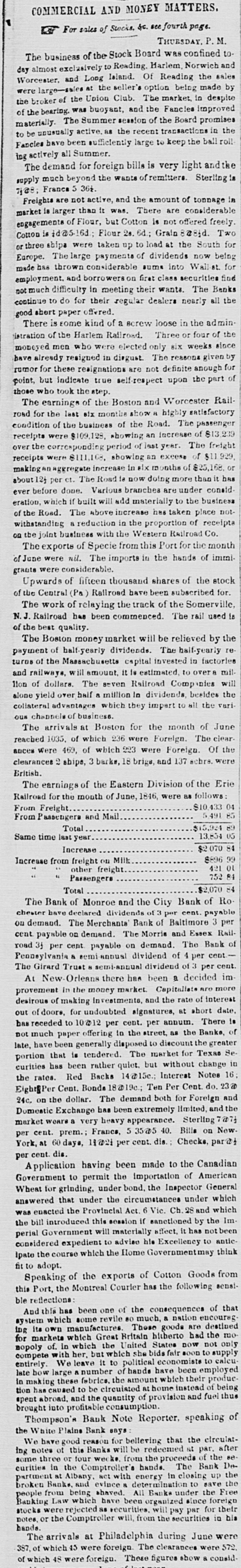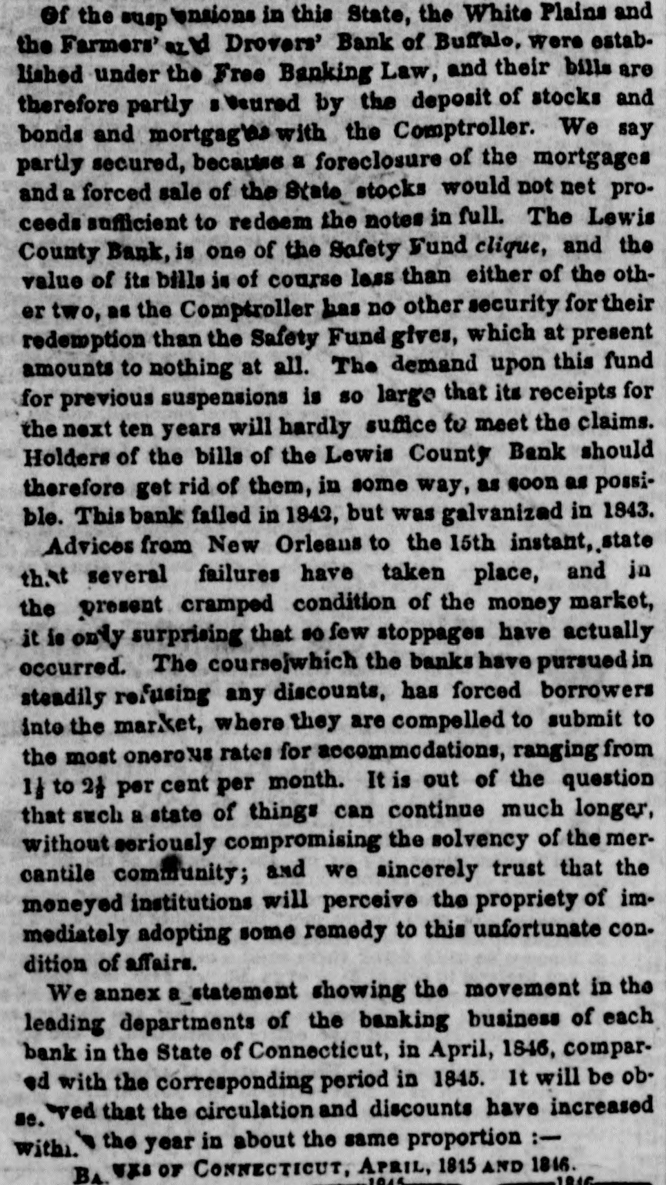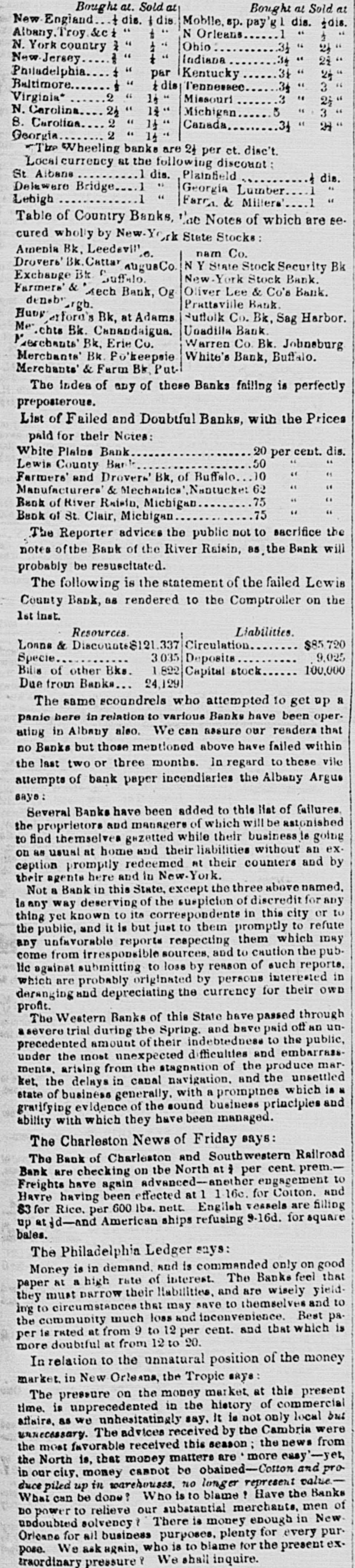 Navigation of the Ohio River, River Places Time. State of bet 11 & 12 feet. Cincinnati. April 21 Wheeling. April 15 feet, inches. Pittsburgh April 22 feet scant. 6 feet Sinches. Louisville, April 21. MONEY MARKET. Thursday, April 30-9 P.M. There is nothing of importance going on in the stock market. Quotations have not materially varied, bu prices are heavy, tending towards a decline. Sterling exchange was firm this morning, at ten per cent premium,"with a very fair demand. W. hear of no ship. ments of specie. At the first board, Norwich k Worcester and Canton closed firm at yesterday's prices. Ohio sixes improved 1 per cent Pennsylvania fives Morris Canal fell of Long Island 1. and Harlem t. The transactions were limited, and the market rather heavy. Very little was done at the second board, and we notice no variation of consequence in prices. One dol lar bills altered to one hundred dollars, and two dollar bills altered to fifty, of the Hartford Bank, are n circulation. The Brooklyn Fire Insurance Company have declared a dividend of four per cent, payable on the 10th of May A bill has passed the Senate of Michigan to suspend indefinitely the provision of the Butler act requiring taxation for the payment of interest on the State debt. The interest has been fully provided for by the sale of the Central Railroad The Miner's Bank, Pottsville, Pa., has made arrange. ments to redeem its notes at par in Philadelphia. It is said that the Manufacturers' Bank, Nantucket will again sosume business, and pay its notes in full. There is some difficulty in regard to the issues of the White Plains Bank. They are under protest, and it is reported that the bank will be wound up. Its circula. tion is about $32,000, which is secured by stocks, mort gages, &c., in the hands of the Comptroller. Congress has now been in session five months, and not a single important measure affecting the commerce of the country has yet, been perfected. The only thing ac. complished as yet is the passage of the Oregon notice resolutions; and although the city is filled with rumors that the President has carried out the spirit of these reso lutions, by giving the notice,we have little faith in them It also reported that negotiations have been resumed batween the Secretary of State and the British Minister; that the Caledonia brought out new offer from the British government, of a character so favorable that there was very little doubt but that it would be accepted; that a treaty in relation to Oregon was in the course of preparation, and would soon ba sent to the Senate for ratification: and dozen other things connected with this matter-all of which require confirmation. One thing in relation to this question we do know, and that is, that it is losing its interest on this side of the Atlantic; all fears of a collision between the two countries upon the matter in dispute have disappeared, and there is not that anxiety manifested for a speedy settlement, heret fore experienced. Other matters, of more immediate importance, have taken its place, and the people of this country will in a short time, be so occupied with other things, that were it not for the clamoring of politicians and their ef. forts to ride into office on some hobby, we should sink into that masterly inactivity so much talked of in Con gress. Whether the notice is given immediately or not, the affair will never again (unless a rupture should grow out of it) agitate the country as it did when first brought forward. We get used to these things in time, no matter how important the influence they exert upon commercial matters. and long for a change-something new, something to change the current of our ideas is required; and the moment it is found. it ocoupies all minds and for a time rivets the attention of the masses. In the midst of the excitement produced by the Oregon question, the commercial and financial classes throughout the country were panic struck by the announcement that the independent treasury bill, with the most re stricted specie clauses, to go into full ope ation on the 30th of June 1846, had passed the House of Represents tives by large majority. This announcement, as un expected as it was important, came upon the banks and upon the speculators of the country with such force that it absorbed all others. Everything else was lost sight of-the debate in Congress in relation to the Oregon notice lost its interest, and it was predicted by the organs of the opposition that the country would be hopelessly, irretrievably ruined at once; that there was no possibility of surviving the shock of the re-establish. ment of the odious bill; that it would not only ruin any party adopting it, but would prostrate the country into utter ruin. For a time these predictions had very alarming effect, and a panic greater than we had experienced for years, spread through our commercial cities. At one time it had reached such a height that the notice resolutions were considered use less, as the country could not possibly survive the enforcement of the independent treasury bill. After a little time, the second sober thought prevailed, the messure assumed a more favorable shape in the minds of these opponents, and many arrived at the conclusion that we were not going to be so completely ruined as they at first imagined. The dark clouds began to disperse, the face of commercial affairs began to brighten a little While this gradual improvement was going on, it was announced in the Senate, by the Chairman of the Finance Committee, that it had been unanimously agreed upon to recommend that the independent trea. sury bill go into operation on the 1st of January, 1847, instead of the 1st of July, 1846, as recommended by the lower house. This committee suggested this extension. with view of affording the banks time to prepare for the new order of things, with the supposition that they would,in the interim, prepara the mercantile community or the full operation of the law, so that eve