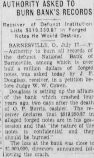 AFFAIRS OF DEFUNCT BANK BARNESVILLE WILL BE CLOSED NEXT THIRTY DAYS