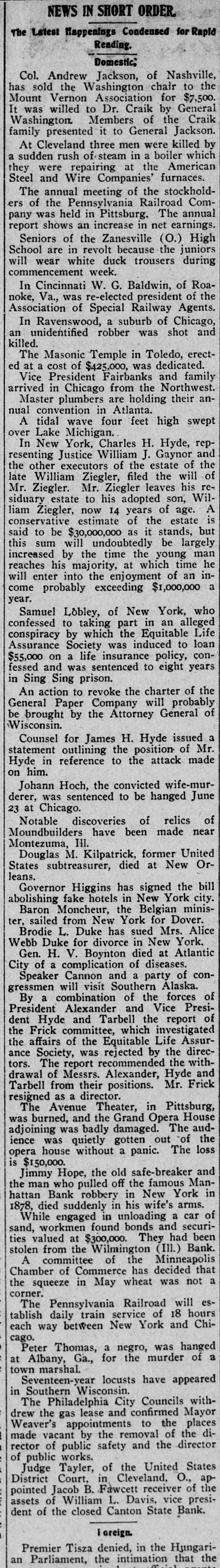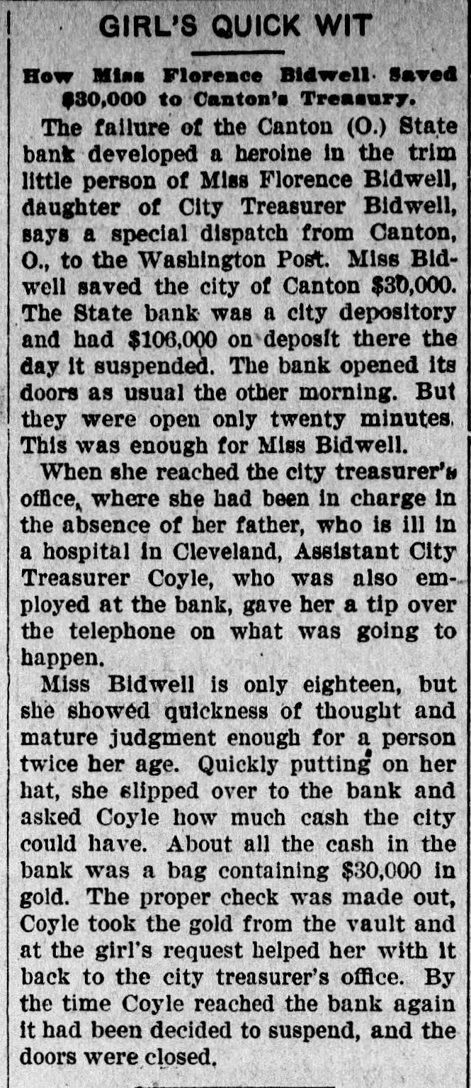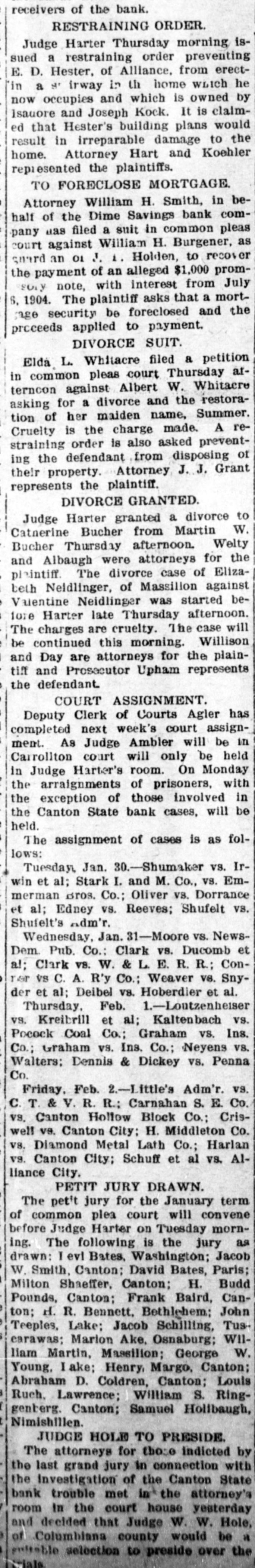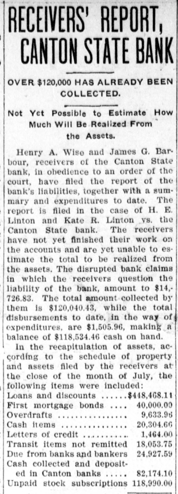 ACCUSED OF WRECKING BANK. Vice-President and Cashier Said to Have Misappropriated $200,000. CANTON, Ohio, May 24.-A placard bearing the one word "Closed" greeted depositors at the door of the Canton State Bank shortly after the opening hour this morning. Several hours later the bank officials issued a formal statement charging W. J. Davis, vice-president, and the cashier, Corwin D. Bachtel, with having misappropriated $200,000 of the institution's funds. Davis was regarded as one of the city's wealthiest men. He was at the head of numerous enterprises, including the Courtland Hotel Company, the Citizens' Head Light and Power Company, the Davis Railroad Coal Company and the Cleveland Brick Company. He is the owner of numerous coal mines in Ohio and West Virginia. Recently he built several coal mining villages along the Ohio River. The Courtland Hotel Company has just completed the erection of a new six story structure in which the bank is located. It is generally believed that considerable of the money taken went into the construction of this building, although Davis declines to say what became of it. Bachtel, the cashier, was prominent in local church and temperance work. He was on the official board of the Simpson Methodist Episcopal Church, treasurer of the District Anti-Saloon League, a director of the Y. M. C. A. and is connected with other similar institutions. In the failure of the bank the city of Canton loses $76,000, while the Citizens' Building and Loan Company is a depositor for over $400,000. The latter deposit is secured. A slight run was caused on the loan company this afternoon. The individual deposits of the bank amount to $600,000.