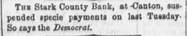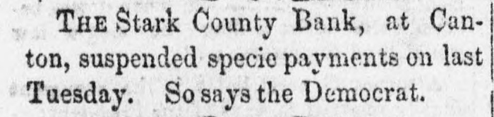 THE Stark County Bank, at Canton, suspended specie payments on last Tuesday. So says the Democrat.