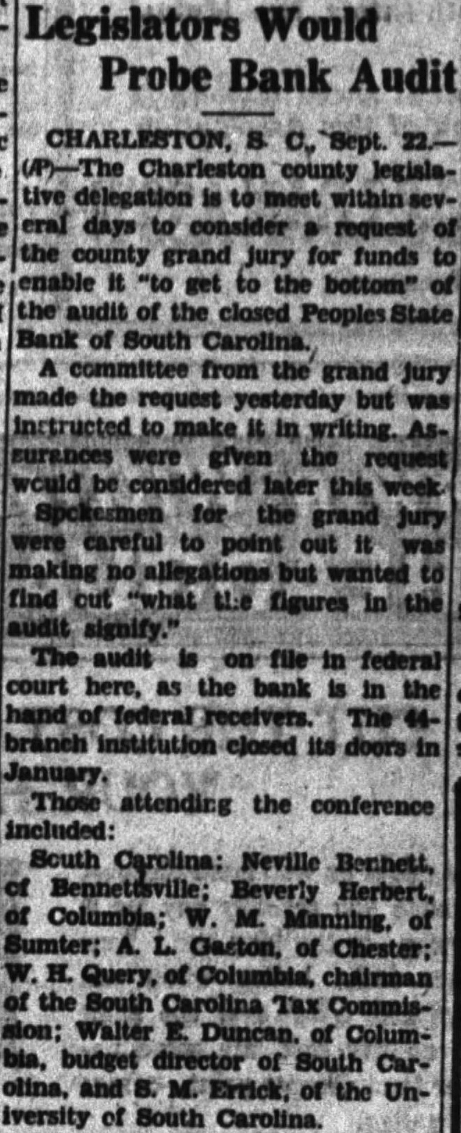 Hense of Representatives have determined to go to Washington and resign. This course is taken in order to more conveniently confer with the Representatives of the other Southern States. Several candidates of the Convention of South Carolina, over their own signatures, repudiated any free State joining the Southern Confederney. The State Bank of South Carolina, the Bank of South Carolina, and the Railroad Bank have suspended. The Planters and Merchants Bank will suspend to-morrow. CHARLESTON, Nov. 29.-It is now considered certain here that the ordinance of secession will be passed on the 17th or 18th of December. Our representatives are leaving for Washington. Ordnance and ammunition have lately been landed from a schooner at Fort Moultrie. Some of the army officers say that now Fort Moultrie is almost impregnable. COLUMBIA, S. C., Nov. 30. - The House directed the Military Committee to consider the best method of fortifying the most exposed portions of the coast. MILLEDGEVILLE, Nov. 30.-The Legislature chose Breckinridge Electors. New ORLEANS, Dec. 1.-A committee of citizens of Texas petitioned Governor Houston to convene the Legislature. The Governor responded that viewing the proposed measures as unwise, he could not call the Legislature together, but if is majority of the citizens of the State petition for it, he could not stand in their way. The secession feeling largely predominates. MEMPHIS, Dec. 1. A large and excited assetabløge last night passed resolutions accepting the irrepressible conflict now upon us; calling on the Governor to convene the Legislature, calling a Convention of the State, and also of one of all the Southern States; and pledging Tennessee to stand by the action of a Southern Convention for weal or woe. CLINTON, Mo,, Dec. 1.-- Reports speak of inhabitants along the Missouri border fleeing, to escape from binds of Abolitionists, supposed to be connected with Montgomery, but indicating great alarm. Naw YORK, Dec. 1.- The Washing ton correspondent of the N. Y. Times says the secession feeling is moderate. A conservative compromise measure is being prepared to cover the entire sectional issue. Florida advices say that the Secrssion feeling largely predominates. Louisville,Ky., Dec. 1.--A report from Burksville says that fifteen negrees and one white man were bung for attempted insurrection on the part of the negroes, led on by the white man. No particulars are given.