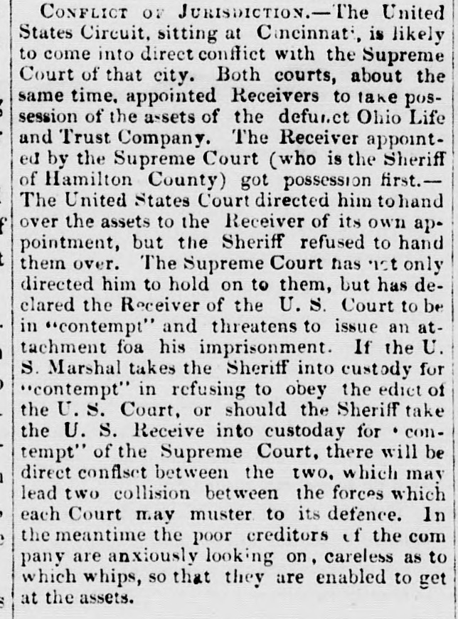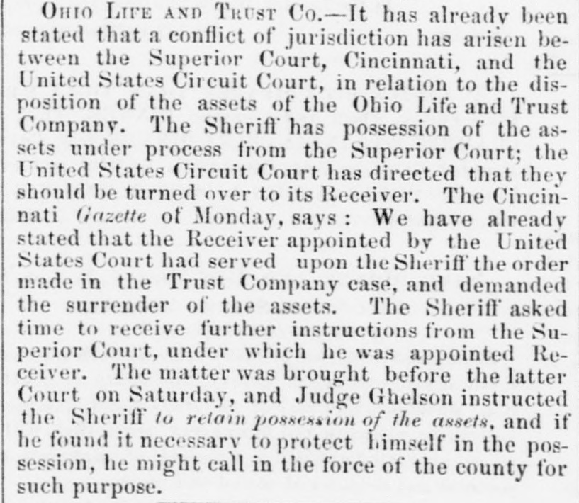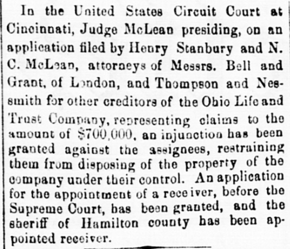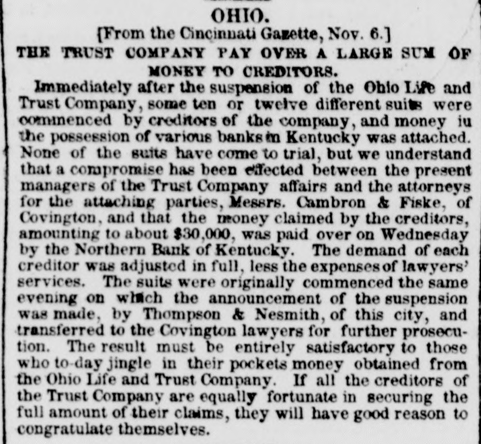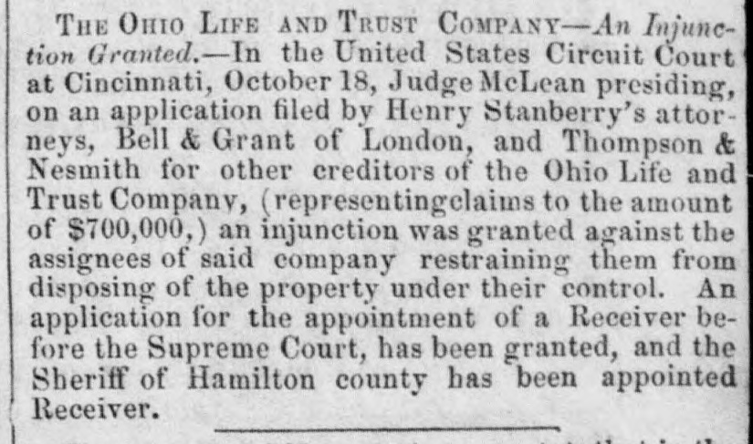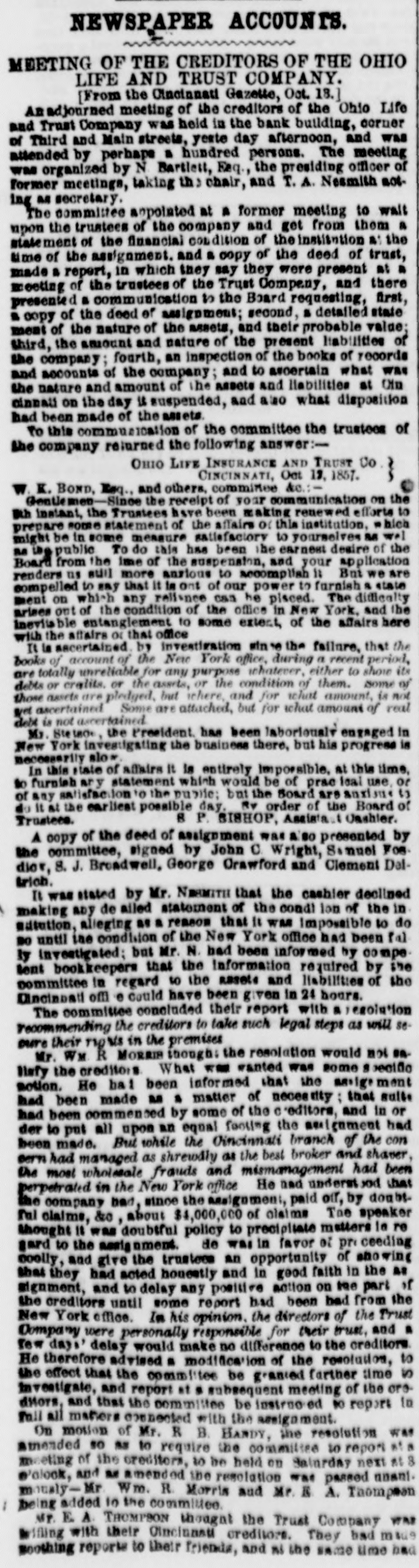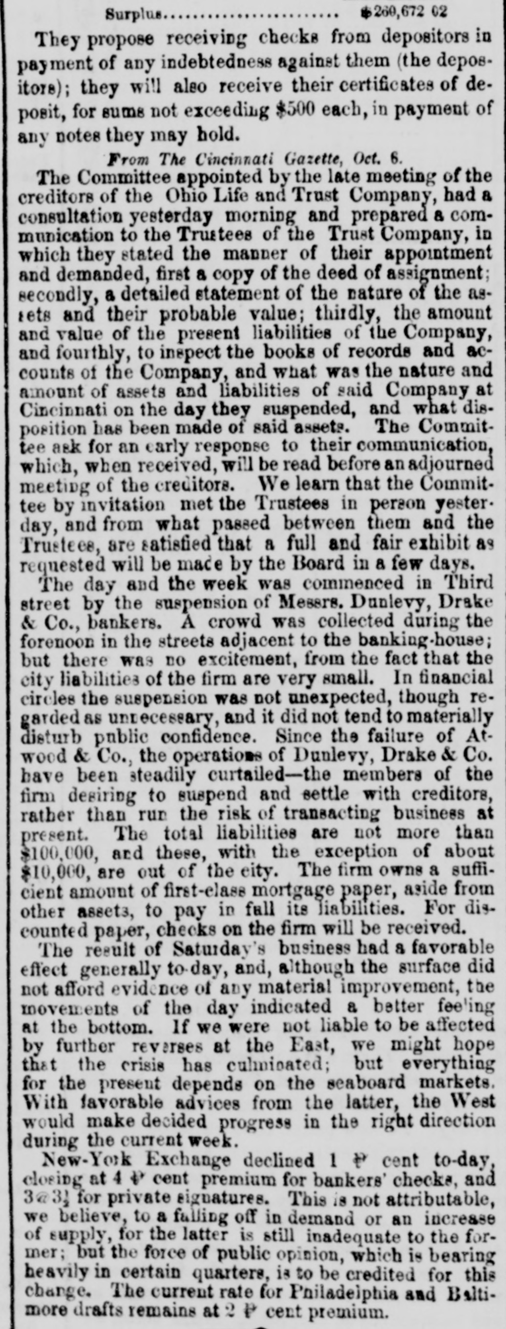 h FURTHER BY THE ANGLO-SAXON. Z i Our advices by the Anglo-Saxon state that the o laying of the Ocean Telegraph is progressing favorP ably. a The rumored suspension of negotiations on the Spanish Mexican question is not confirmed. France, Russia, Prussia and Sardinia have suspended relations with Turkey. ADDITIONAL BY ANGLO-SAXON. NEW YORK, August 24.-The Telegraph fleet was detained at Velantia, Bay until the 7th. The Agent of the Associated Press at Liverpool received a dispatch dated August 10th, from on board the Niagara, stating that 300 miles had been laid, and that all were more and more satisfied of their final and complete success. All on board were well. They had moderate westerly winds. Arrivals Out. The Atlantic and Vanderbilt arrived out at Liverpool on the 11th. The latter made the passage in nine days and thirteen honrs. England. Palmerston stated that 30,000 troops have been sent to India. D'Israeli declared that this year's campaign was lost. There is no later news from India. France. The Emperor and Empress had returned to Paris. Spain. The Madrid papers state that the Spanish Government has information of another filibuster expedition intended for Cuba. Liverpool Markets. LIVERPOOL, August 12.-Western Canal Flour 30s. to 30s. 6d. Red Wheat Ss. to 8s. 4d. White Wheat 9s. 3d. to 9s. 9d. Yellow and Mixed Corn 36s. Pro1 visions closed firm. Lard 70s. to 71s. Coffee is firm. Rice dull. Arrival of the City of Washington. NEW YORK, August 24.-The steamship City of Washington brings Liverpool dates of the 12th. Her advices are unimportant. James Murdoch, the American tragedian, is a passenger by the City of Washington. The Telegraph Cable. We have nothing further from the telegraph fleet by this arrival. Victoria to Visit France. It is expected that Victoria will soon visit the French camp at Chalons. Spain. Advices from Spain state that the wine crop is insignificant. Powder Mill Explosion. WILMINGTON, DEL., August 24. - On Saturday S. afternoon the powder mill of Messrs. Dupont, near this place, exploded. Mr. Dupont and three other men were killed and two others were injured. Failure of the Ohio Life and Trust Company. NEW YORK, August 24.-The Ohio Life and Trust y eCompany has suspended. There is great excitement in consequence. CINCINNATI, August 24.-There is considerable exncitement here in consequence of the failure of the n Ohio Life Insurance and Trust Company. It is feared that the house here will not open to-morrow. t Domestic Markets. to NEW YORK, August 24.-Sales of cotton-400 bales ul of closing steady. Ohio Flour, $6 50 to $6 90; White a Wheat, $1 60 to $1 70; Corn, 85 to 90c. Provisions firm. Lard, 163c. Sugar and Coffee quiet. KCINCINNATI, August 24. - Flour, $5 to $5 25. a Wheat unchanged. Corn dull. Bacon Shoulders, er 12c.; Sides, 14c. n Steamboats Passing. f. VICKSBURG, August 24. - The Pete Whetstone passed down at 9 A.M., and the Henry Choteau at 4 yesterday. in